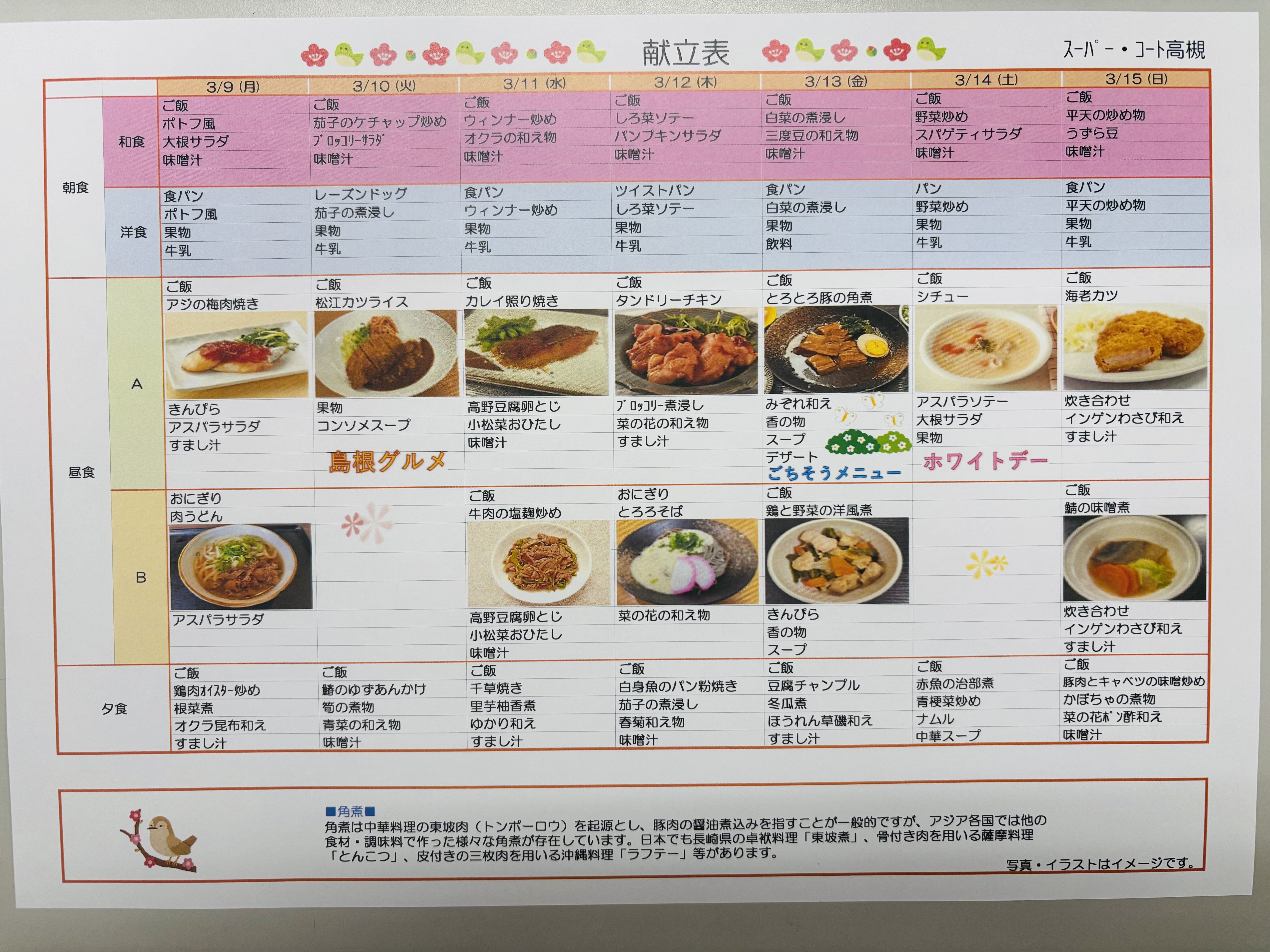 本日は3/2(月)~3/15(日)までの献立をご紹介します(^^♪