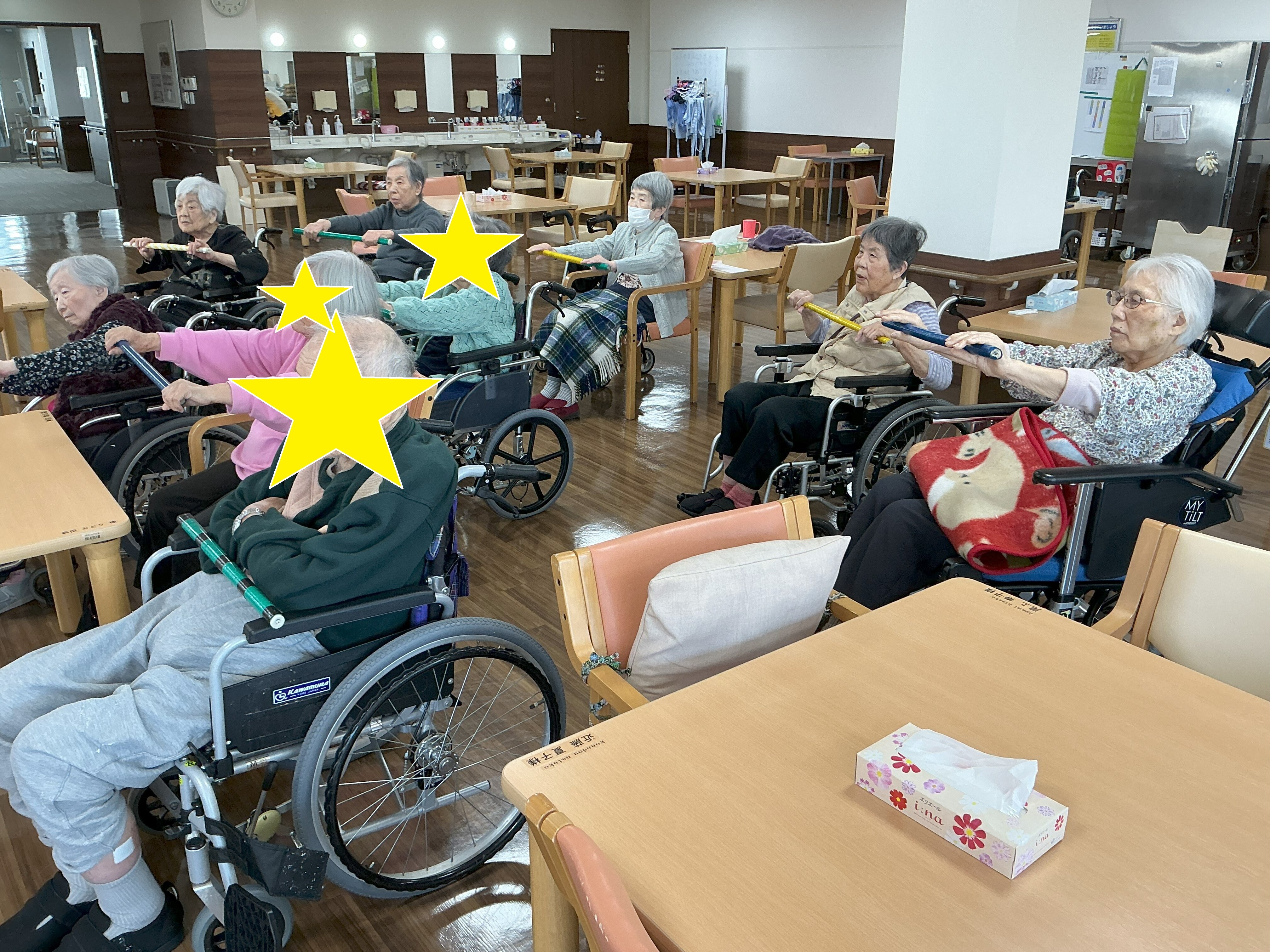 本日は集団体操(棒体操、チェアリズム体操)をご紹介します(^.^)/~~~