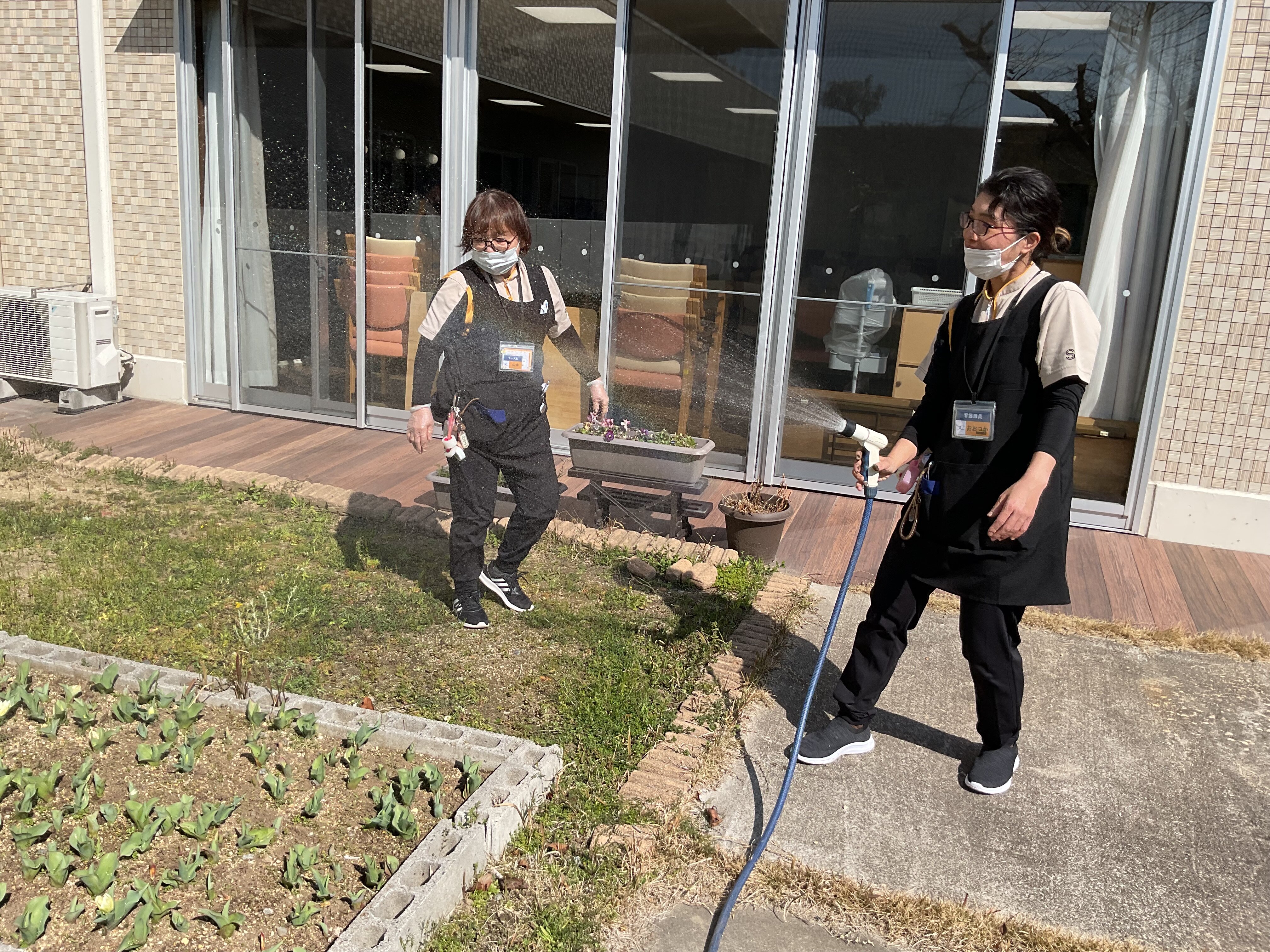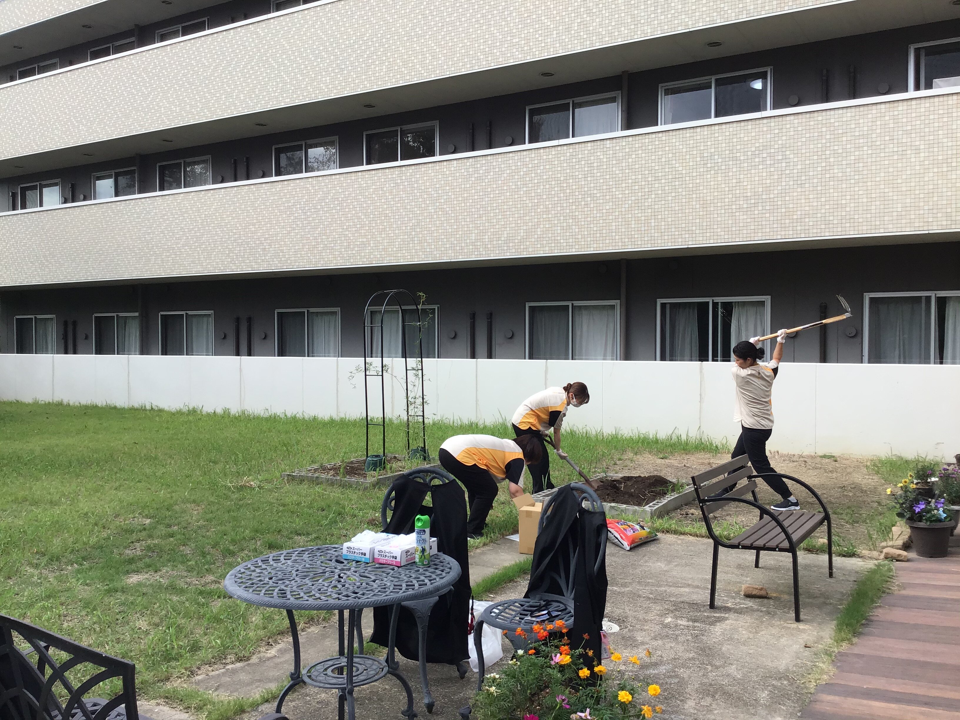 桜が満開になり、天気の良い日に中庭に出て花見をしようと思います!(^^)!