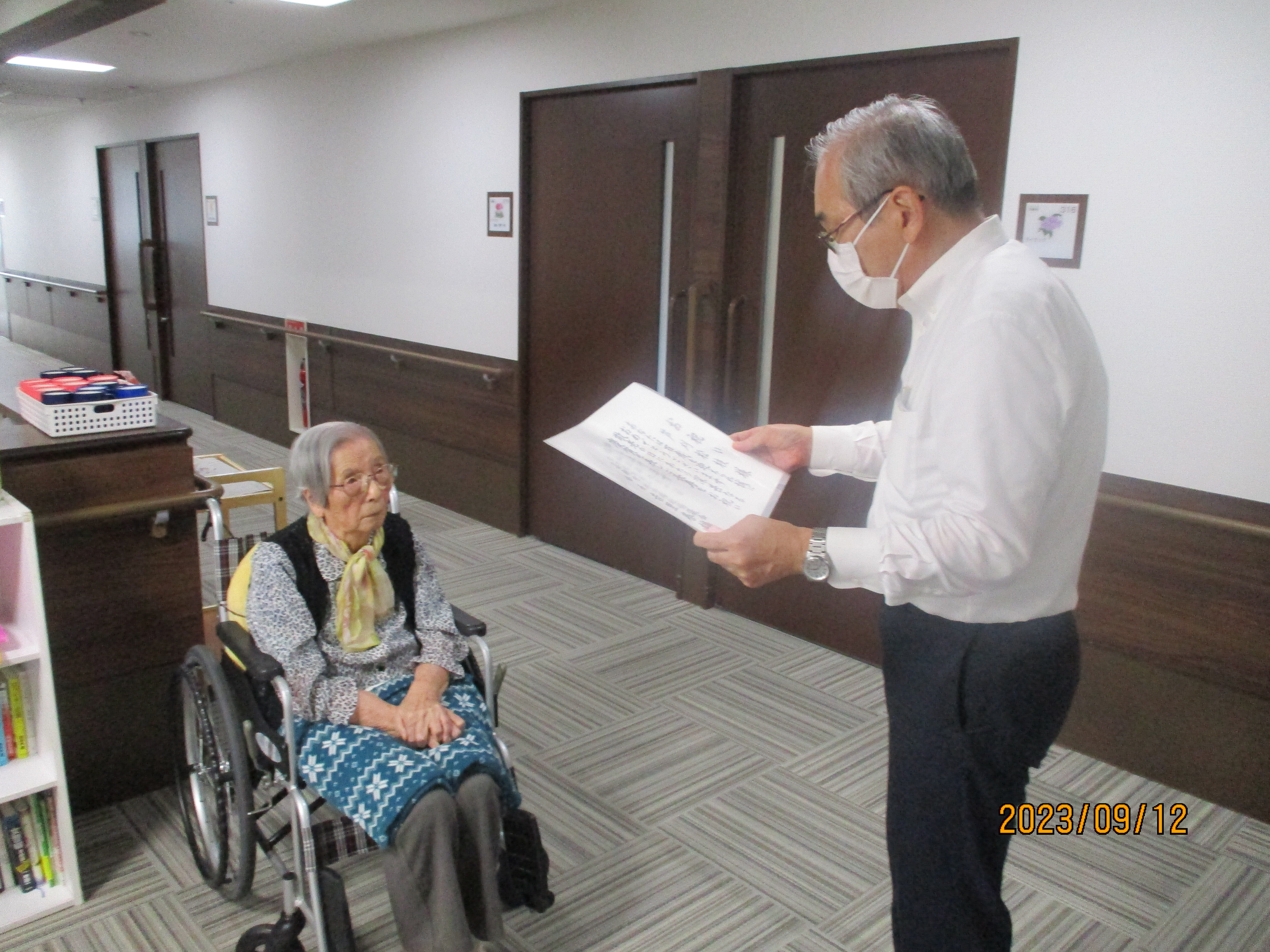 高槻市社会福祉協議会より100歳のお祝いをされました㊗