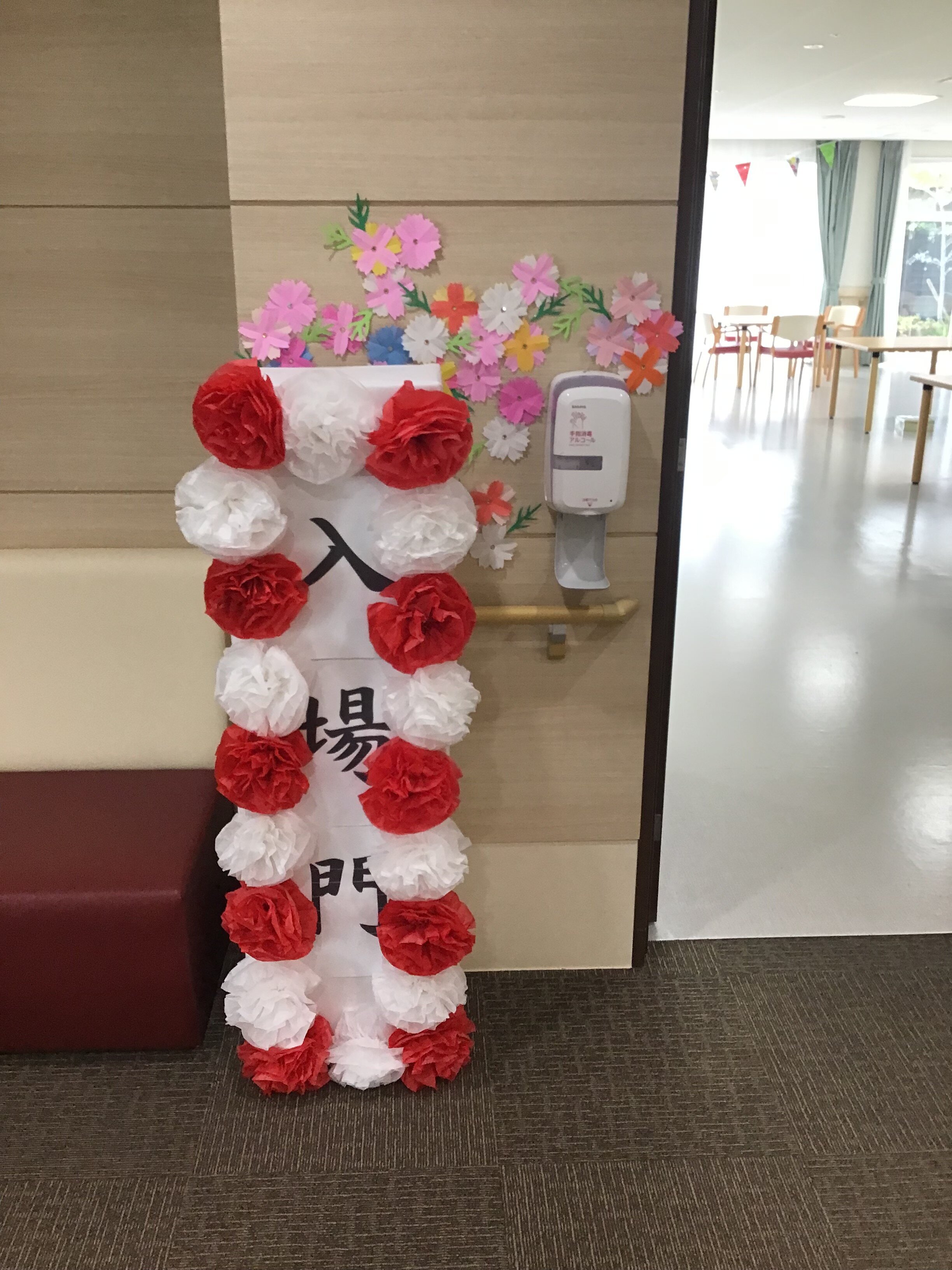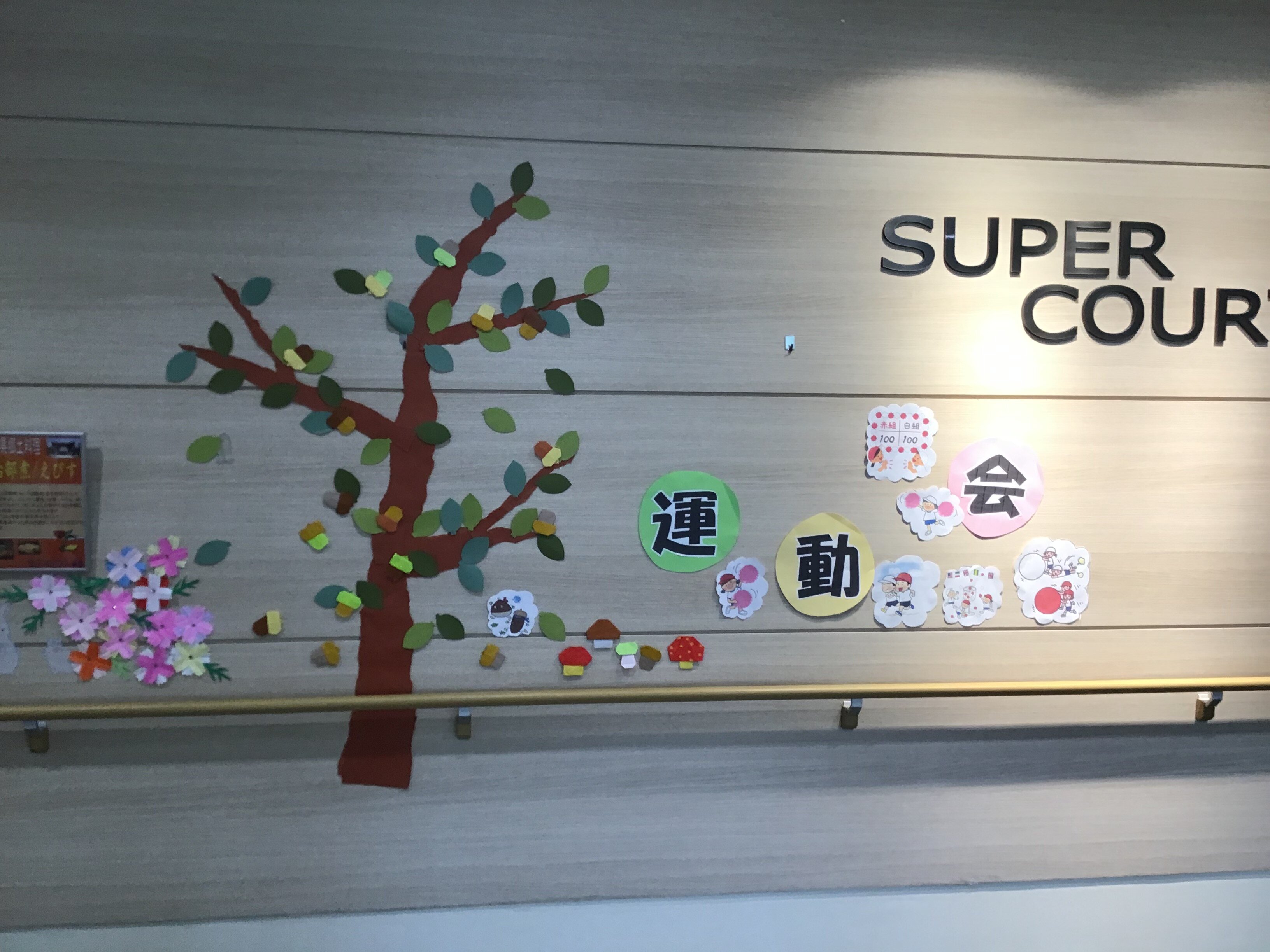 玄関ホールの飾りつけも運動会仕様に!気合が入ります!