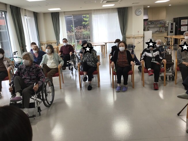 皆様、居室で過ごしていたとは思えないほど元気に参加して頂けました!