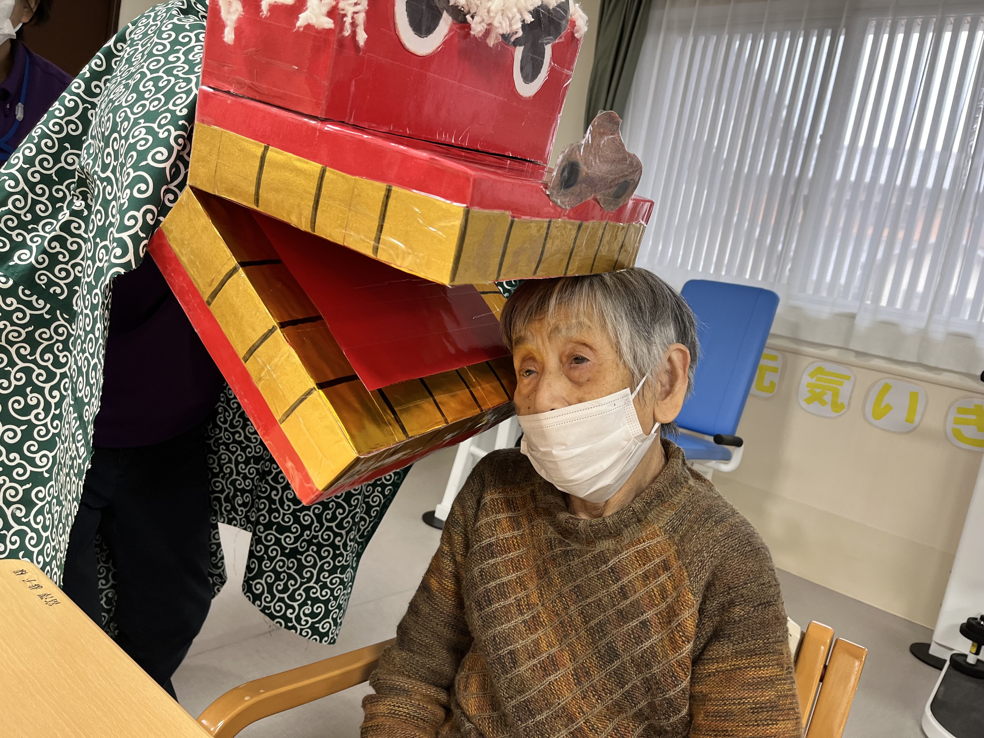まずは、こちら!!数年前に職員が手作りした獅子舞の登場です!!