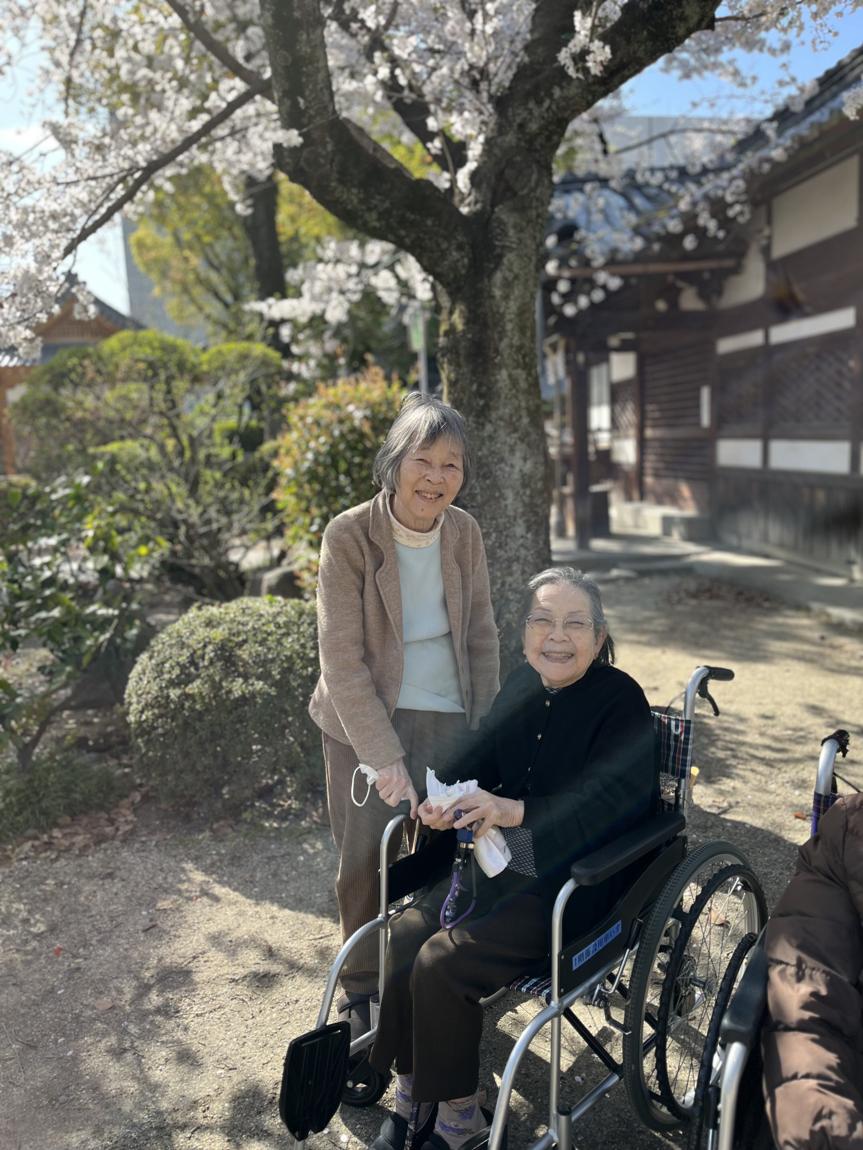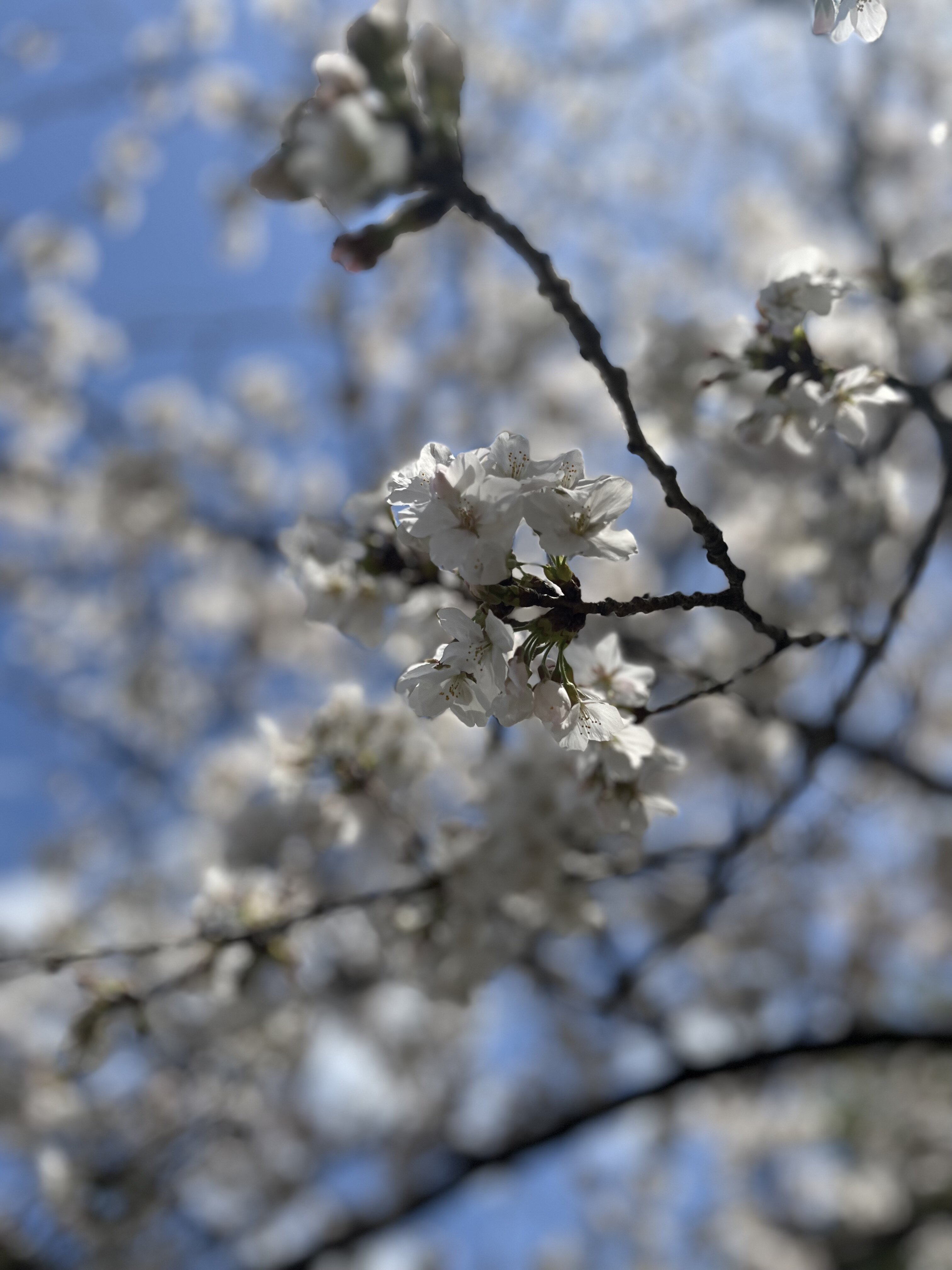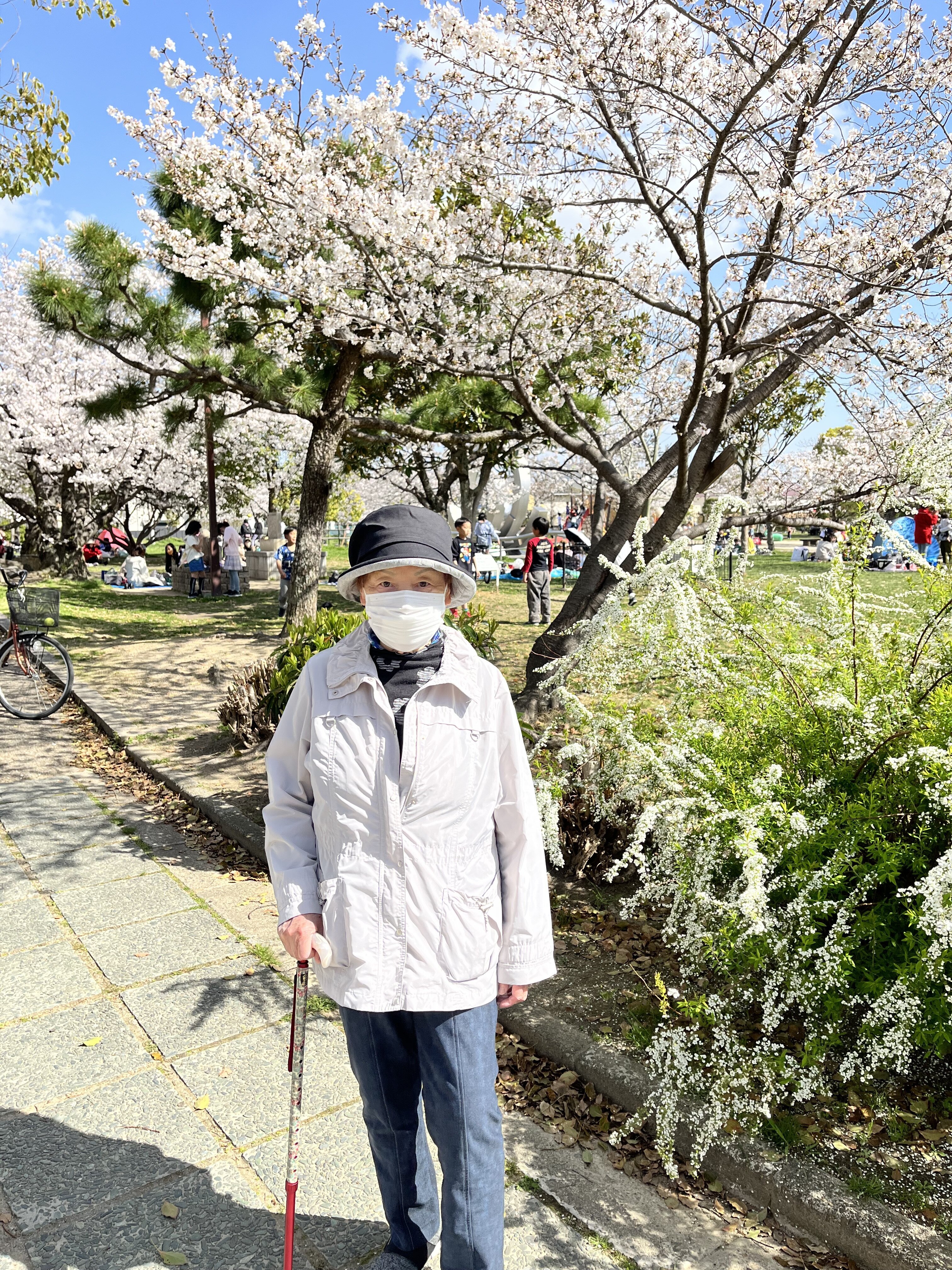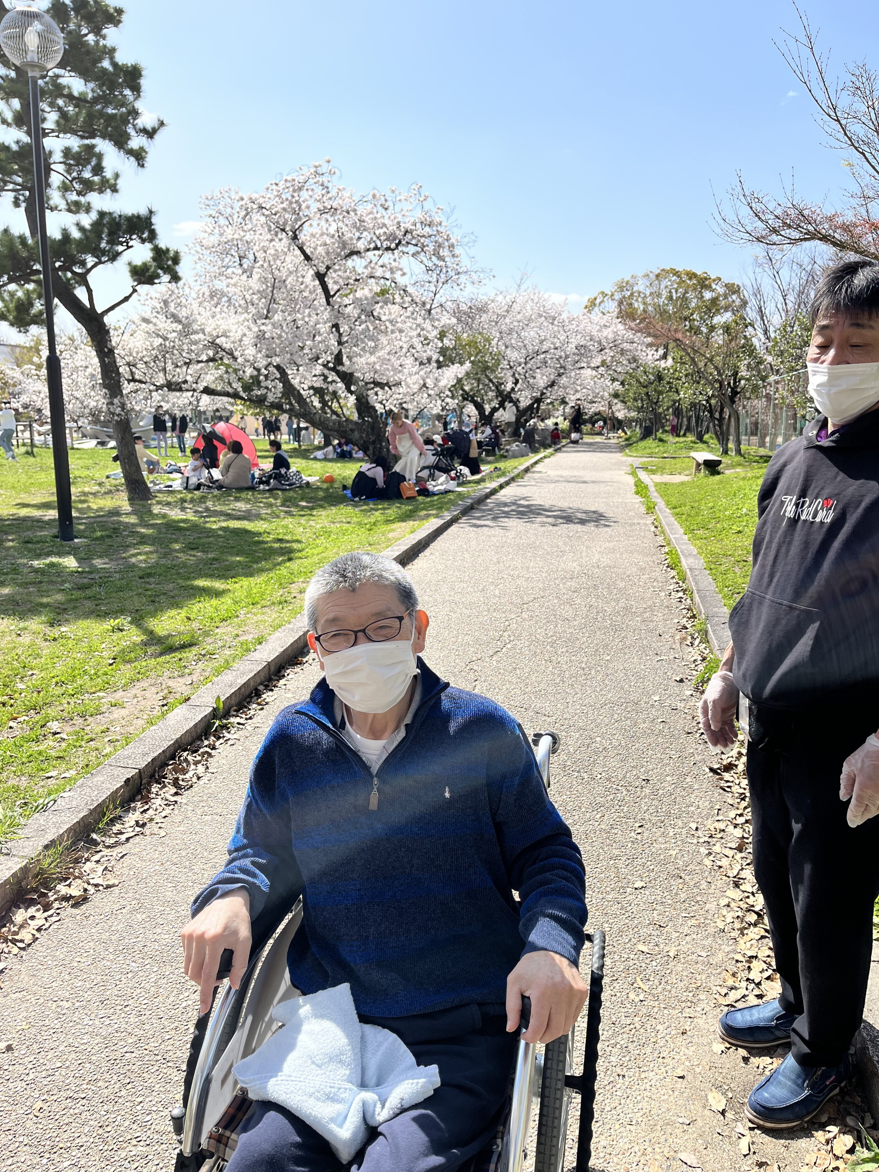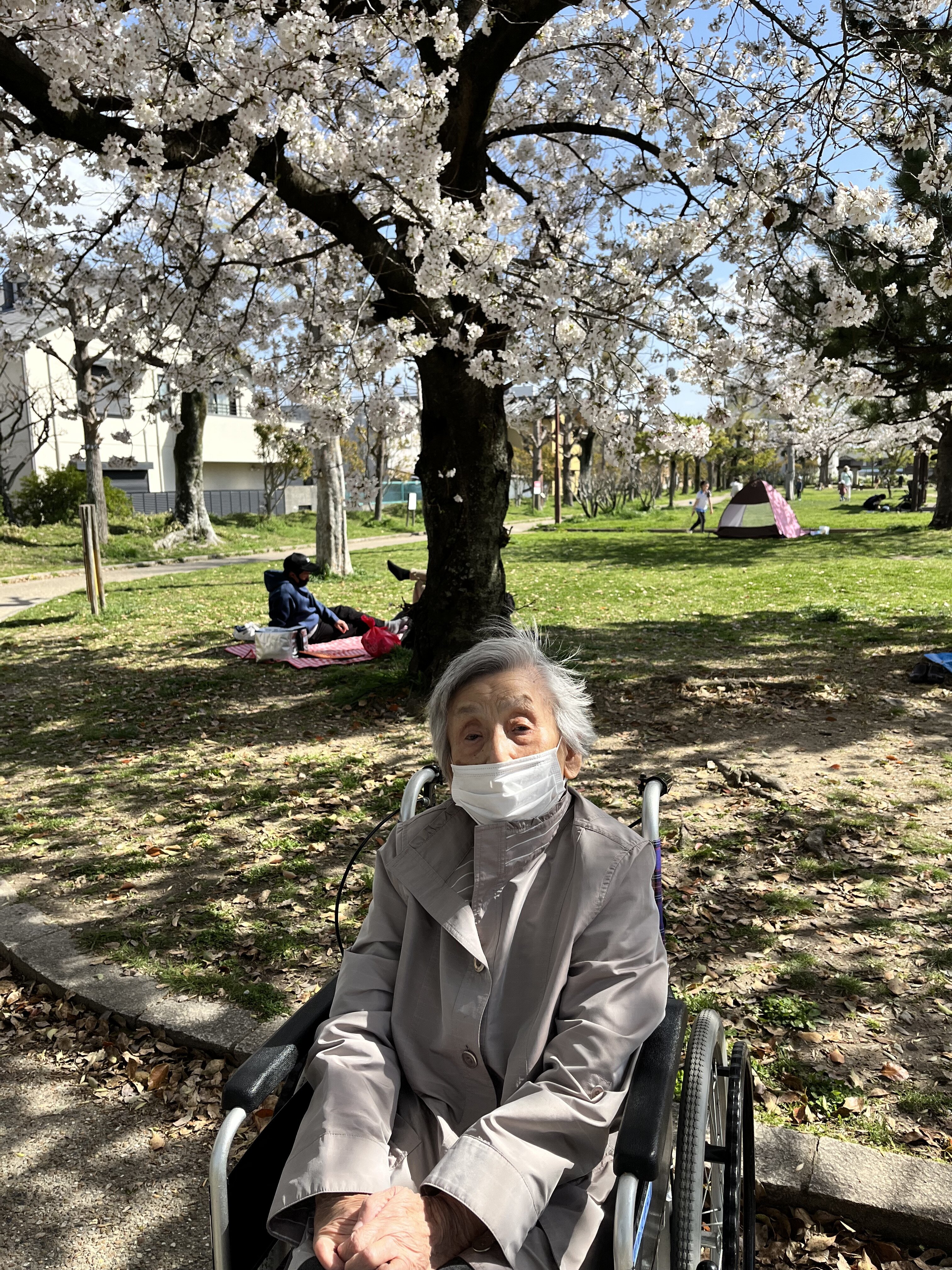 久しぶりにお外に出られて、綺麗に咲いた桜の元