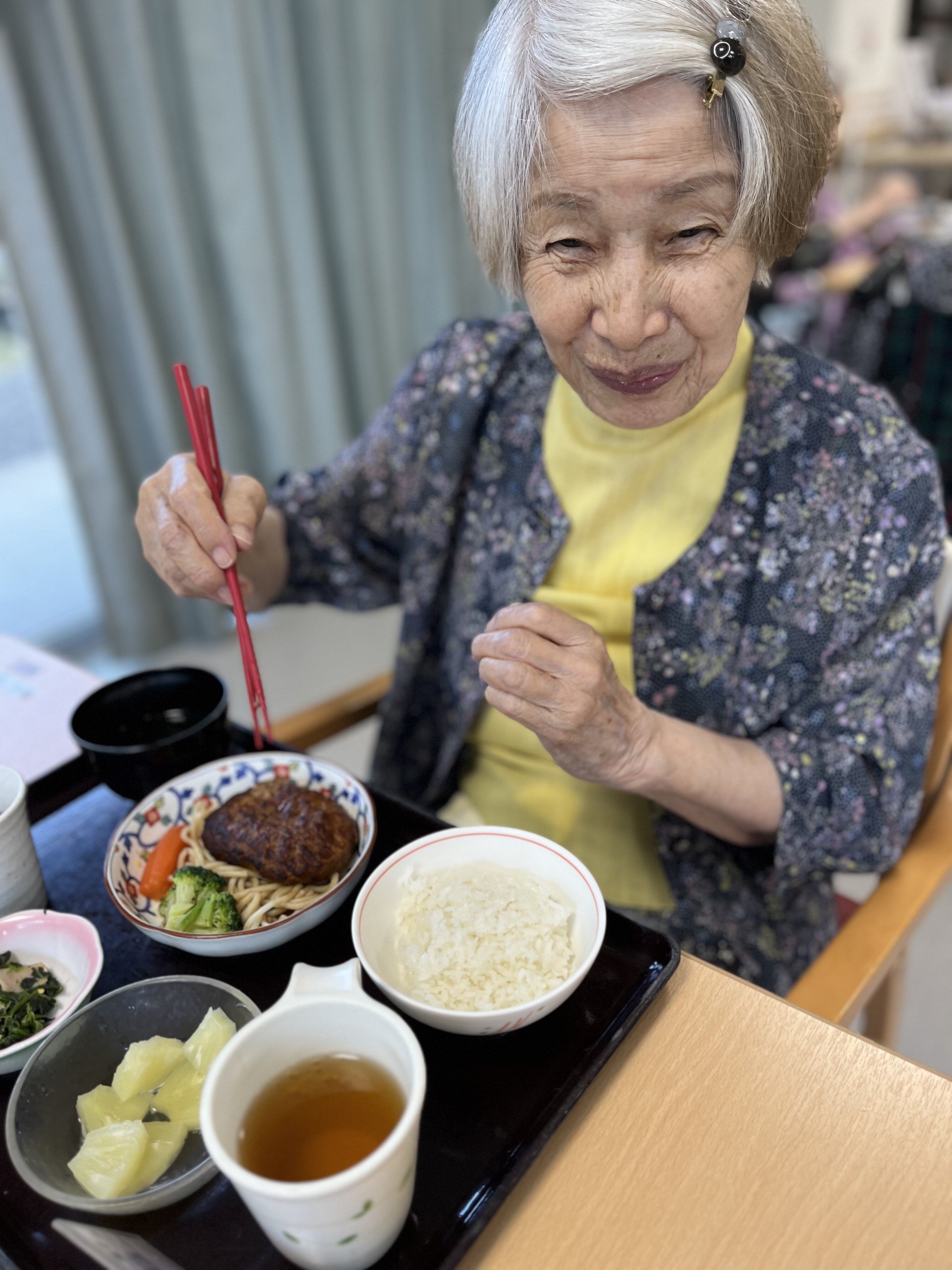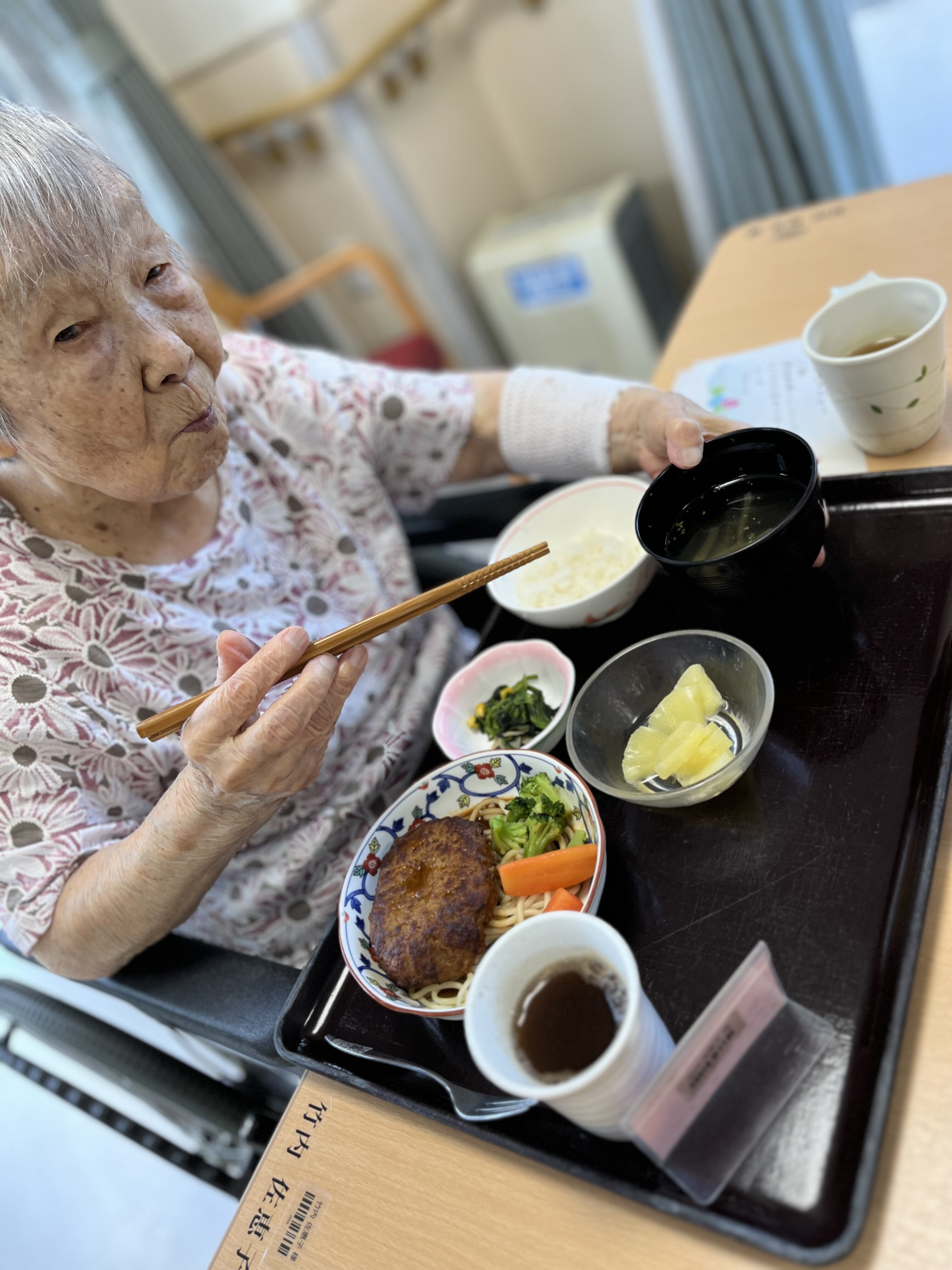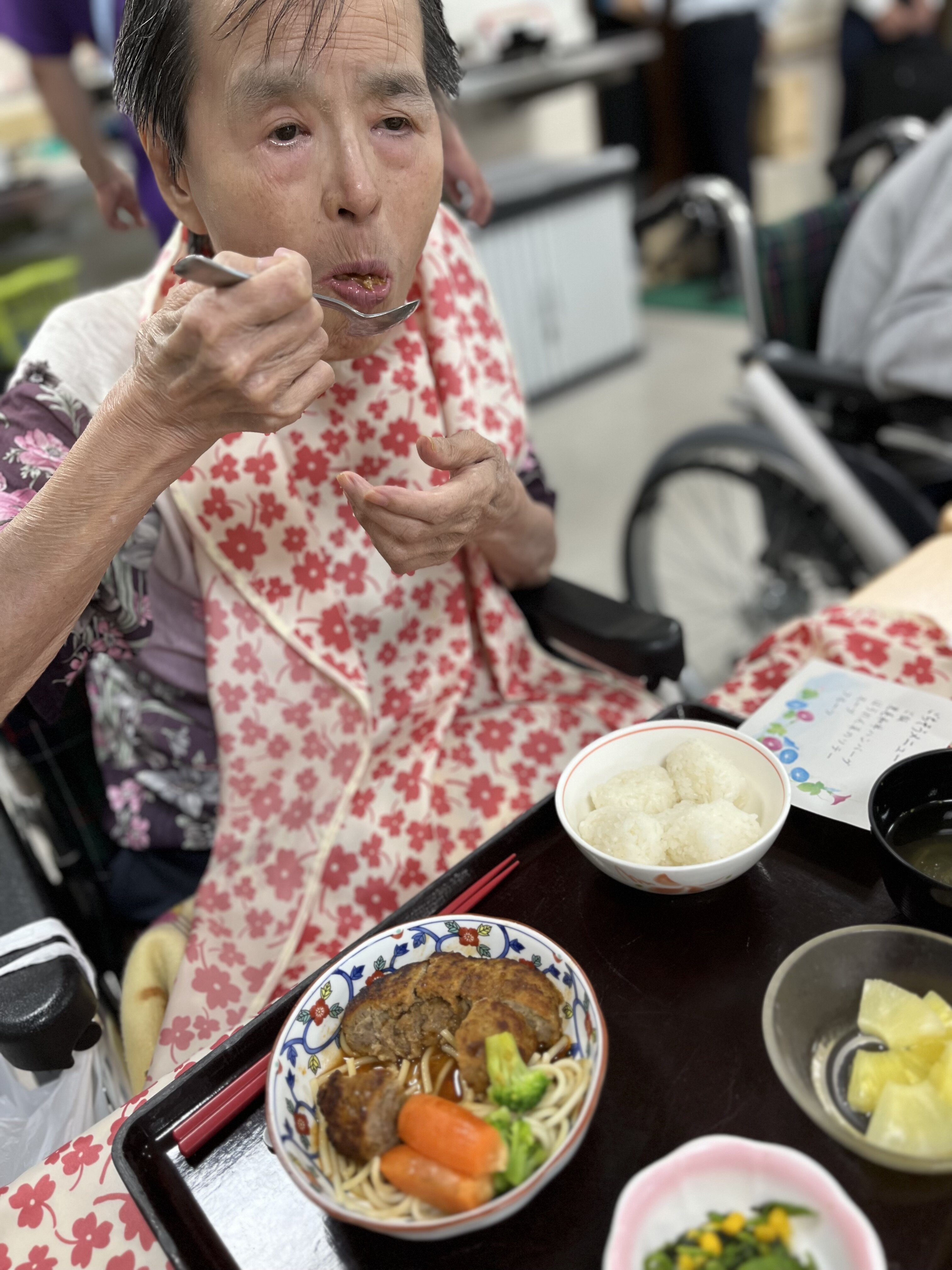 ごちそうメニューの際は、召し上がられておられるご入居者に