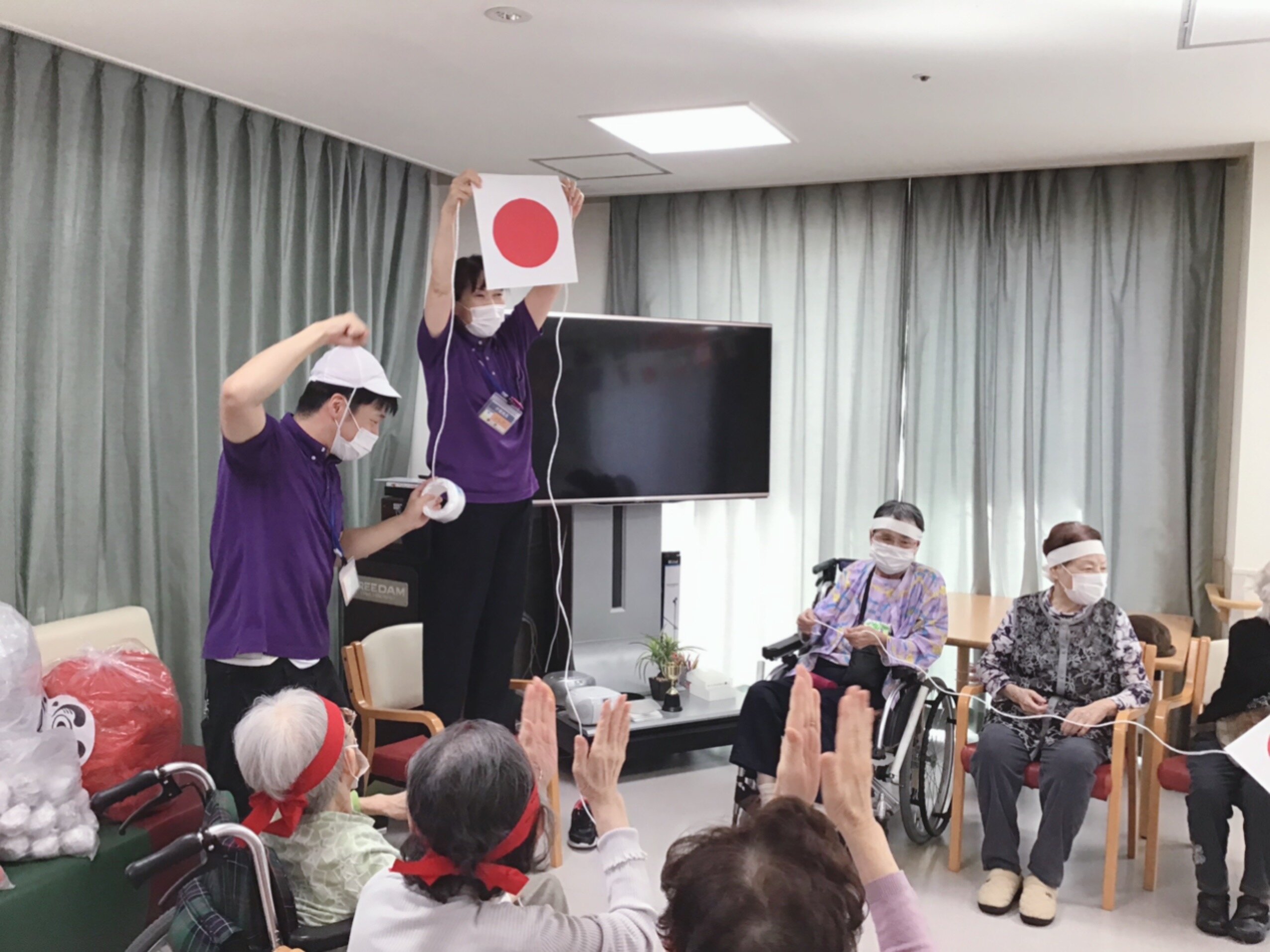 職員対抗「パンスト対決」「くるくるバッド」実施されました!