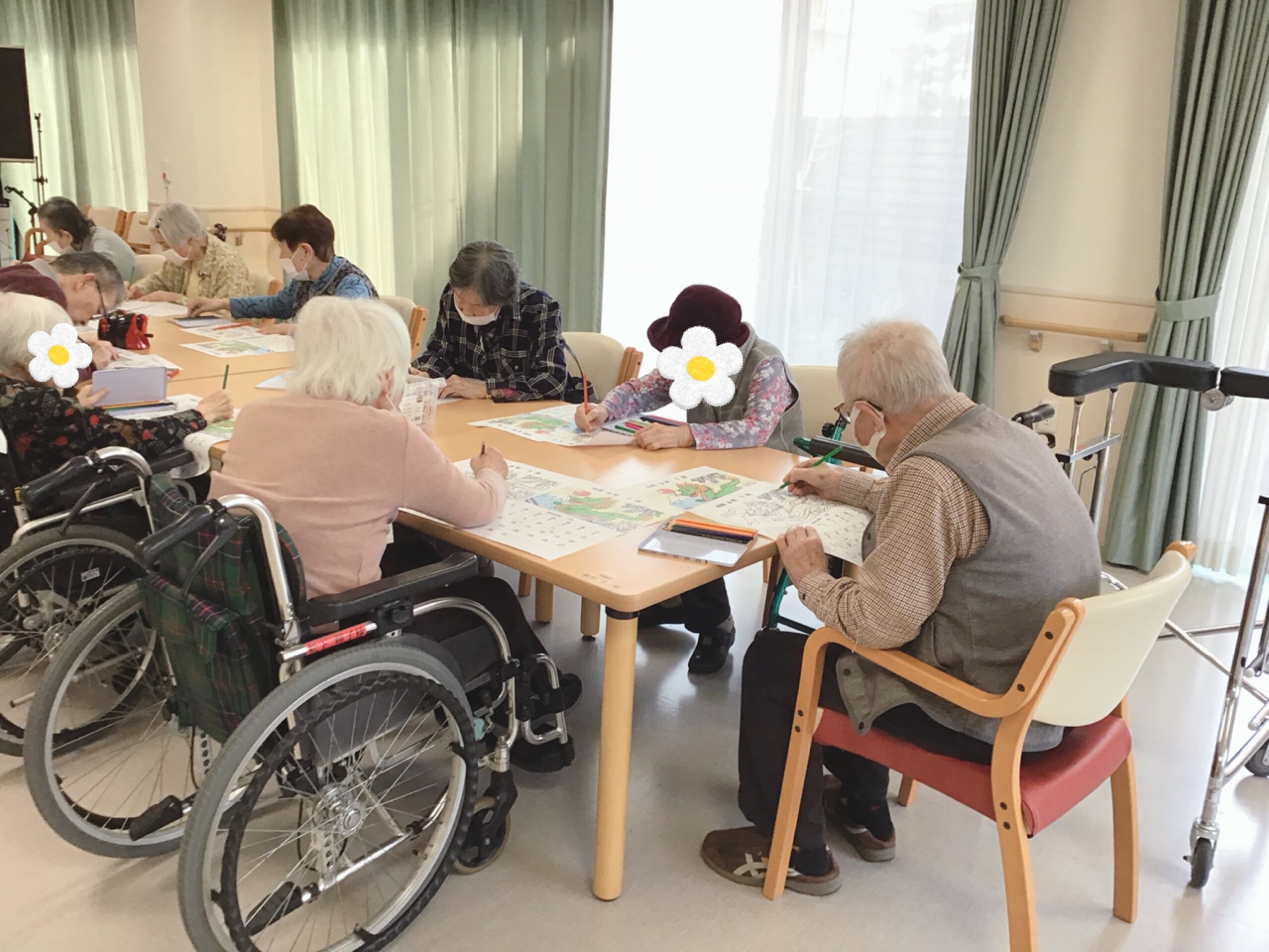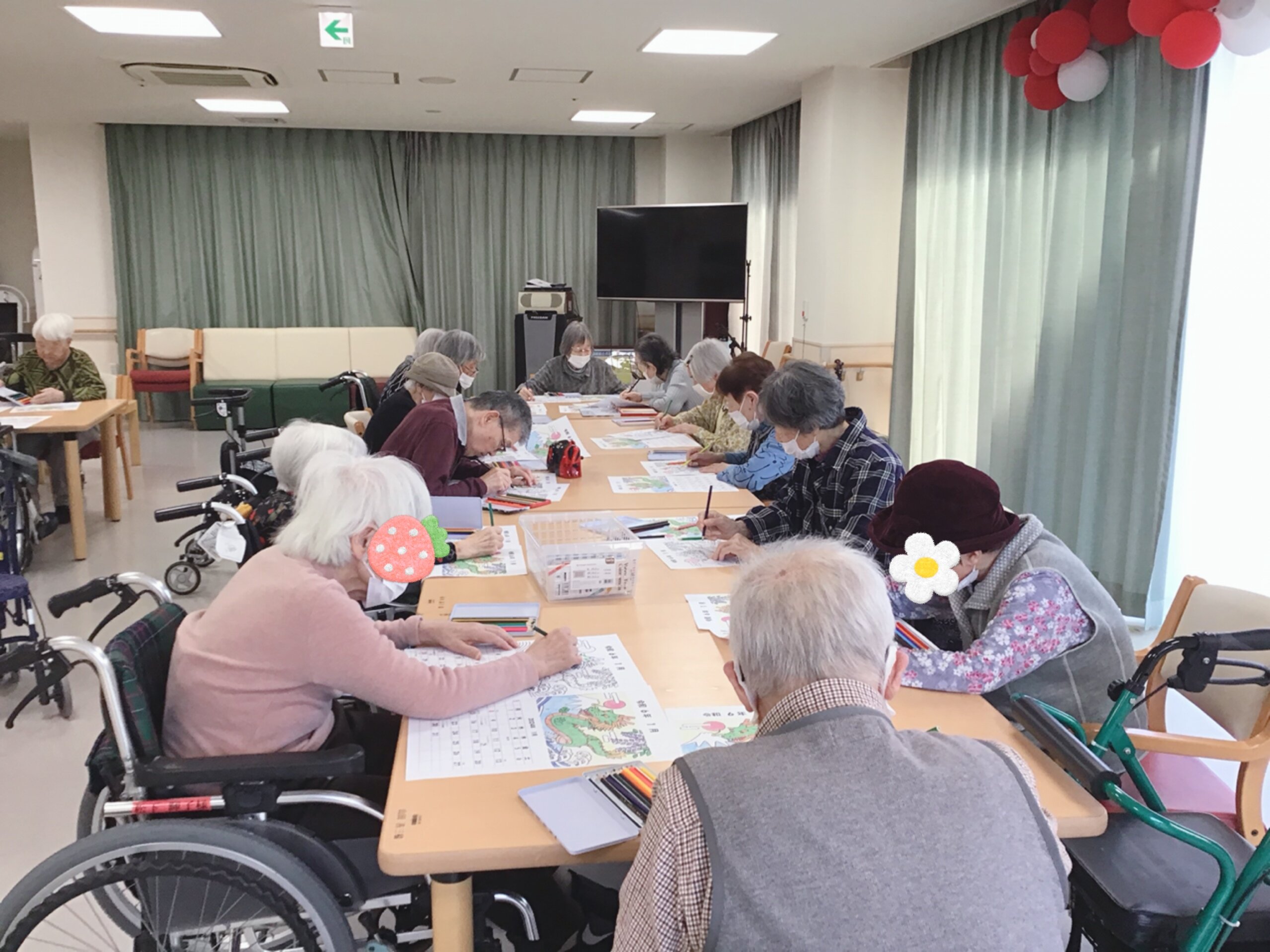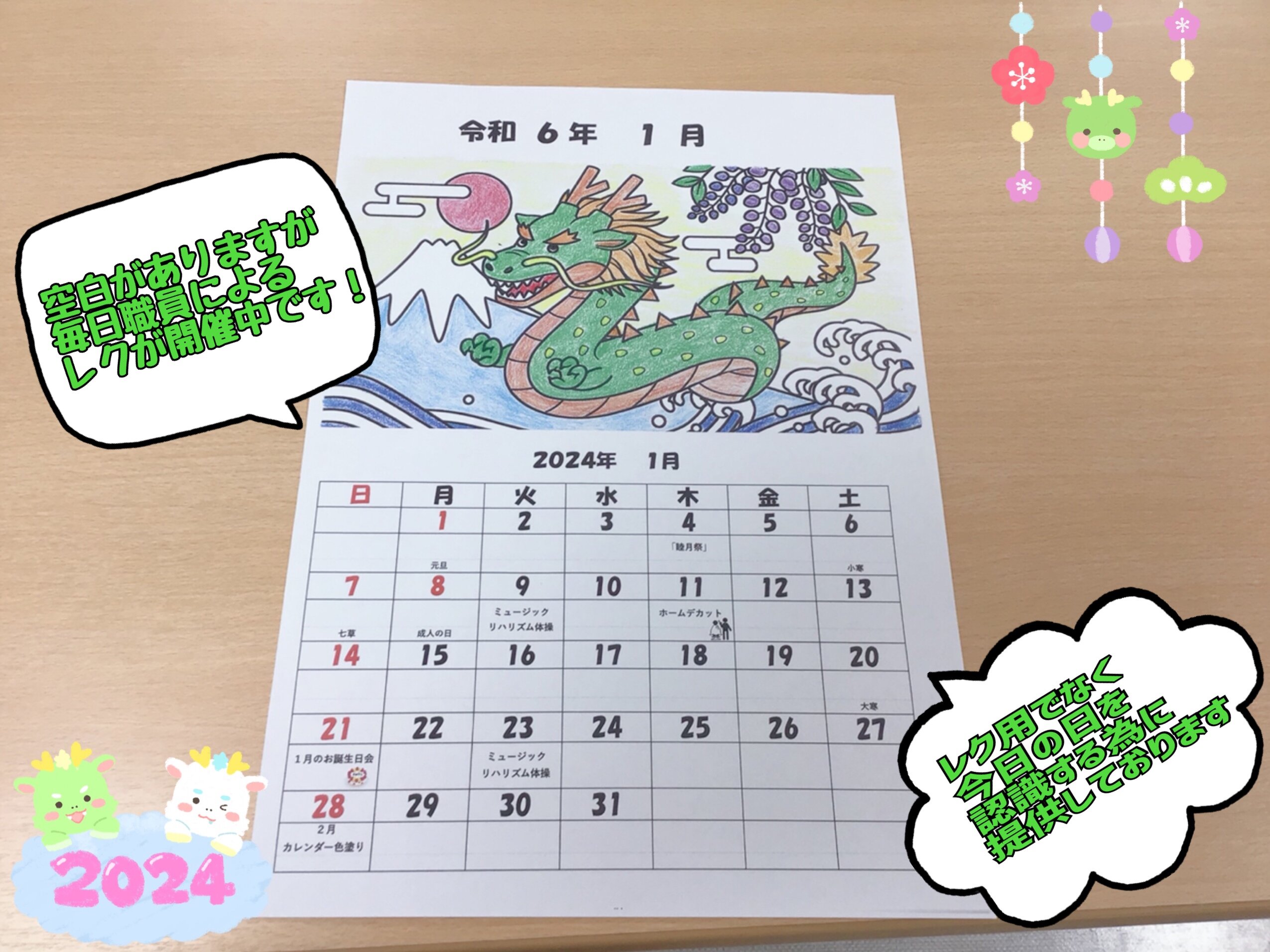 今回は「1月カレンダー色塗り」レクの