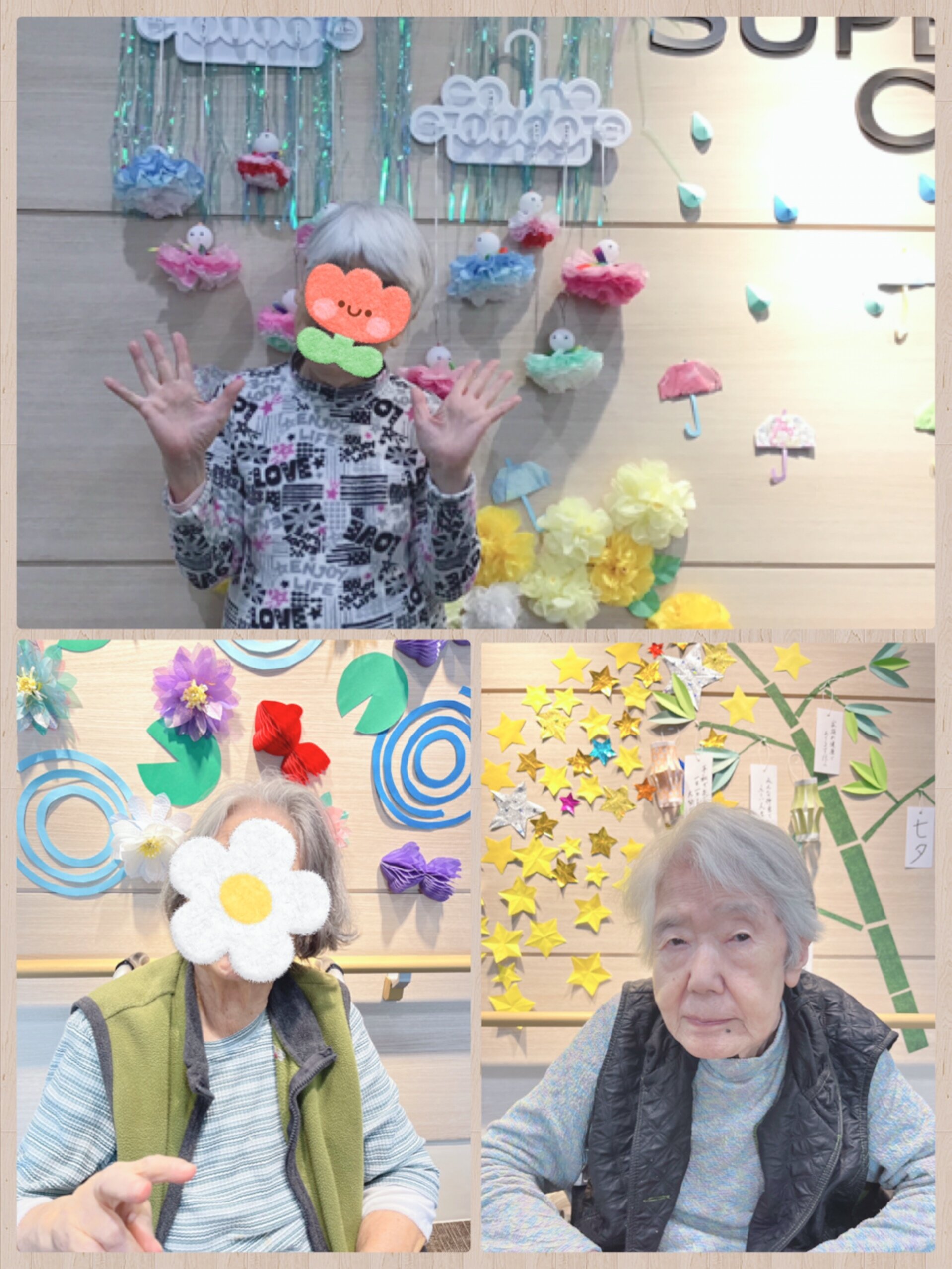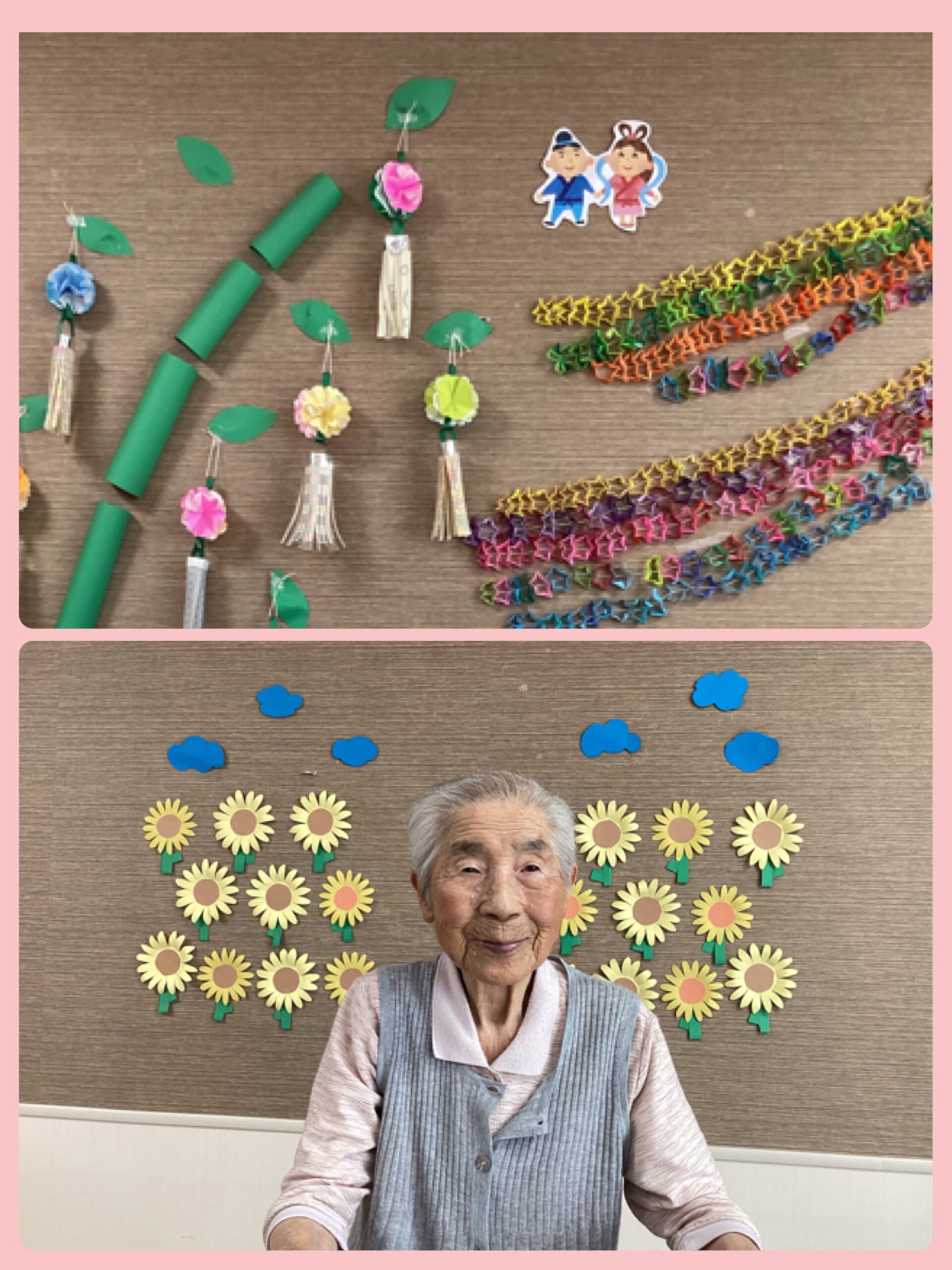 職員だけでなく、「壁面飾り作りレク」で