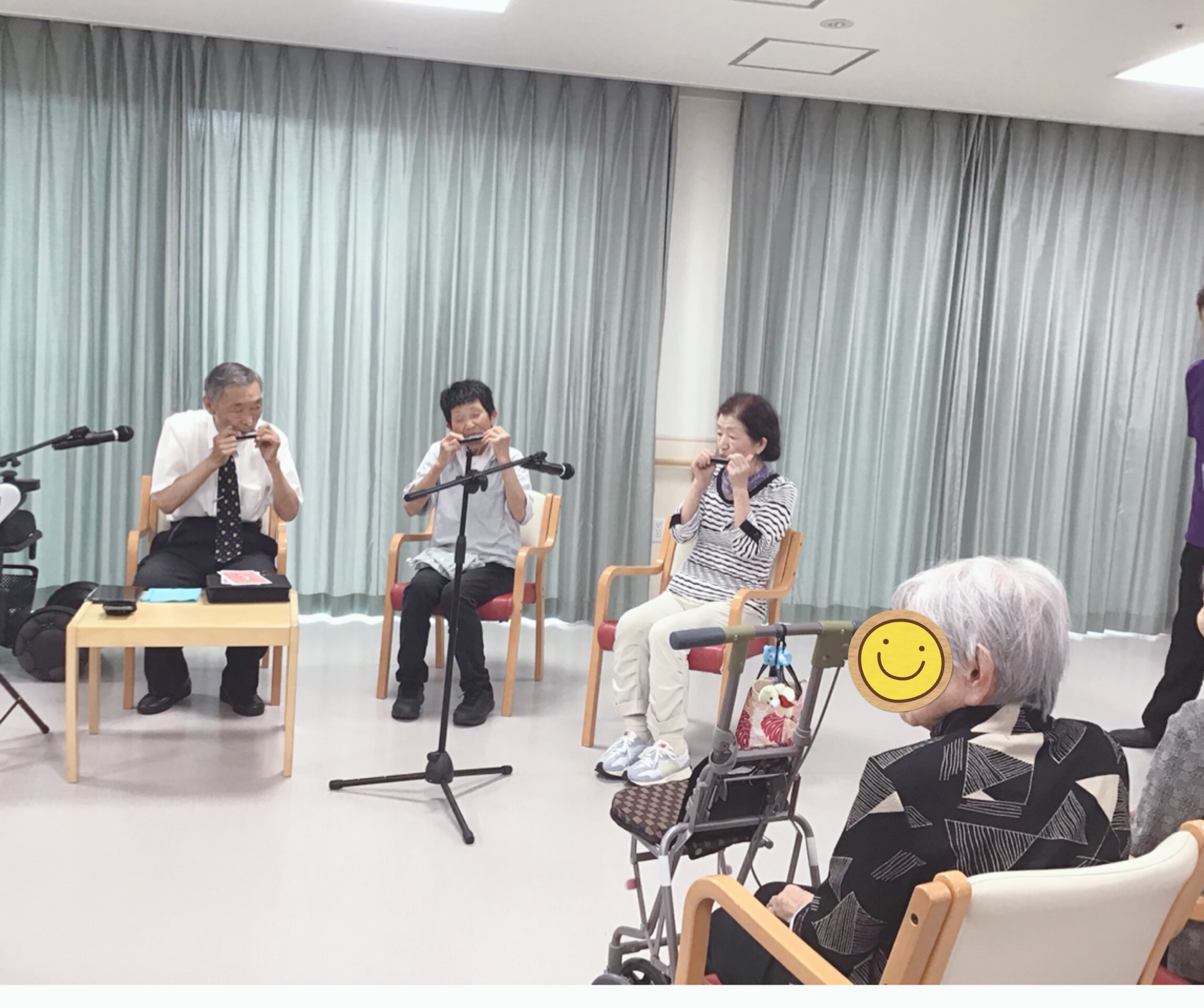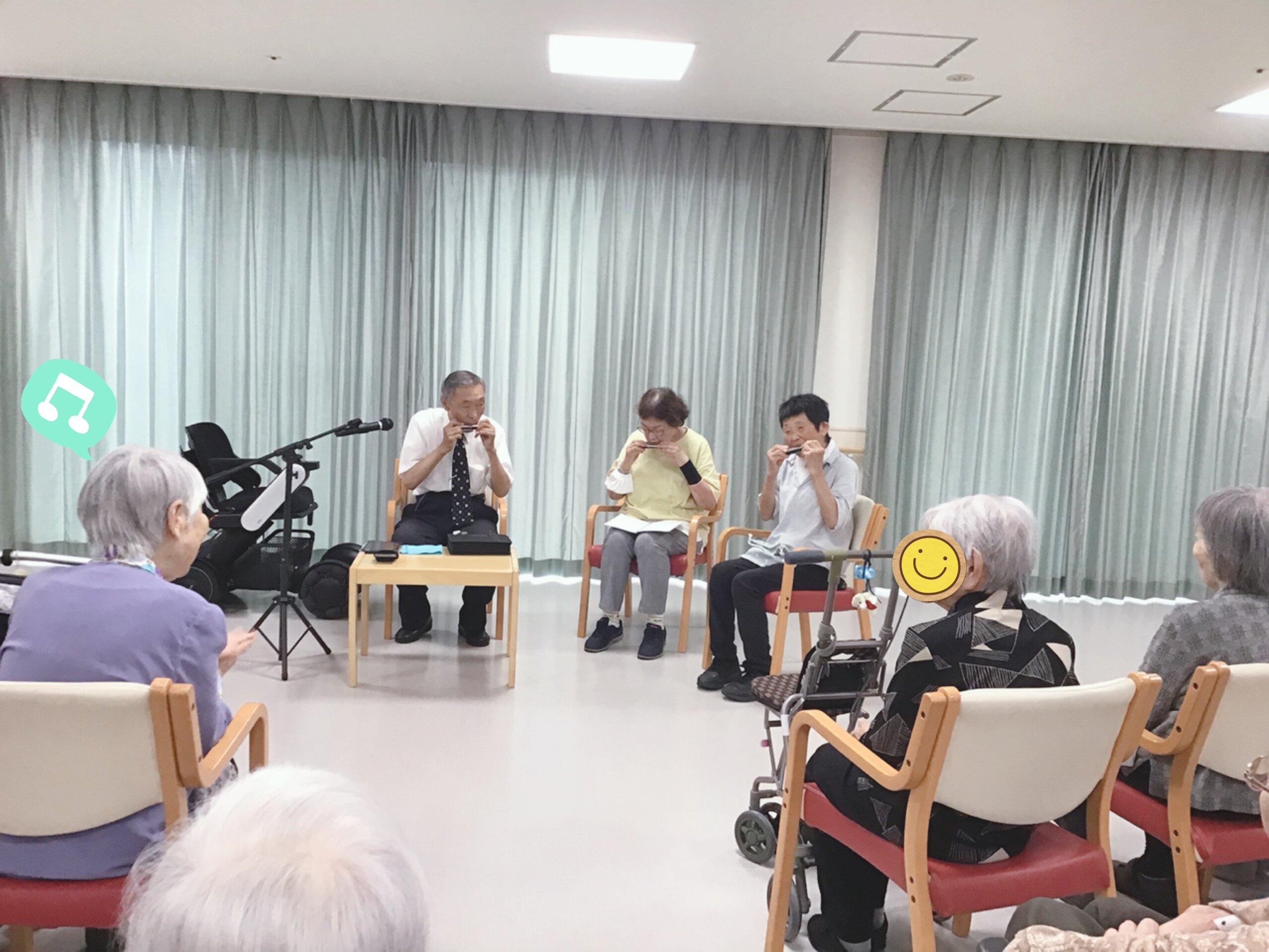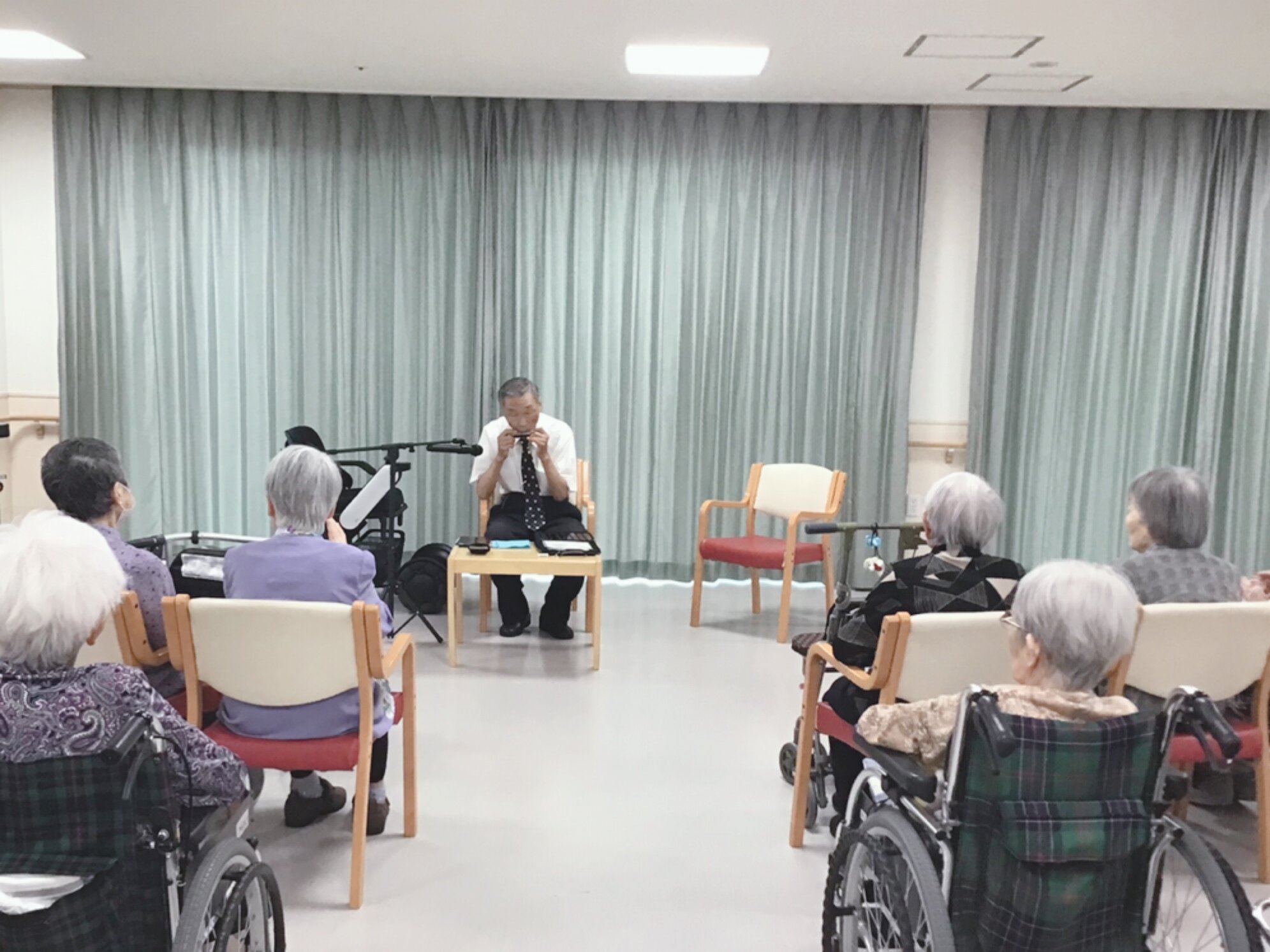 今回は「ボランティアハーモニカ&南京玉すだれ」を