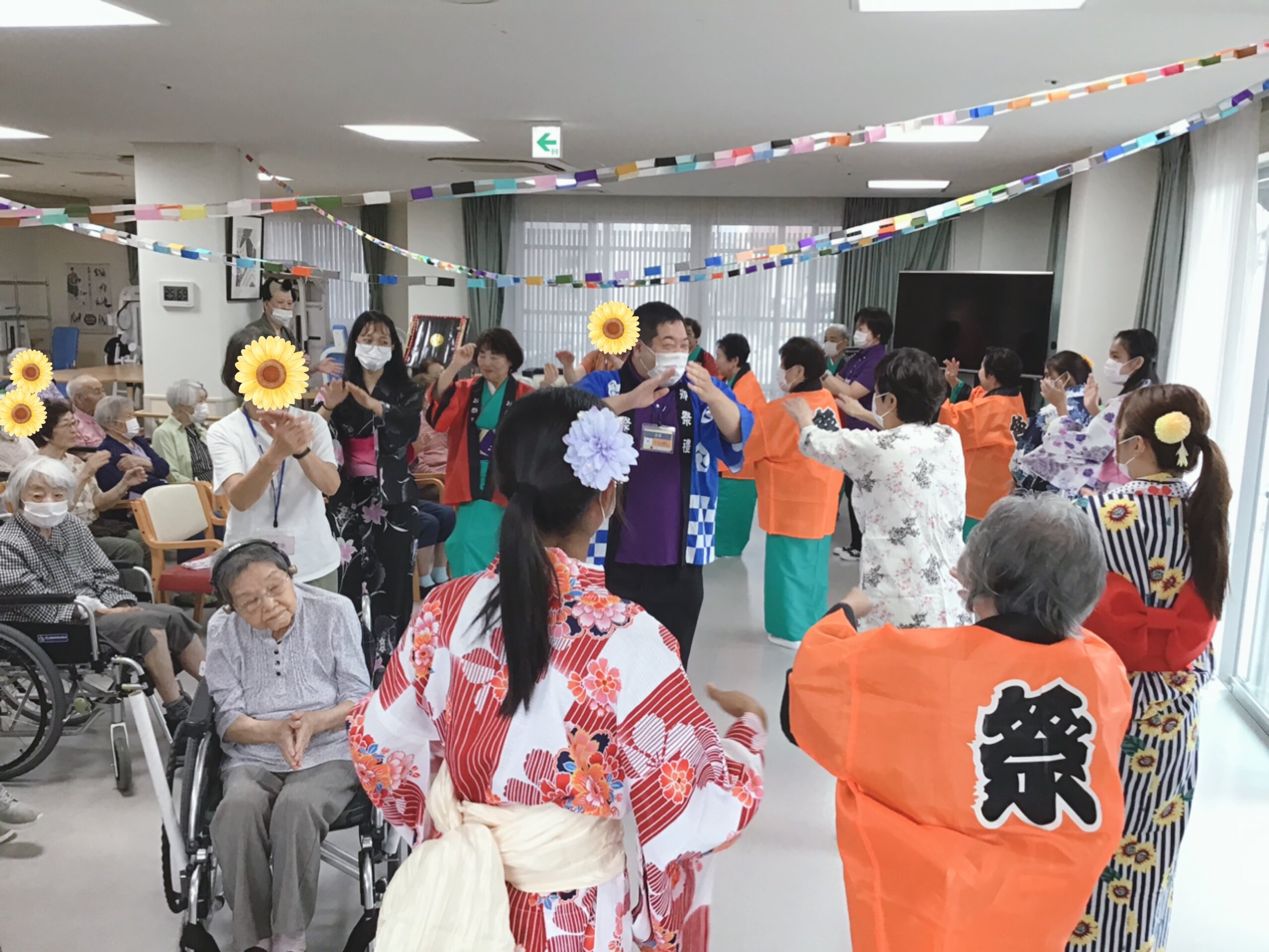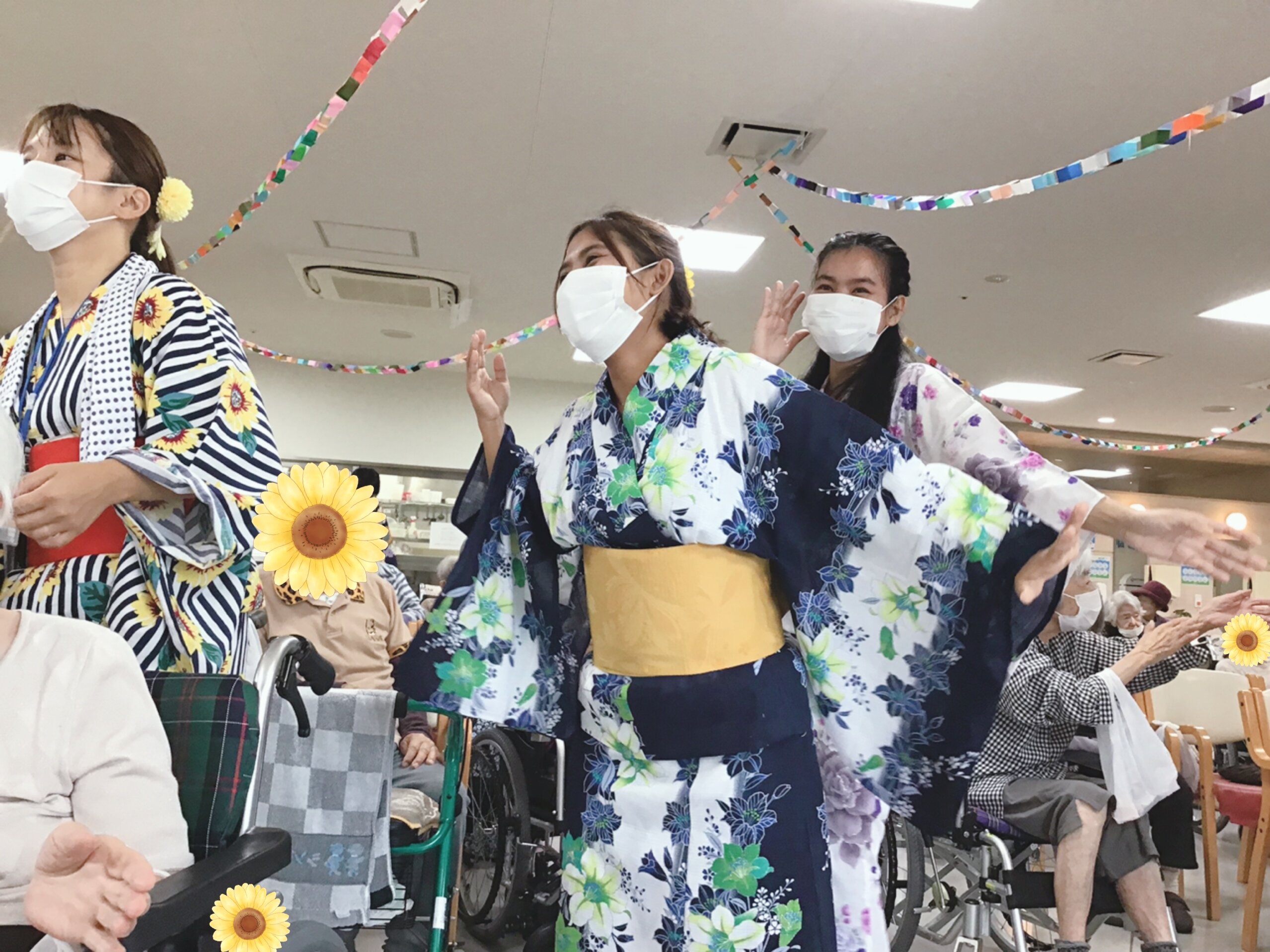 浴衣を着た職員・ご入居者様・ご家族様も