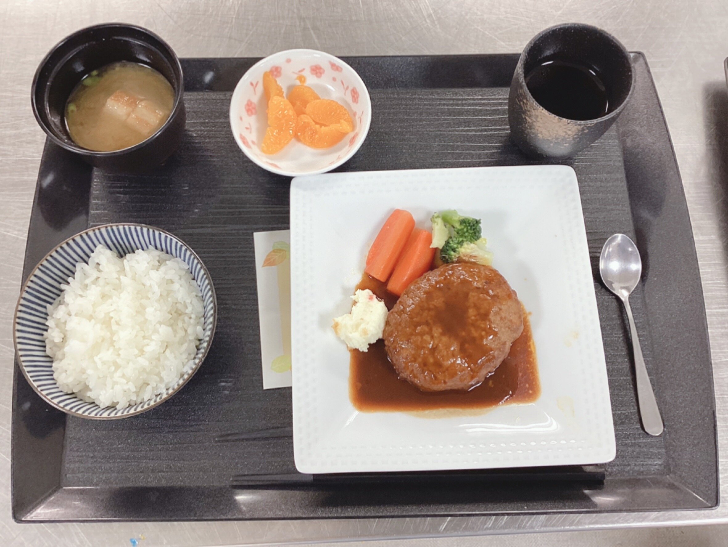 配膳時、「すごい大きなハンバーグですね」と