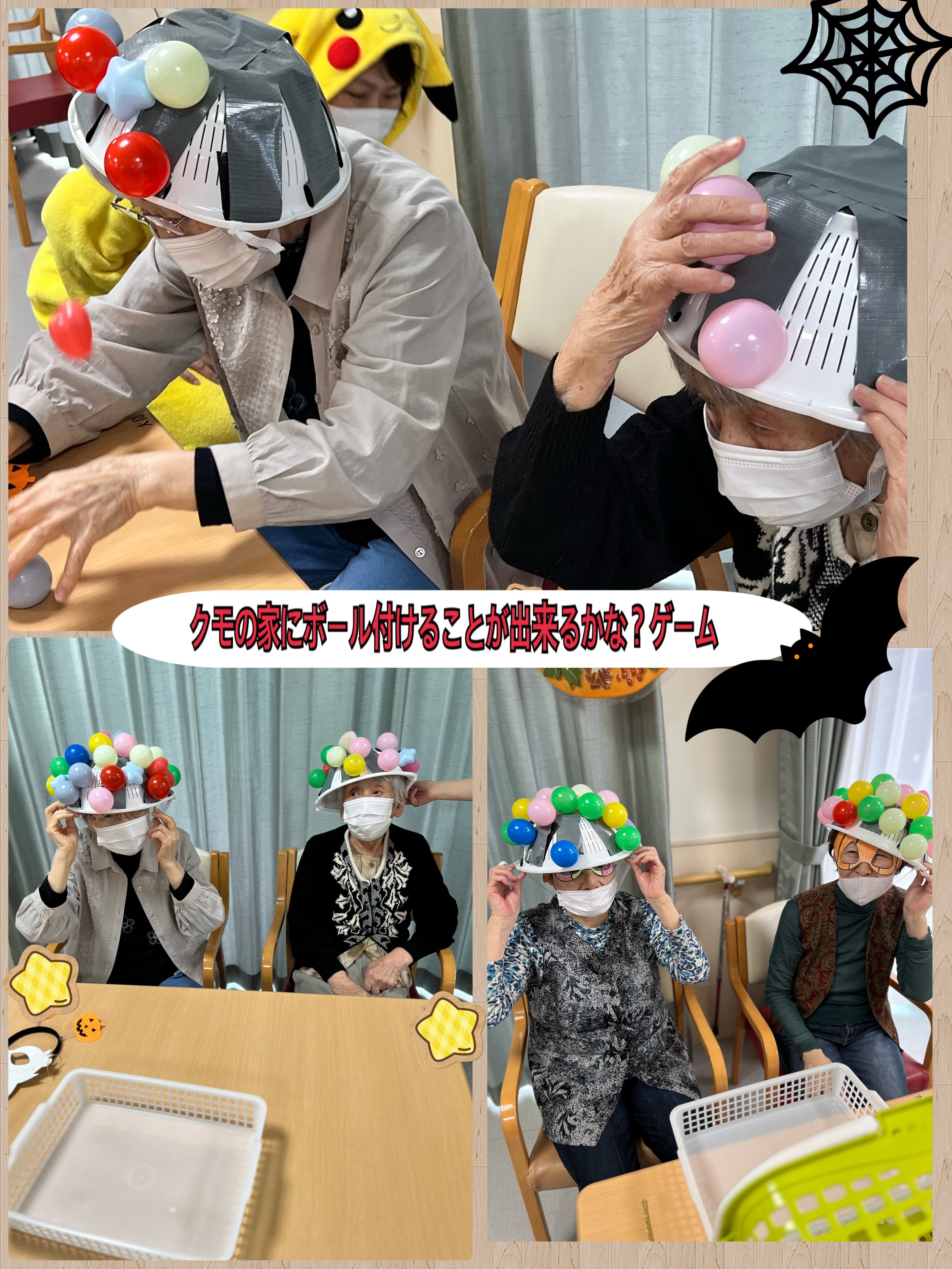 まず1種目「クモの家にボール付けることが
