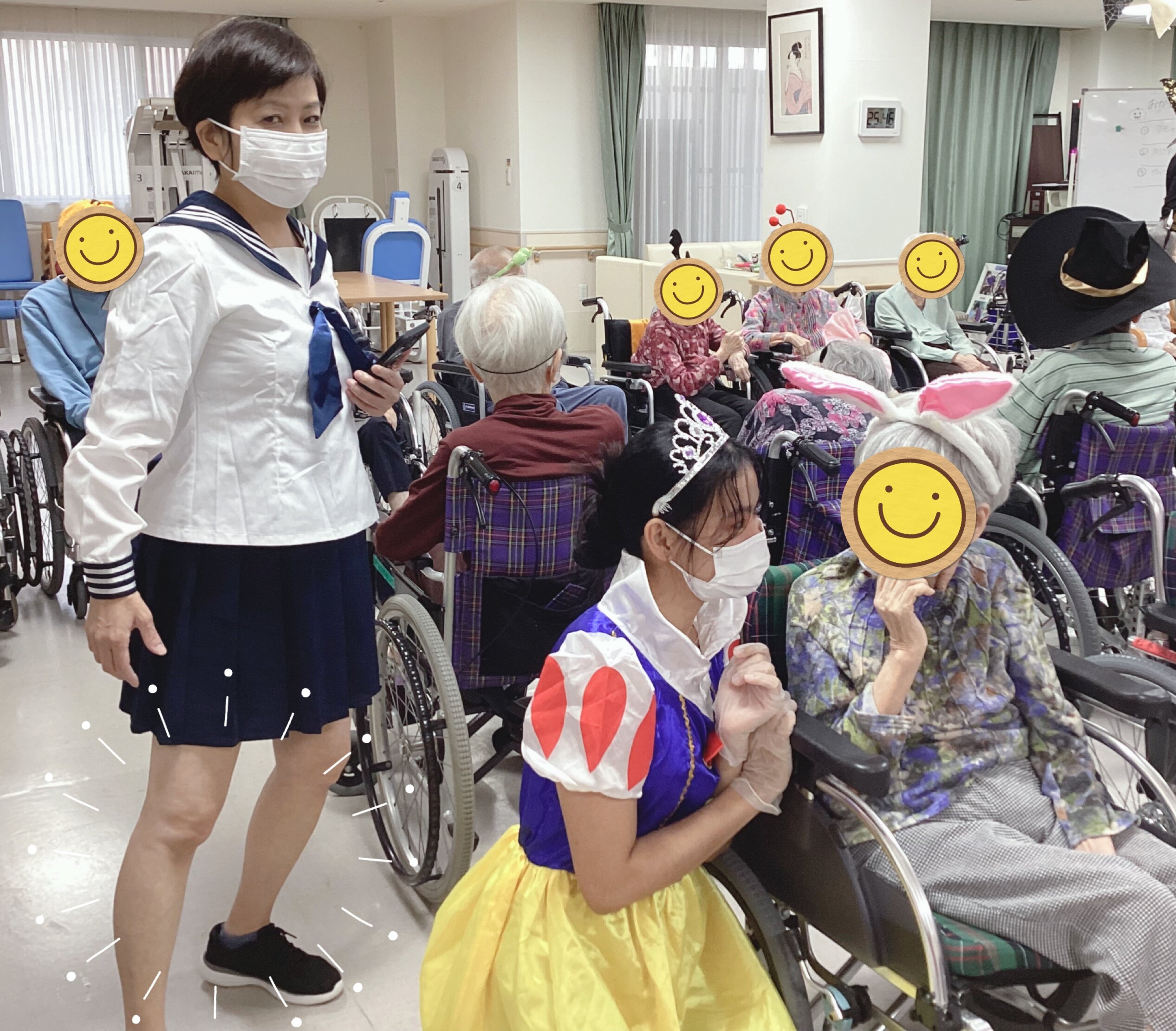 待機組のご入居者様は職員と写真撮影をしました。