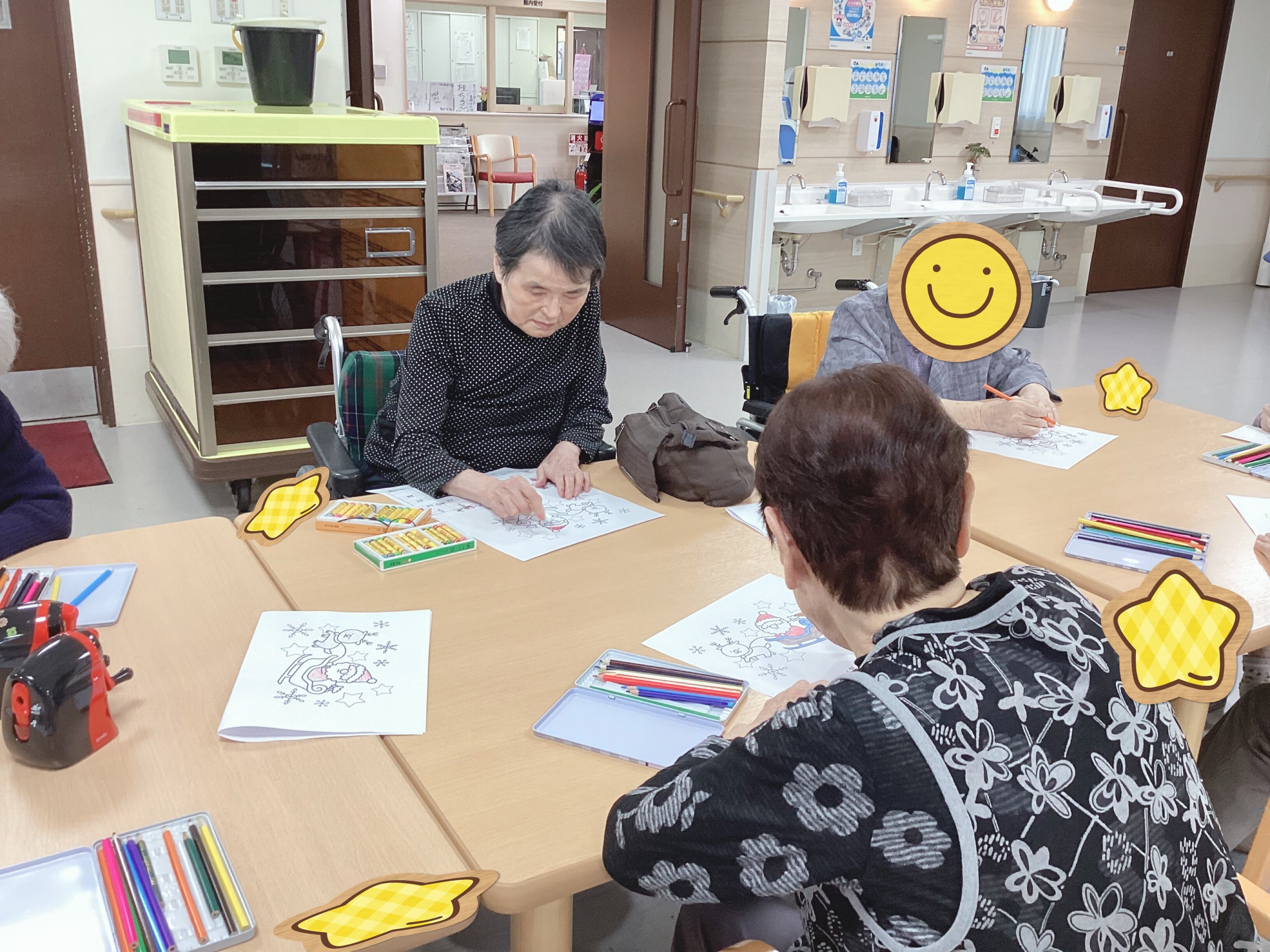 色鉛筆やクレヨンで皆様、塗っておられました。