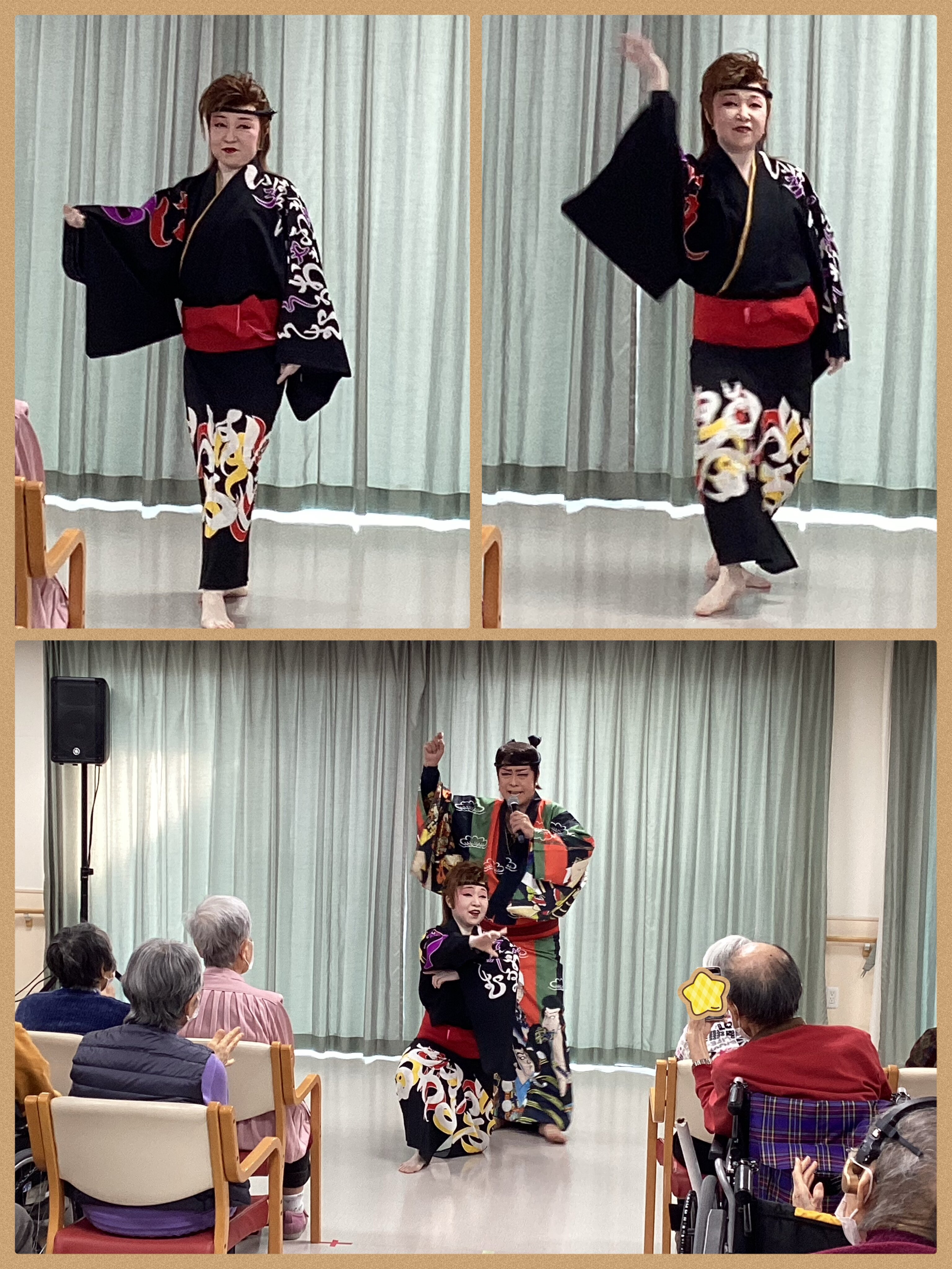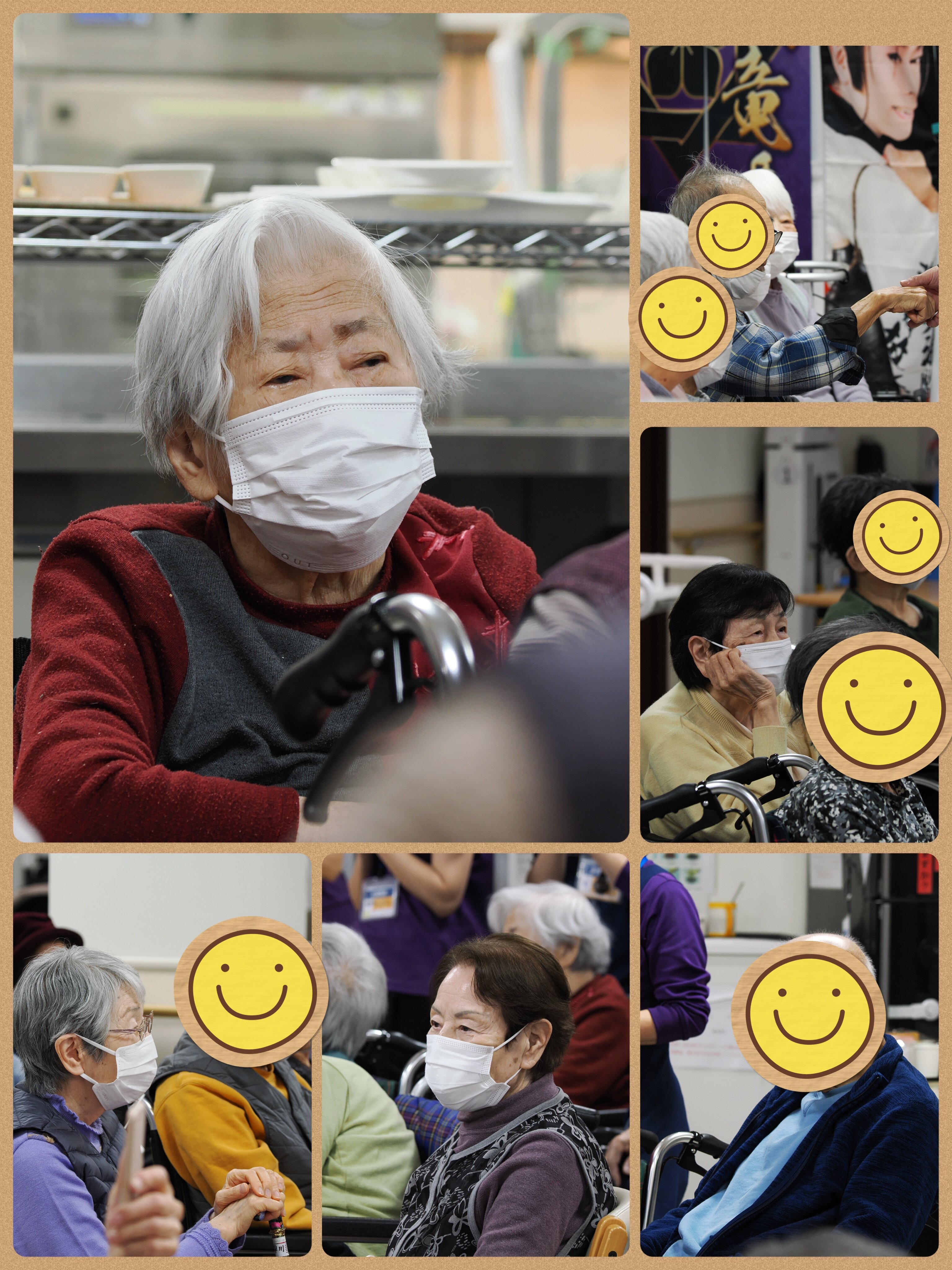 ご入居者様の目の前に行き、ガッツポーズや笑顔で頷き、