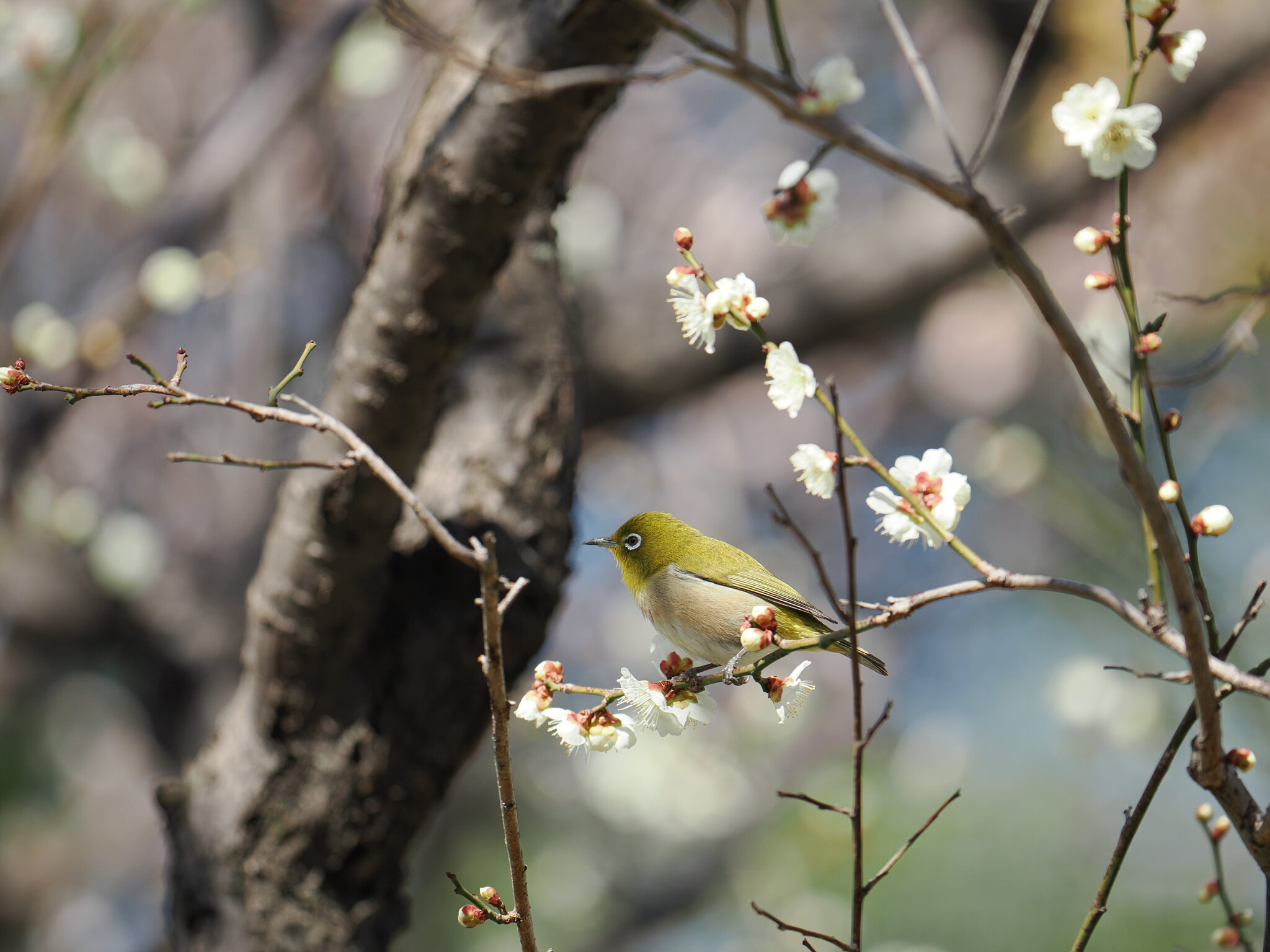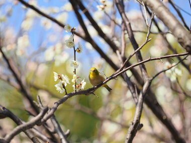 桜とメジロのお写真です( *´艸`)