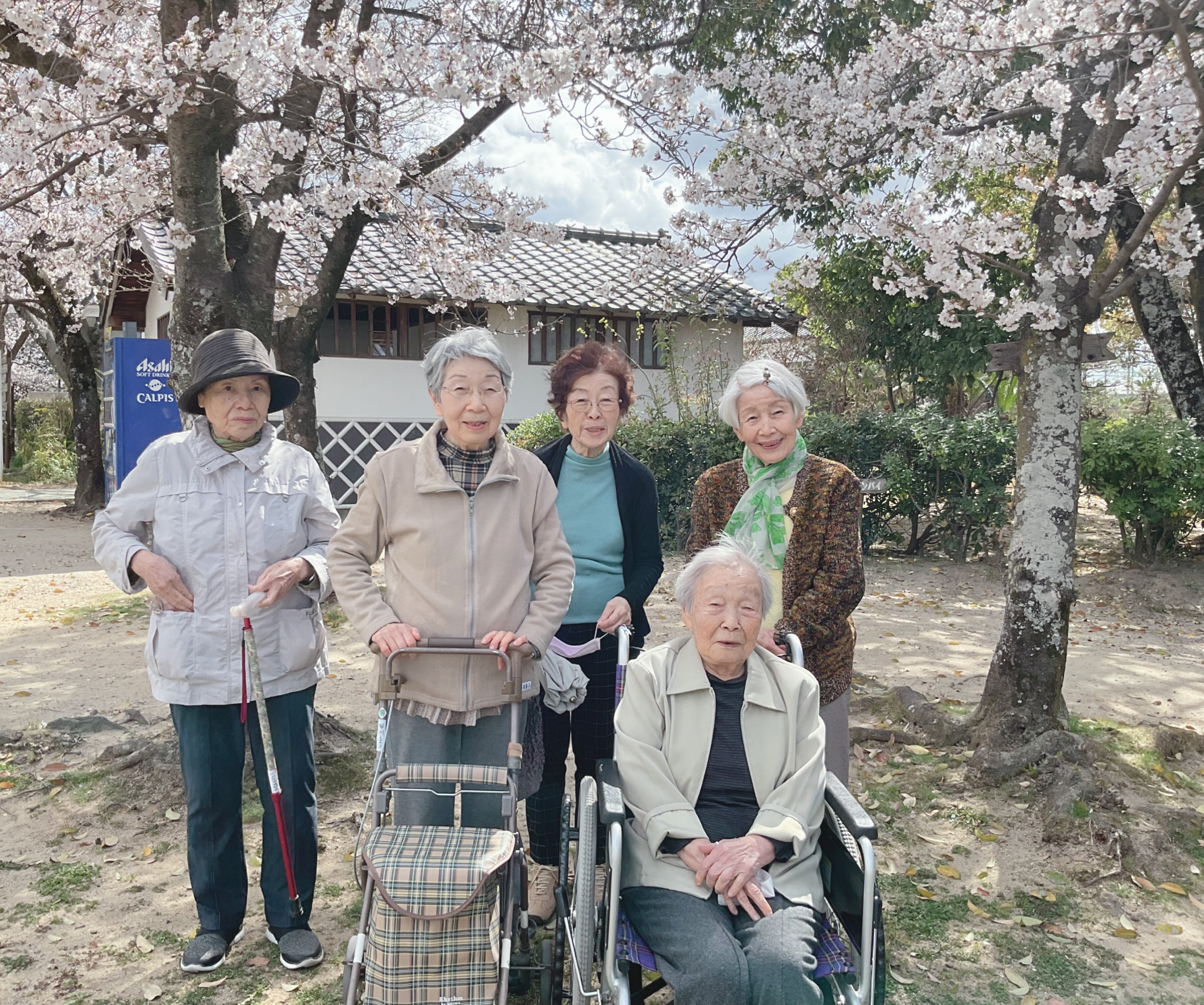 入居者様との「お花見」の様子を