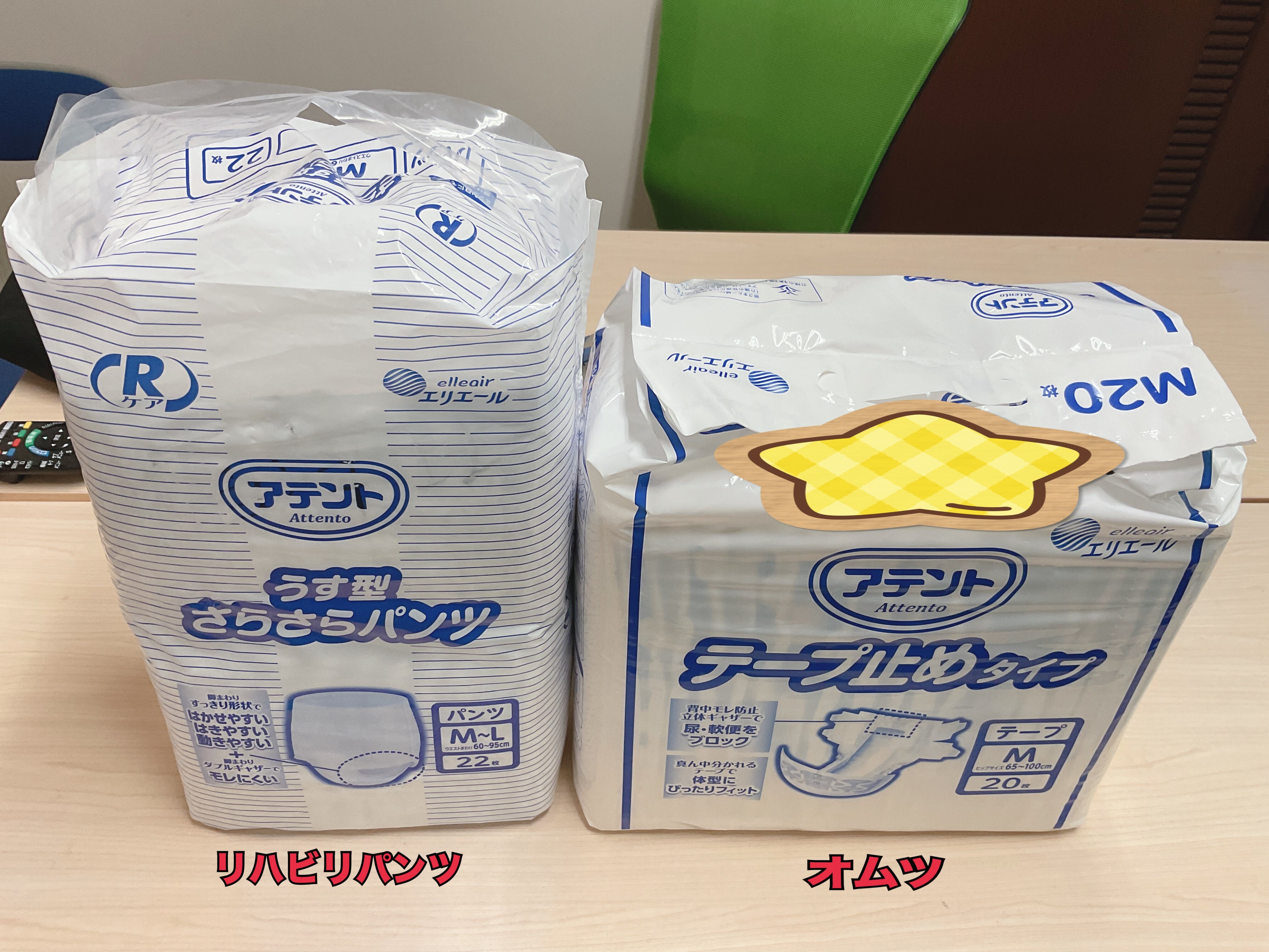 2枚の写真は、施設対応の排泄用品です。