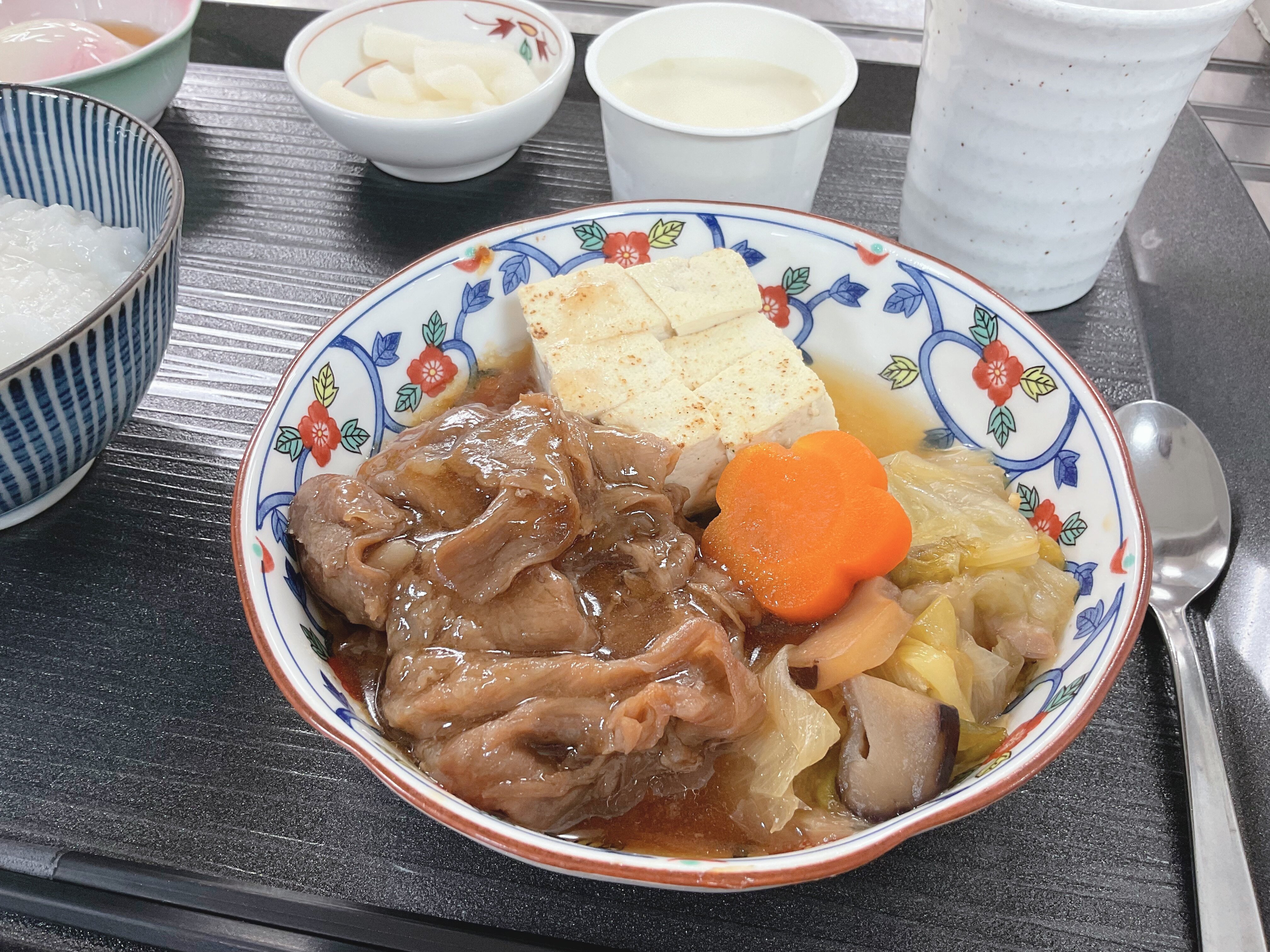 すき焼きの他に、「温卵・お漬物・プリン」も