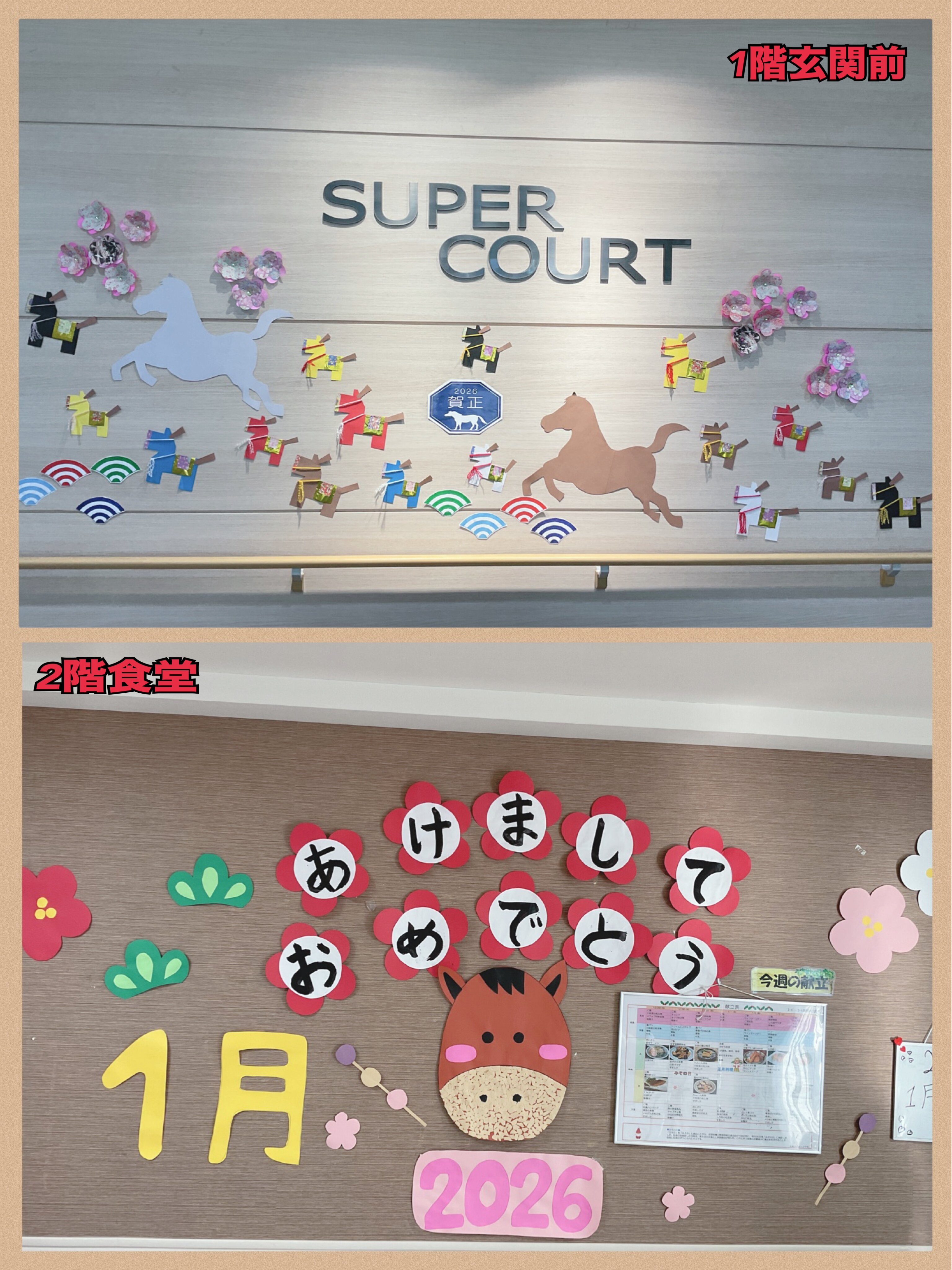 1階玄関前・2階食堂の壁面です!
