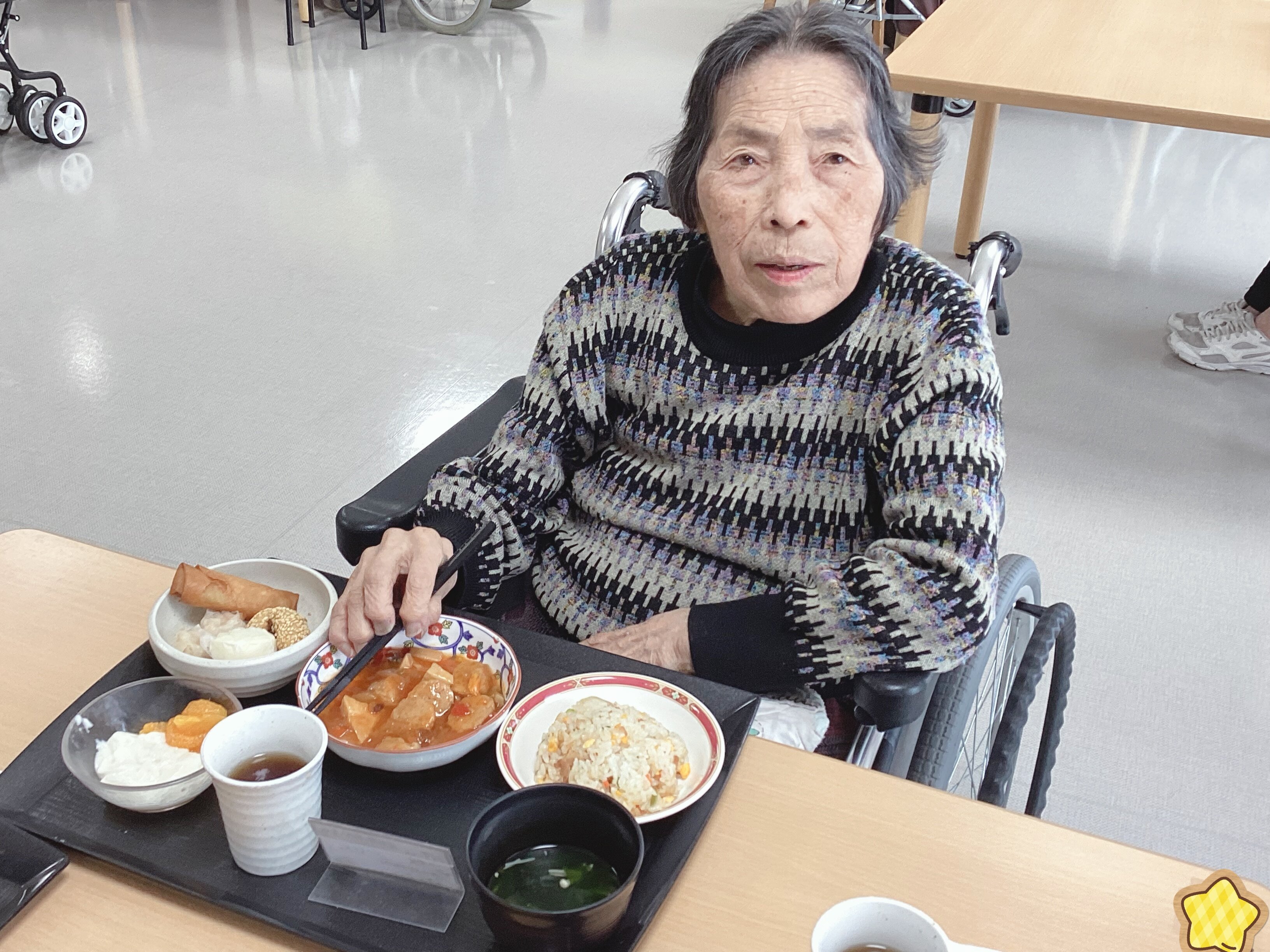 中華スープ・春巻き・ゴマ団子・モモ団子・デザート」です。