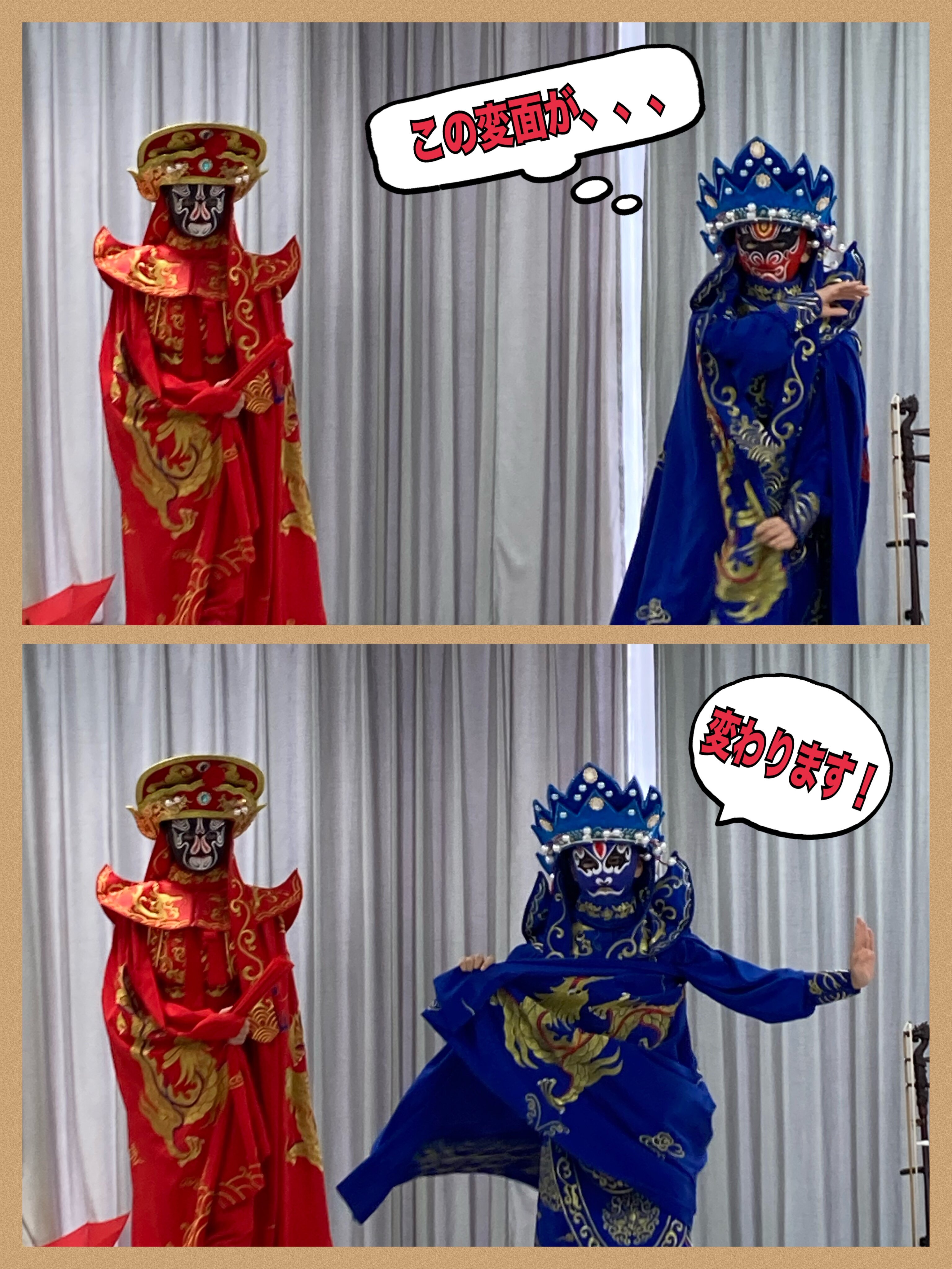 曲とともに、一瞬で違う変面に変わり、