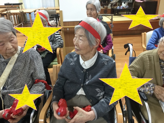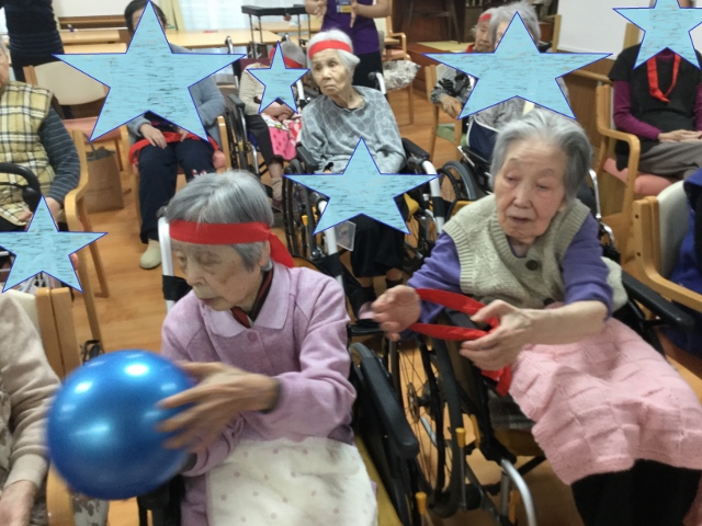 機能訓練をかねた運動会。 ラジオ体操から始まります。