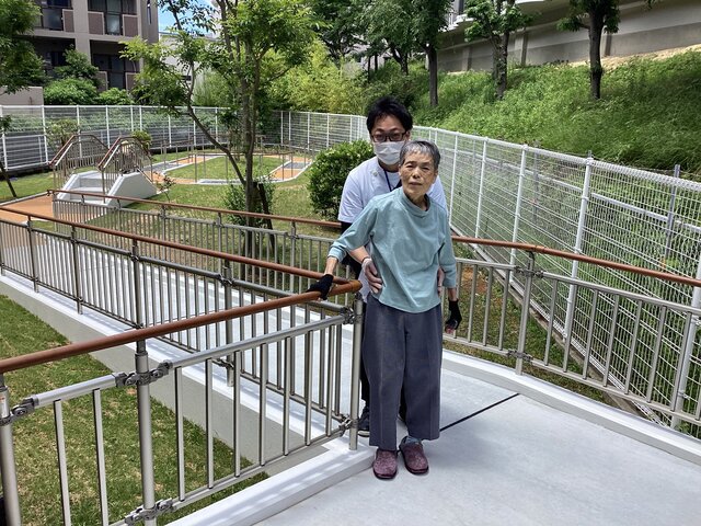 天気の良い日には中庭にてリハビリテーションを実施しております。