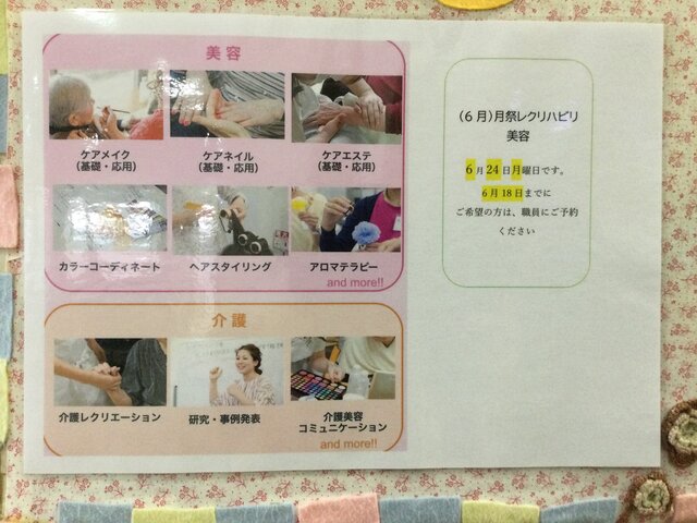 今月は「リハビリ美容レク」を実施致します!!ご希望の方にヘアスタイリングやケアネイルを実施して頂く予定となっております!