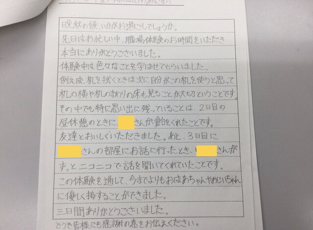 職場体験後、素敵なお手紙をいただいたのでご紹介します。