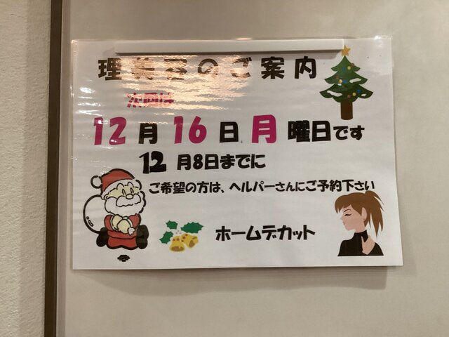 ホームデカットとは第3月曜日に外部の理美容師さんに来て頂き、ご予約ご予約いただいた方にカットや