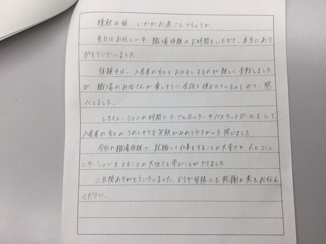 職場体験後、素敵なお手紙をいただいたのでご紹介します。