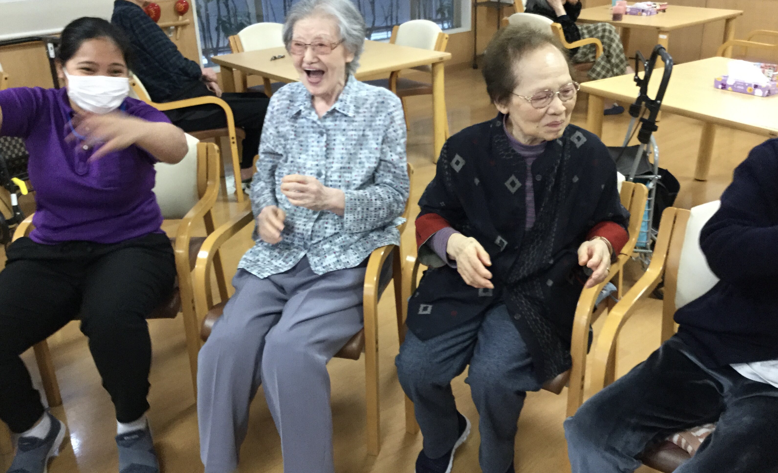 ご入居者もスタッフもとっても楽しそうです!(⌒∇⌒)いい笑顔!!!