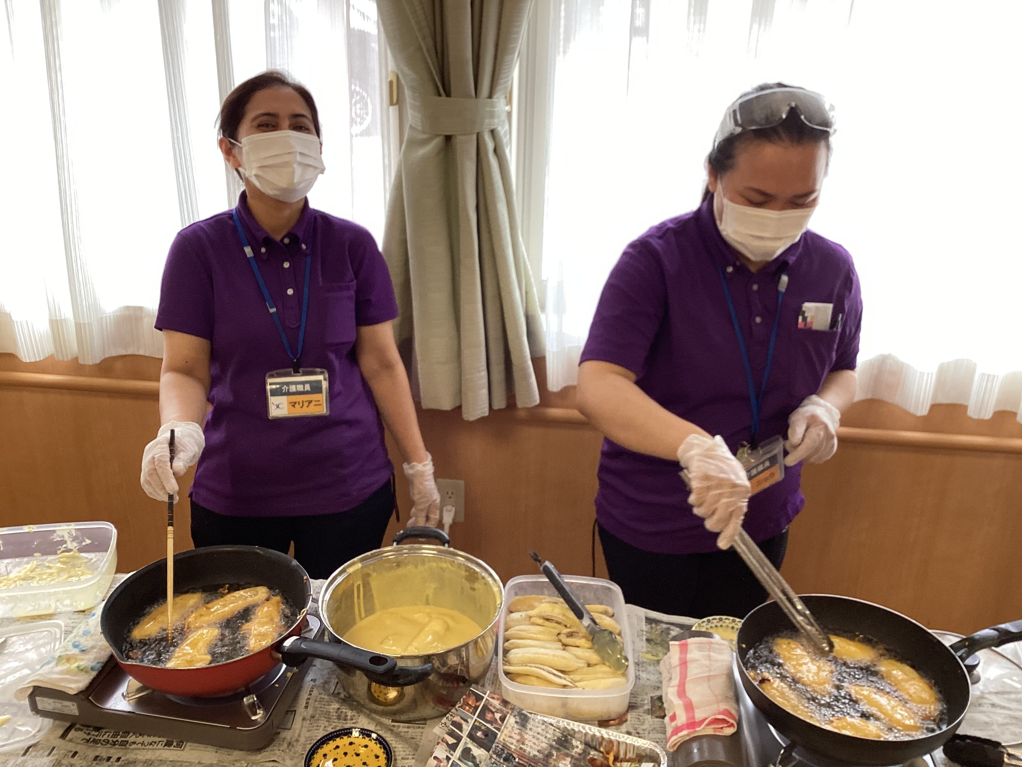SC緑地公園にはフィリピン出身のスタッフが多く、是非このおやつを皆様に食べて頂きたい!!と、フィリピンバナナを使用したおやつを提供することになりました(^▽^)/
