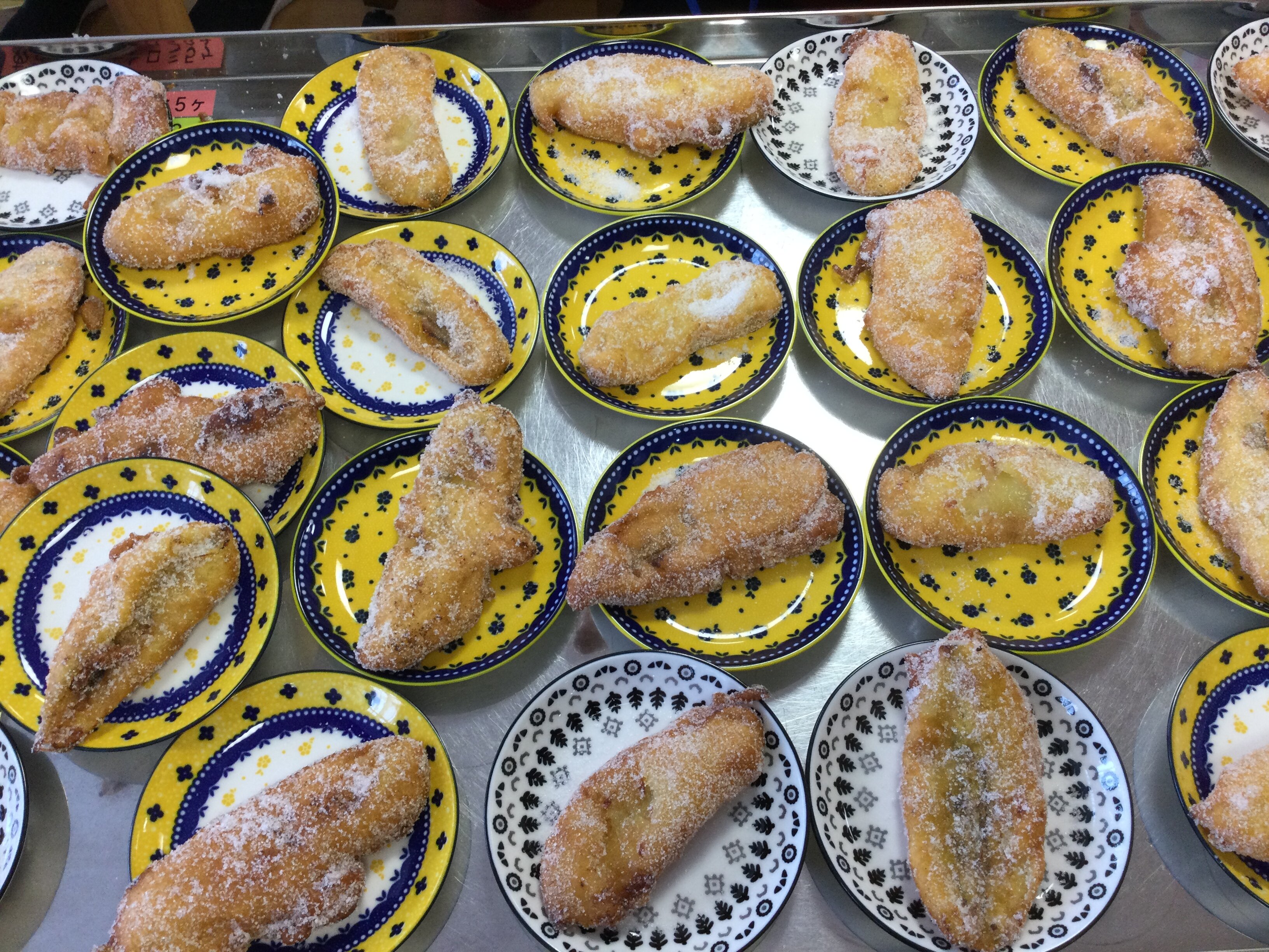 バナナに衣をつけ、揚げて、粉砂糖をまぶしたもので、日本風に言うとバナナの天ぷらですね( ̄ー ̄)ニヤリ