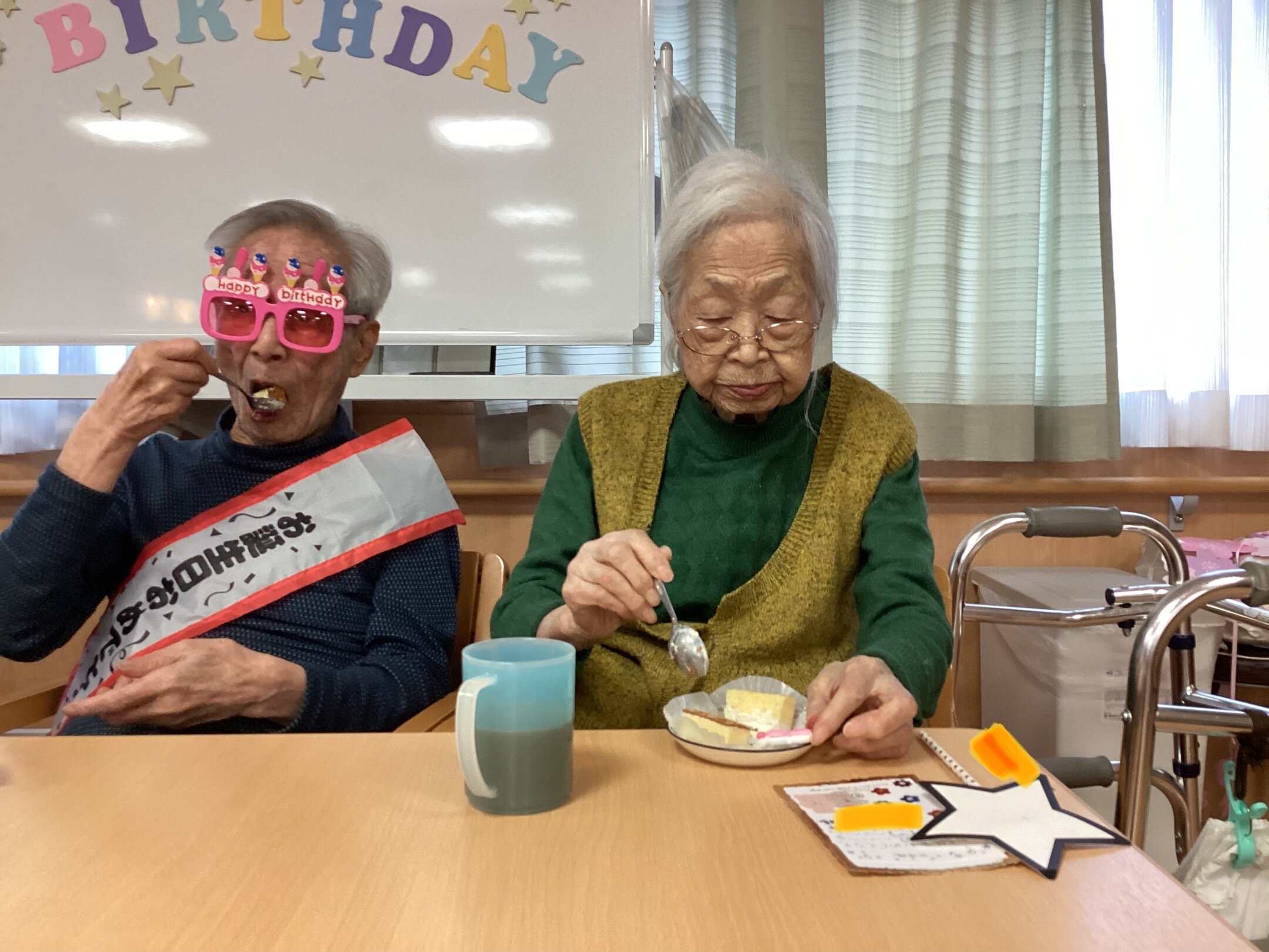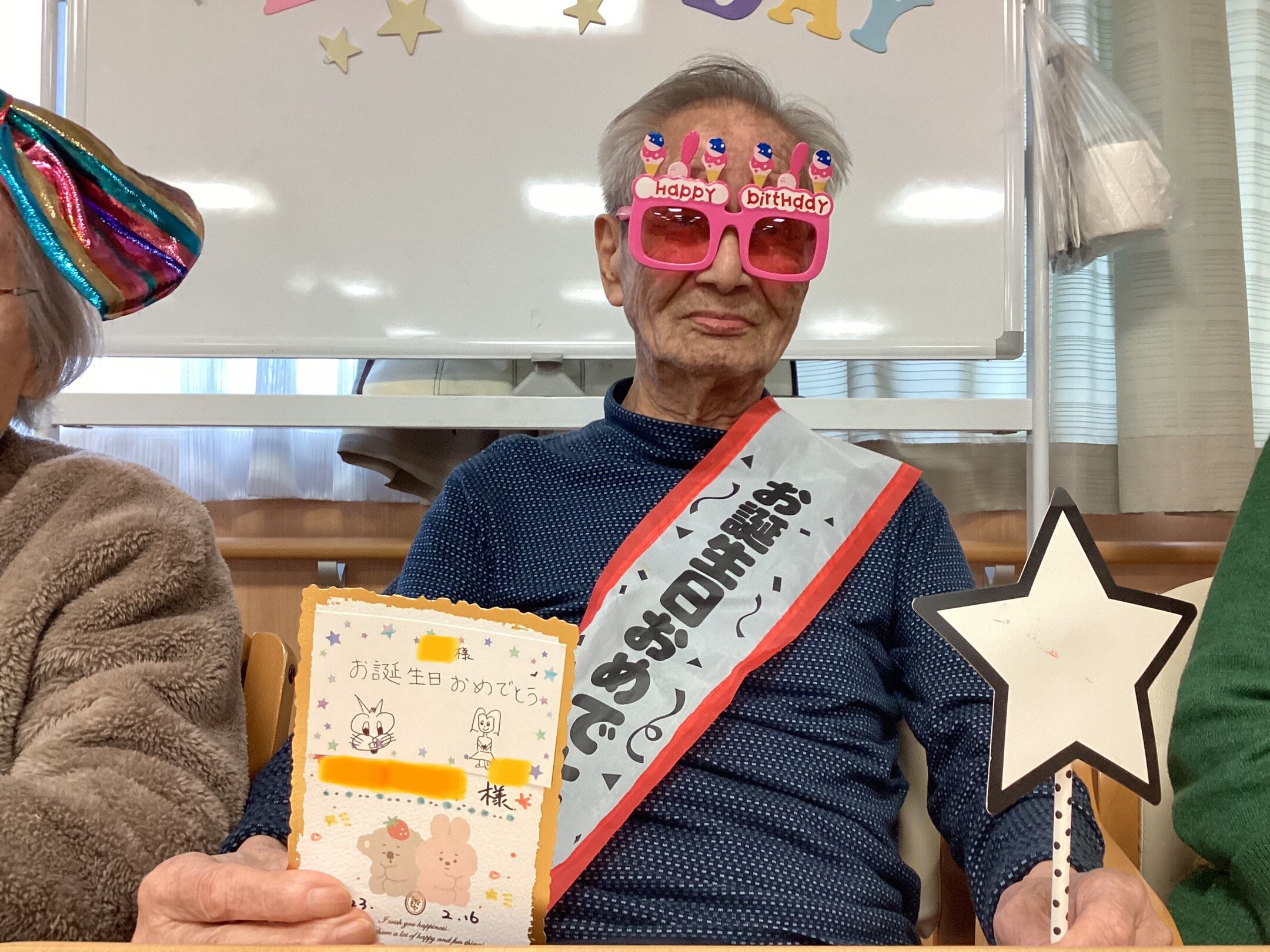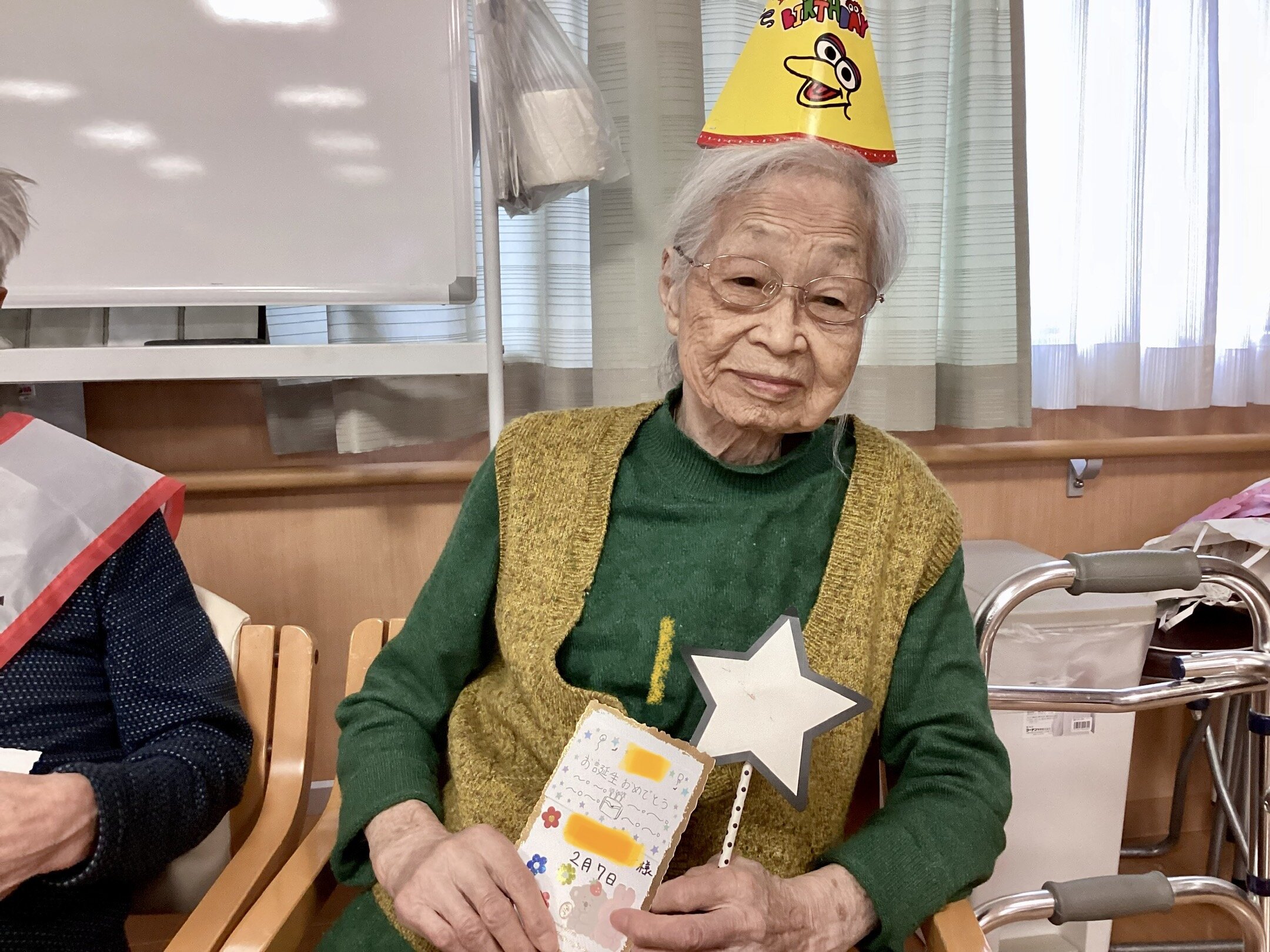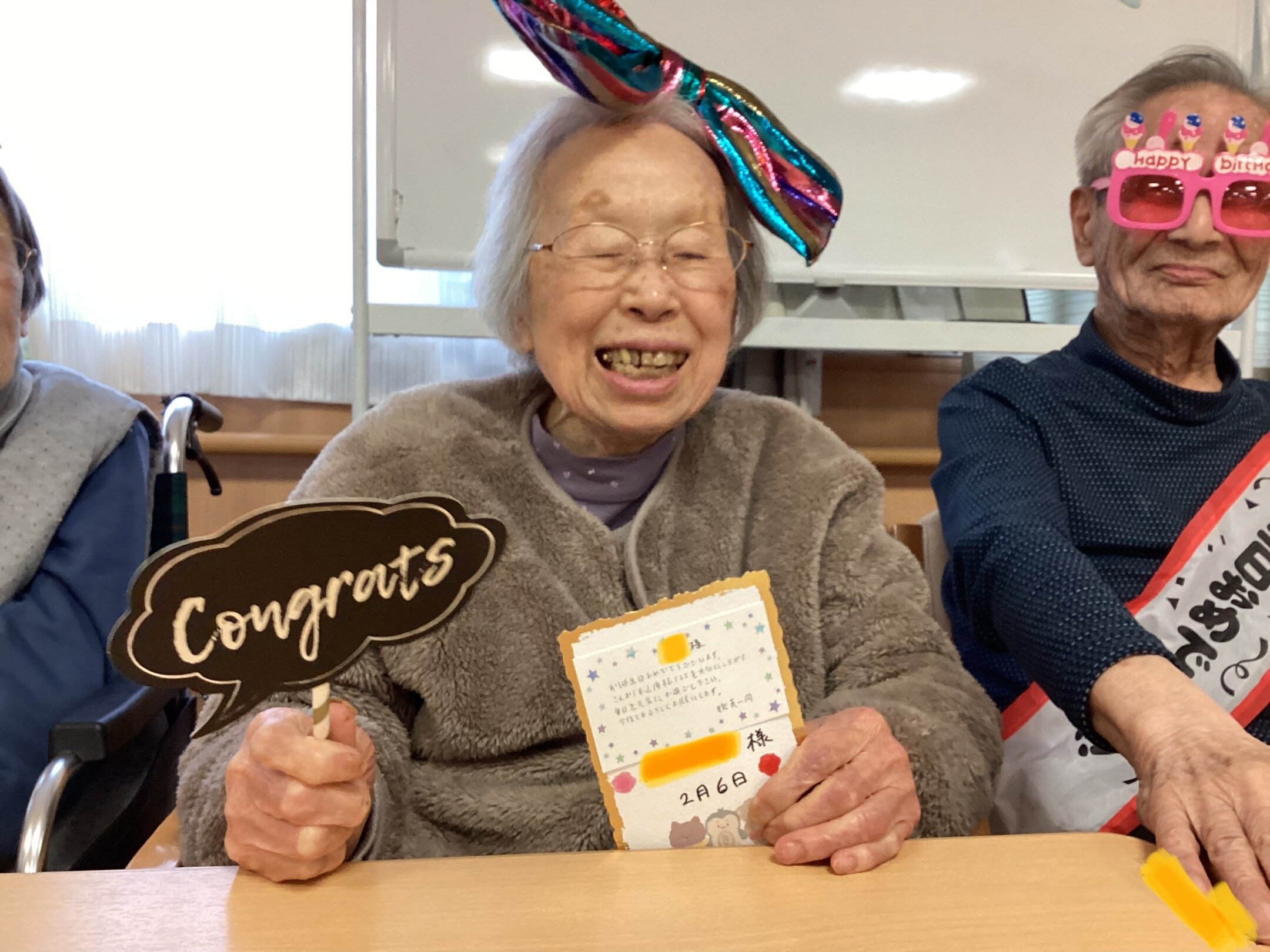 2月のレクリエーションでは、2月生まれの6名のご入居者のお誕生日会を行いました!