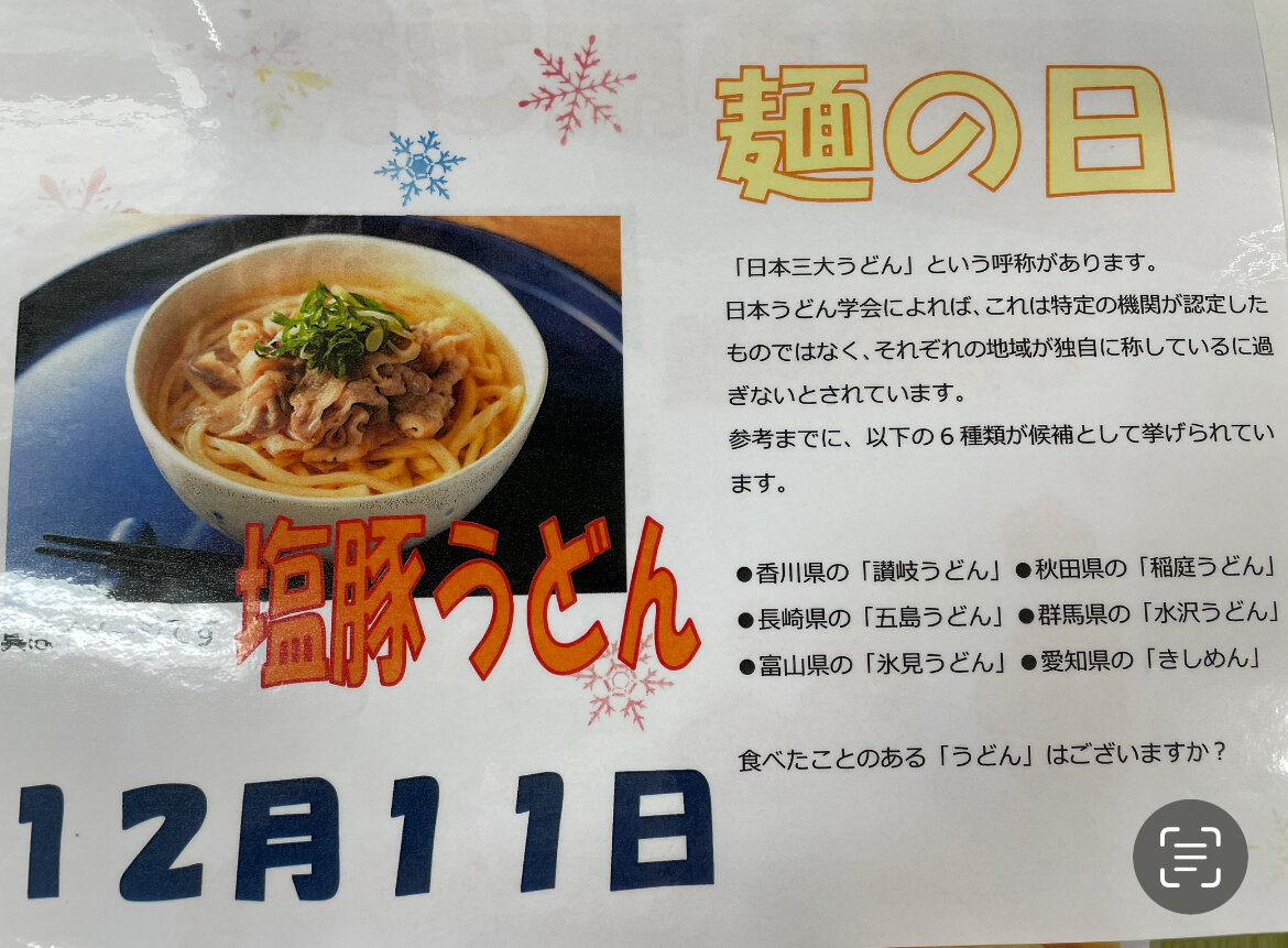 皆様も温かいうどんや麺類で暖をとってみてはいかがでしょうか。