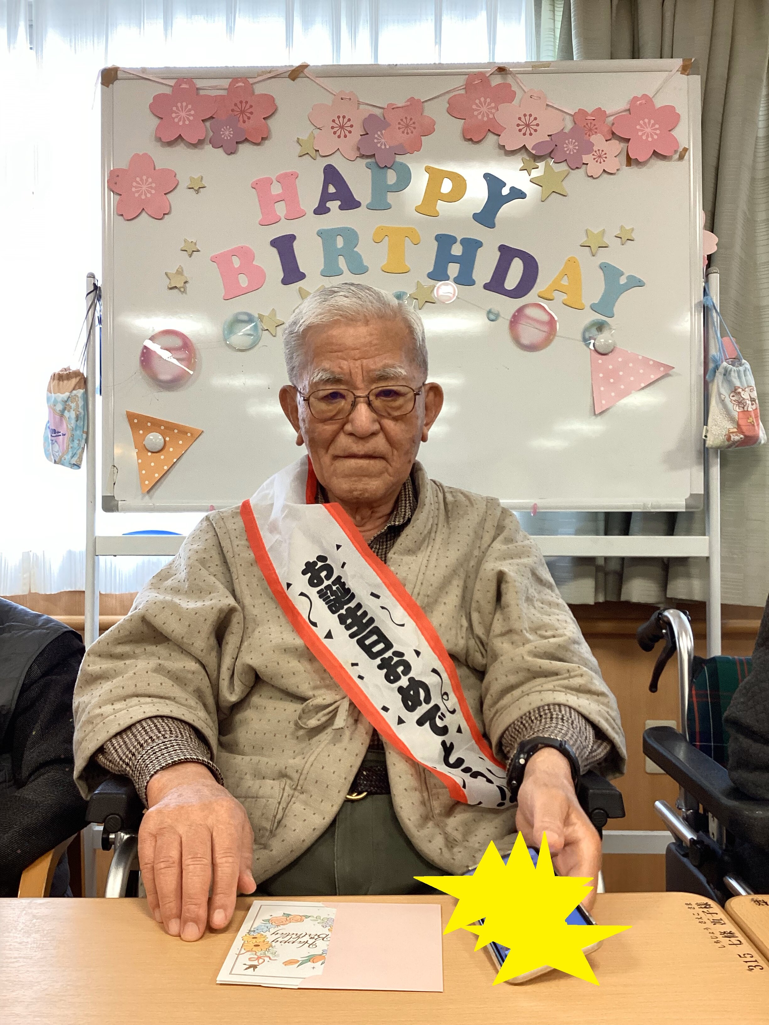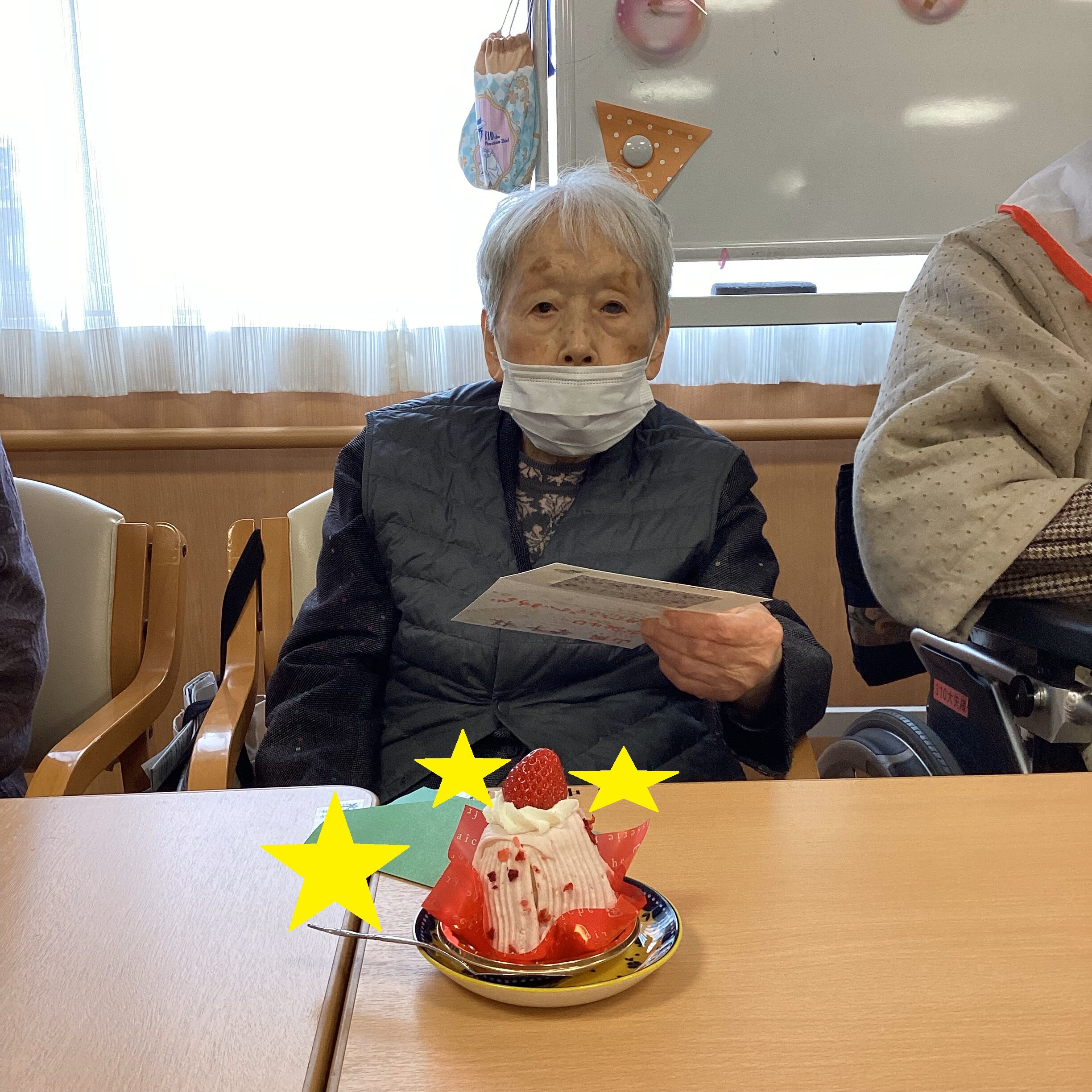 さて、施設では先日2月の誕生日の方のお誕生日会が