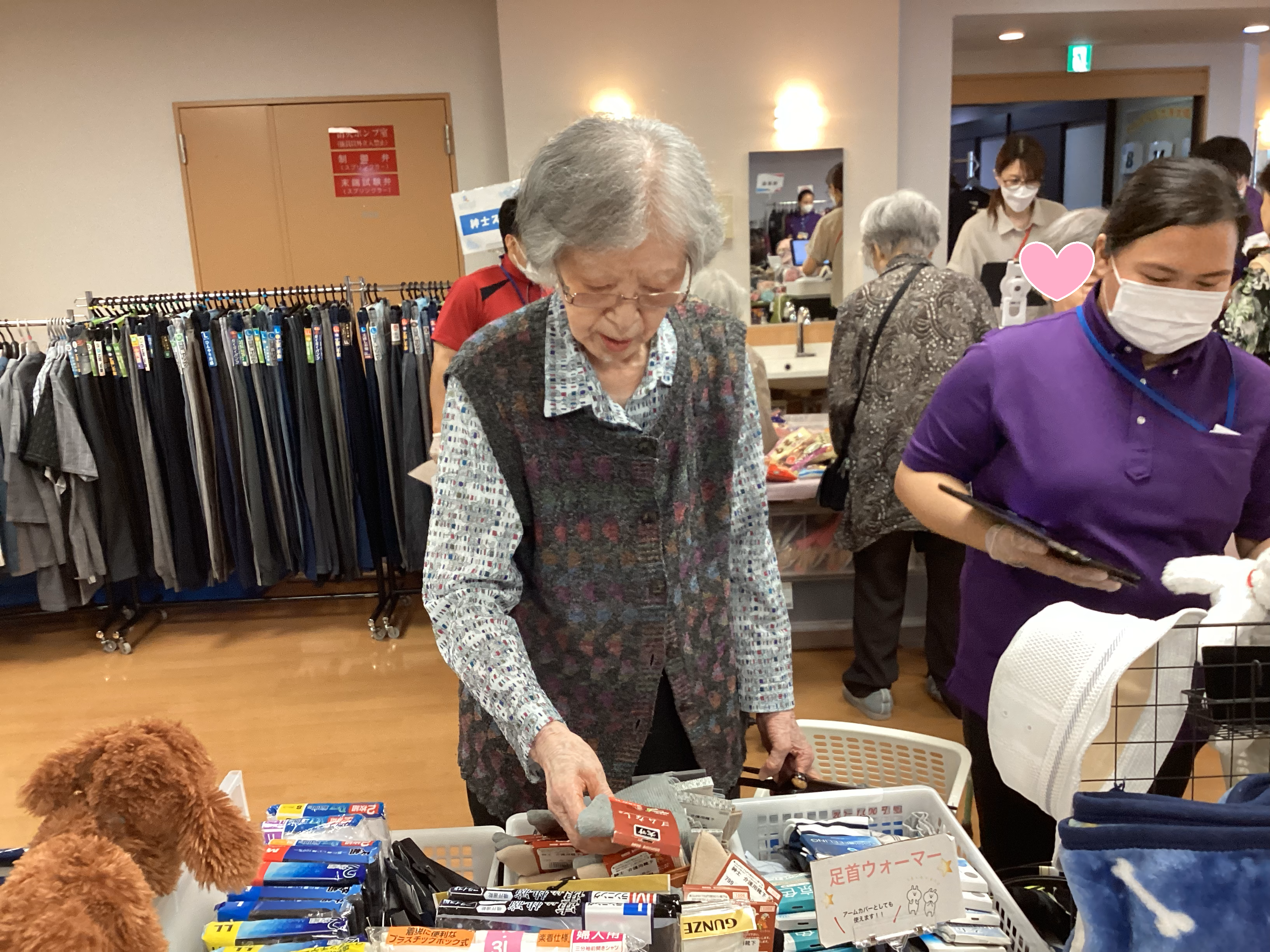 今回のお買い物レクリエーションでは、服や小物、日用品など、沢山の商品がありました♪