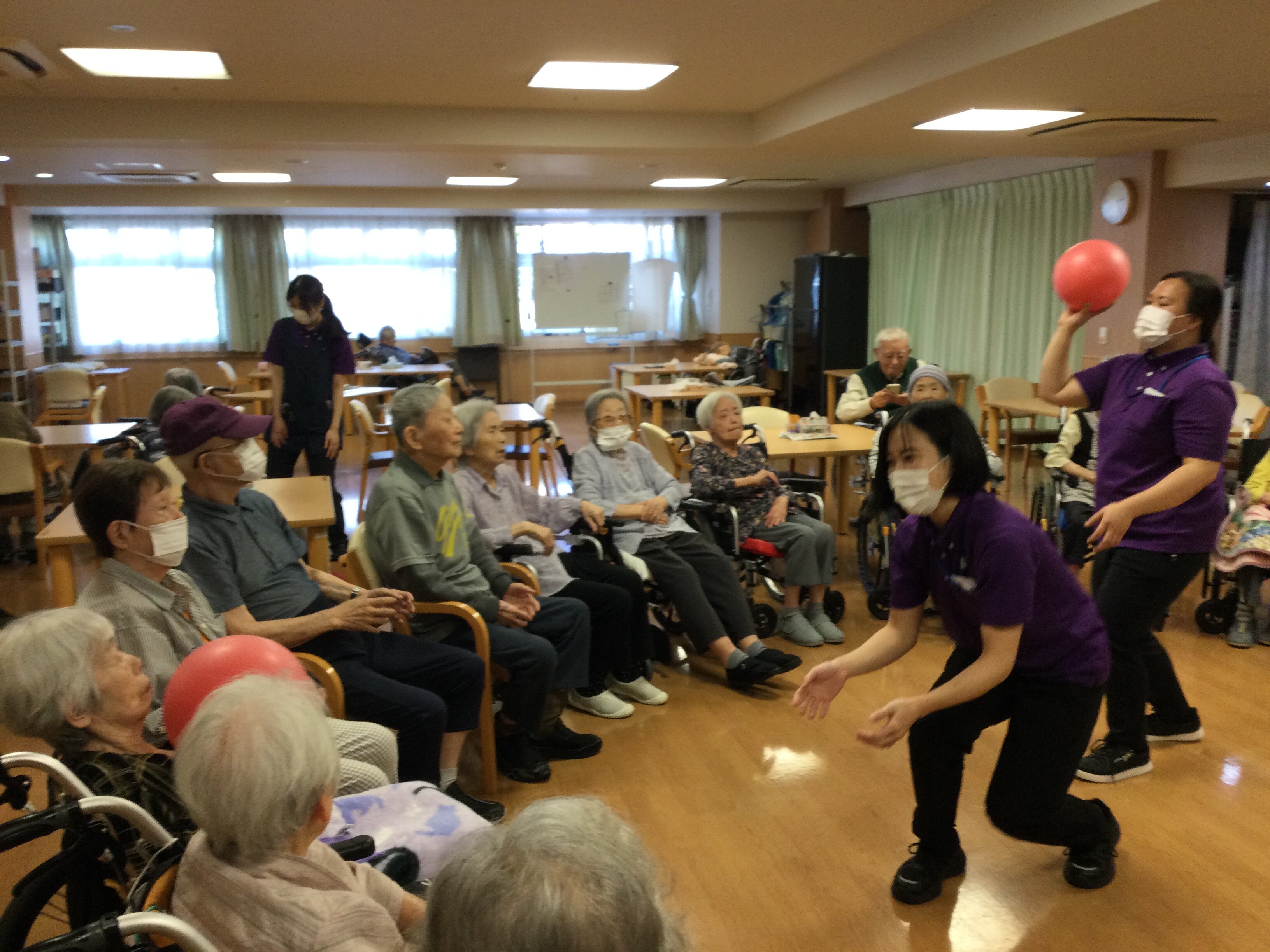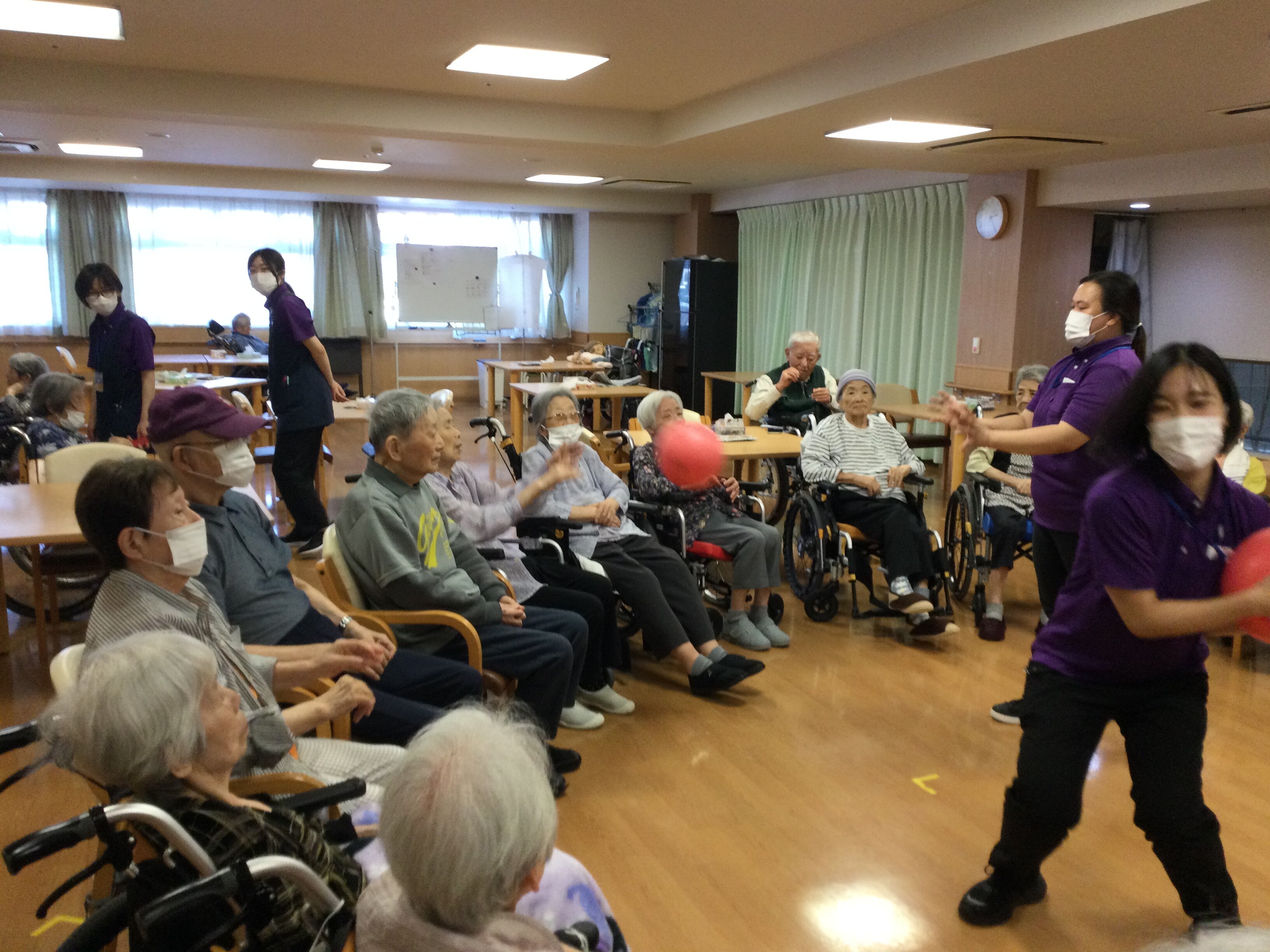 毎日チェアリズム体操や口腔体操も行われていますが、この様にレクリエーションで体を動かすのも良いですね(^_-)-☆