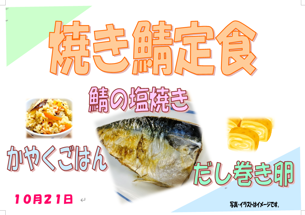 10月のごちそうメニュー第1弾は10月11日に「秋刀魚の塩焼き・天ぷら」を提供させていただきます。