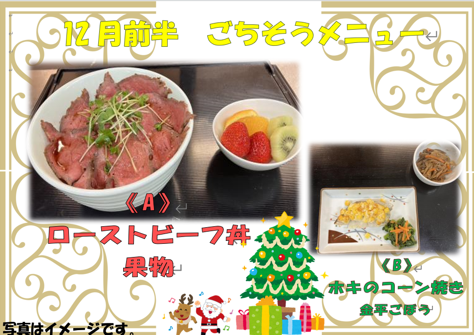 本日、ごちそうメニュー「ローストビーフ丼」を提供させていただきます。