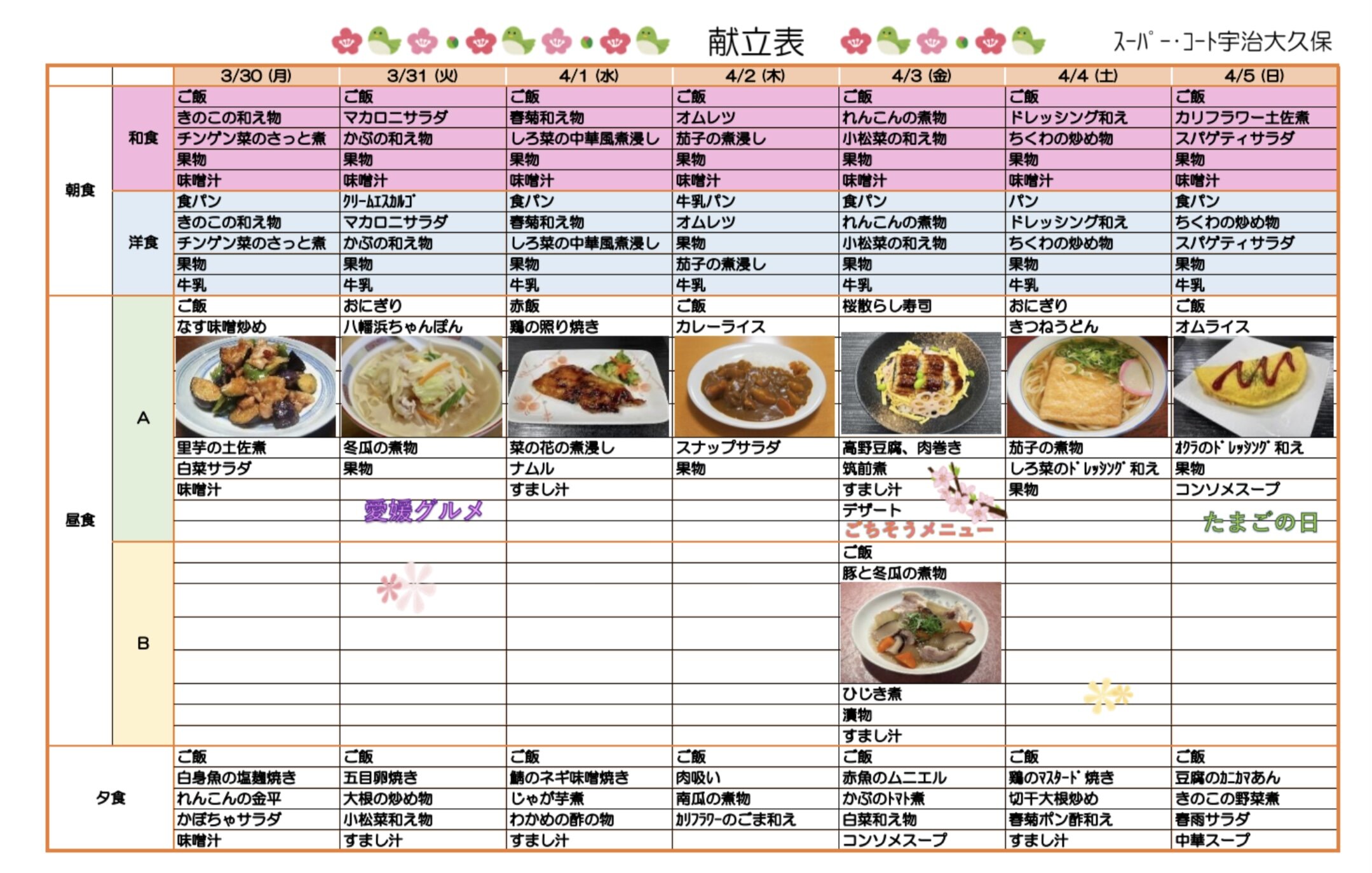 週間献立をお知らせします。
