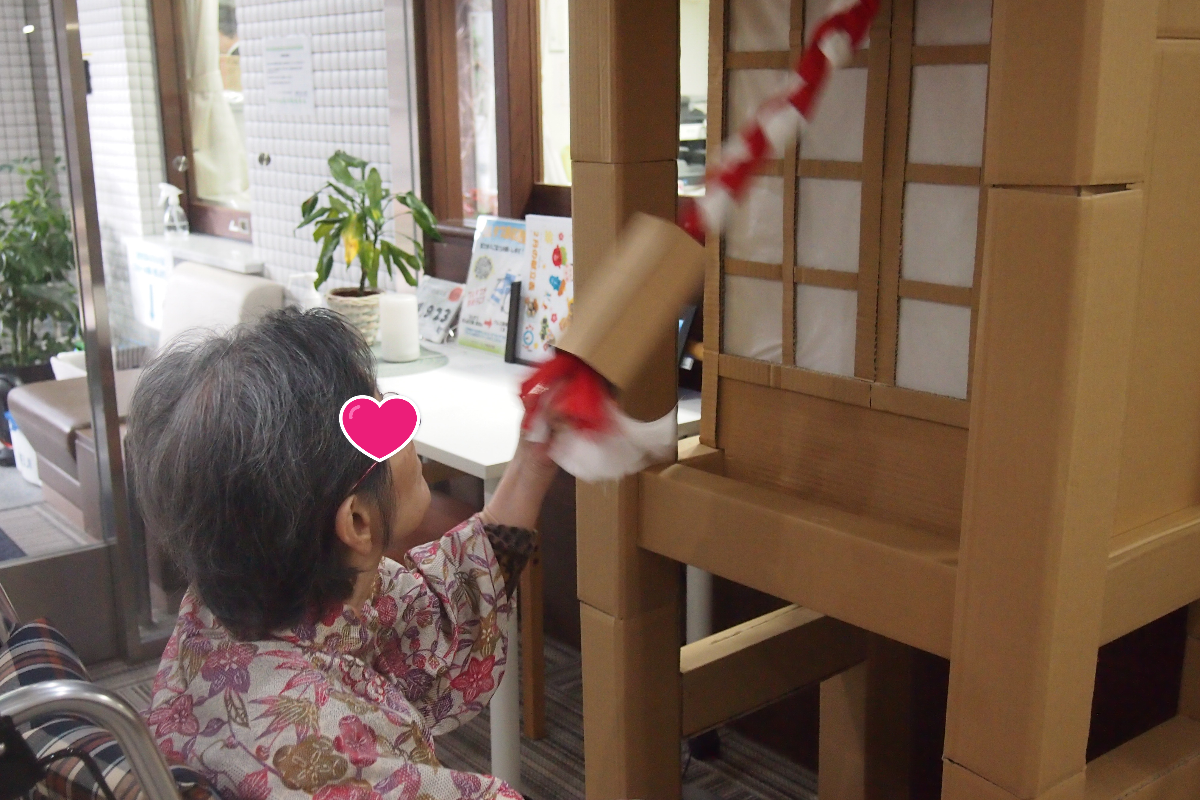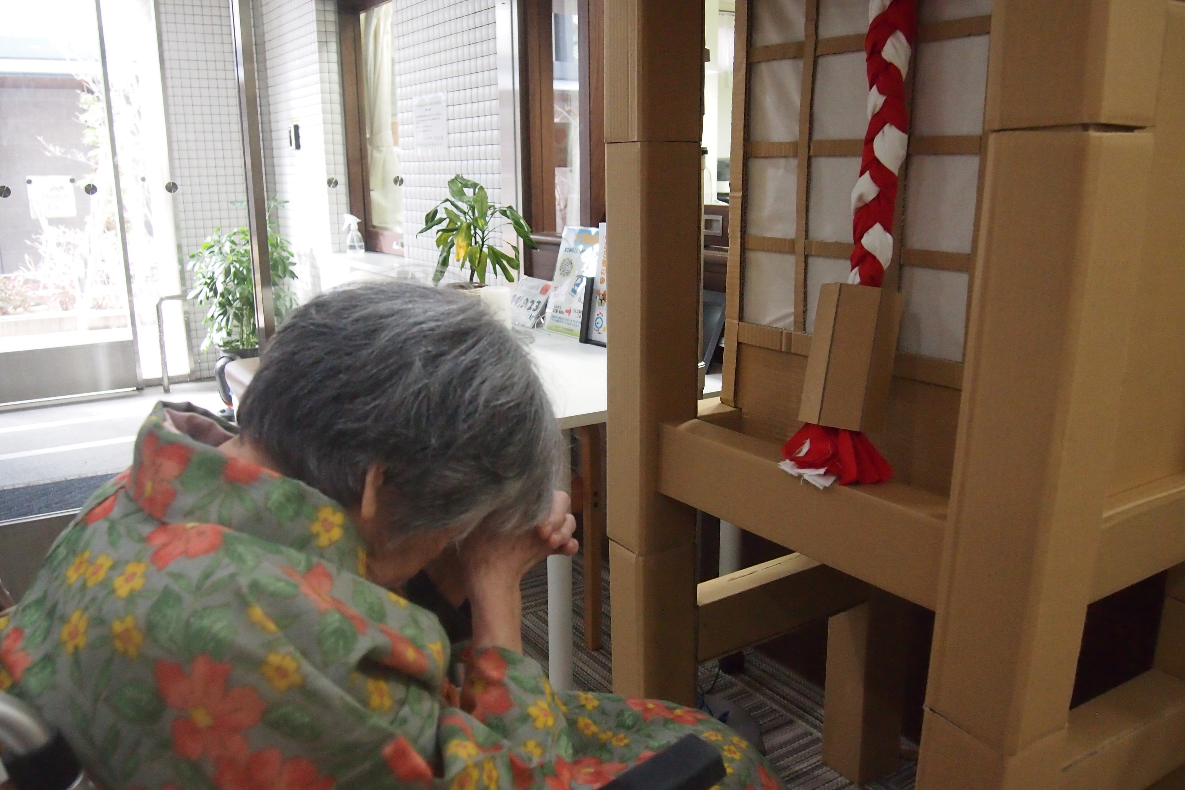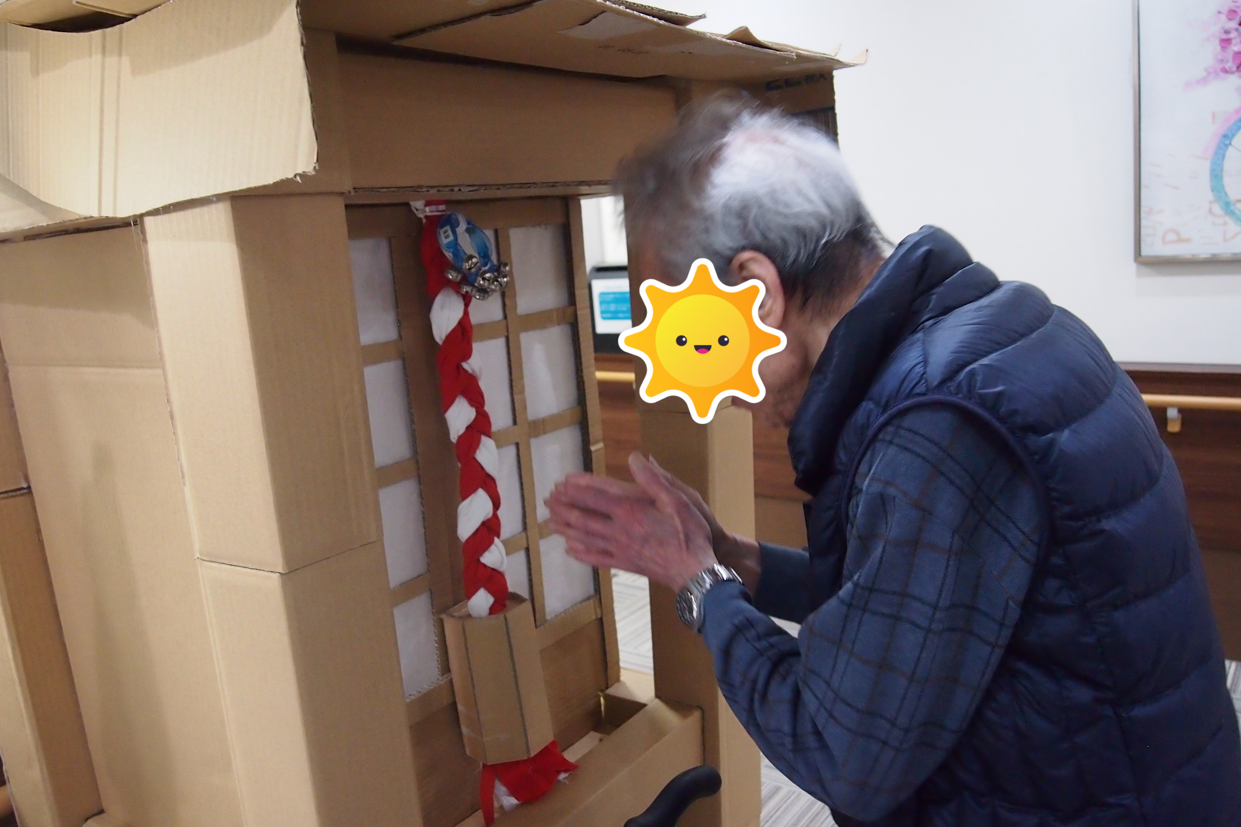 今回、「初詣」を施設内で行うため、職員手作りの「お宮さん」