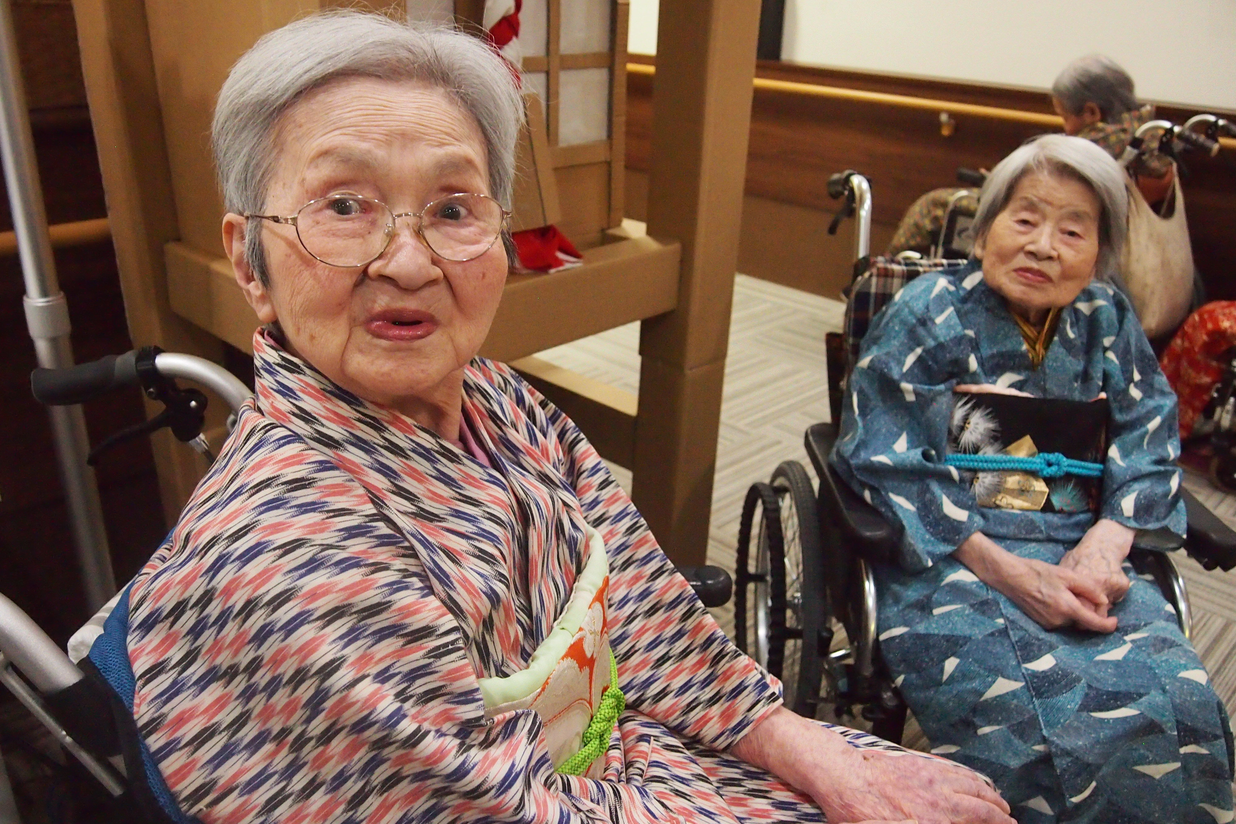 ご入居者の皆さんには、お着物とヘアメイクで変身して頂きました。