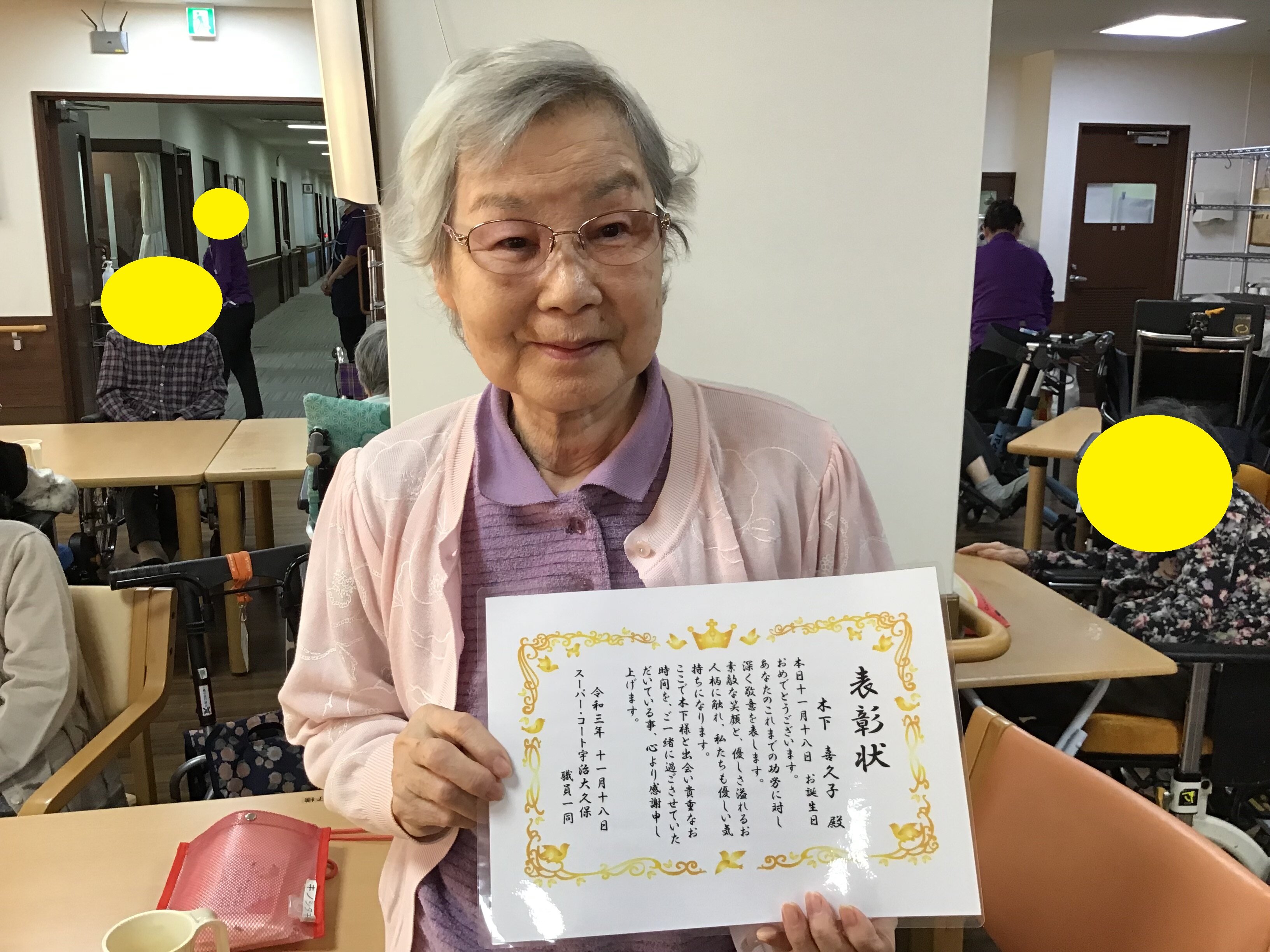 宇治大久保の施設では誕生日に表彰状を送らせていただいています。