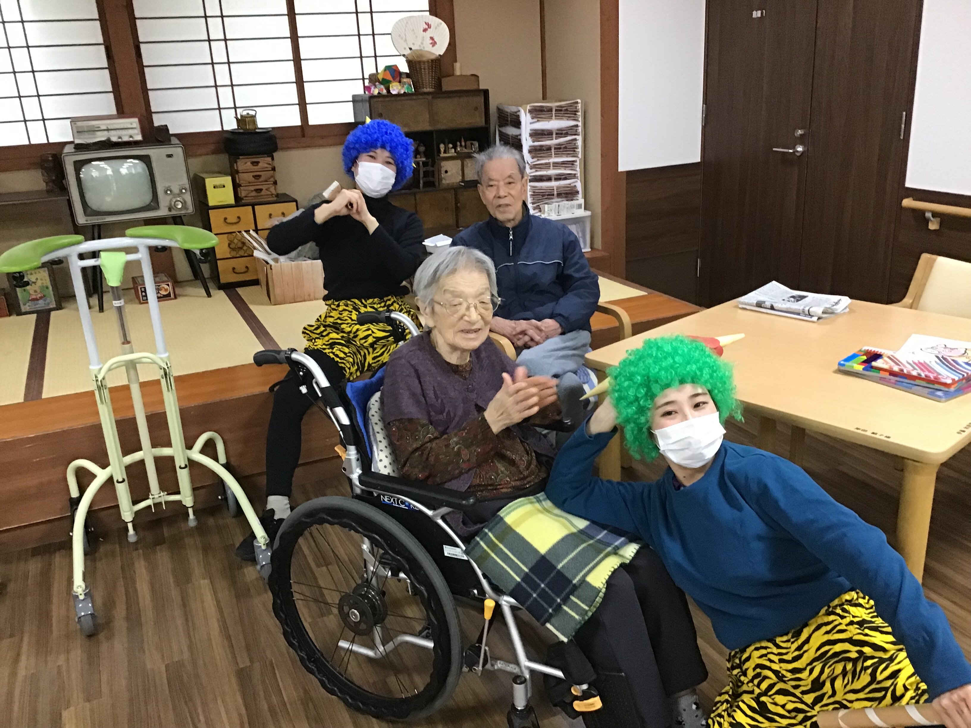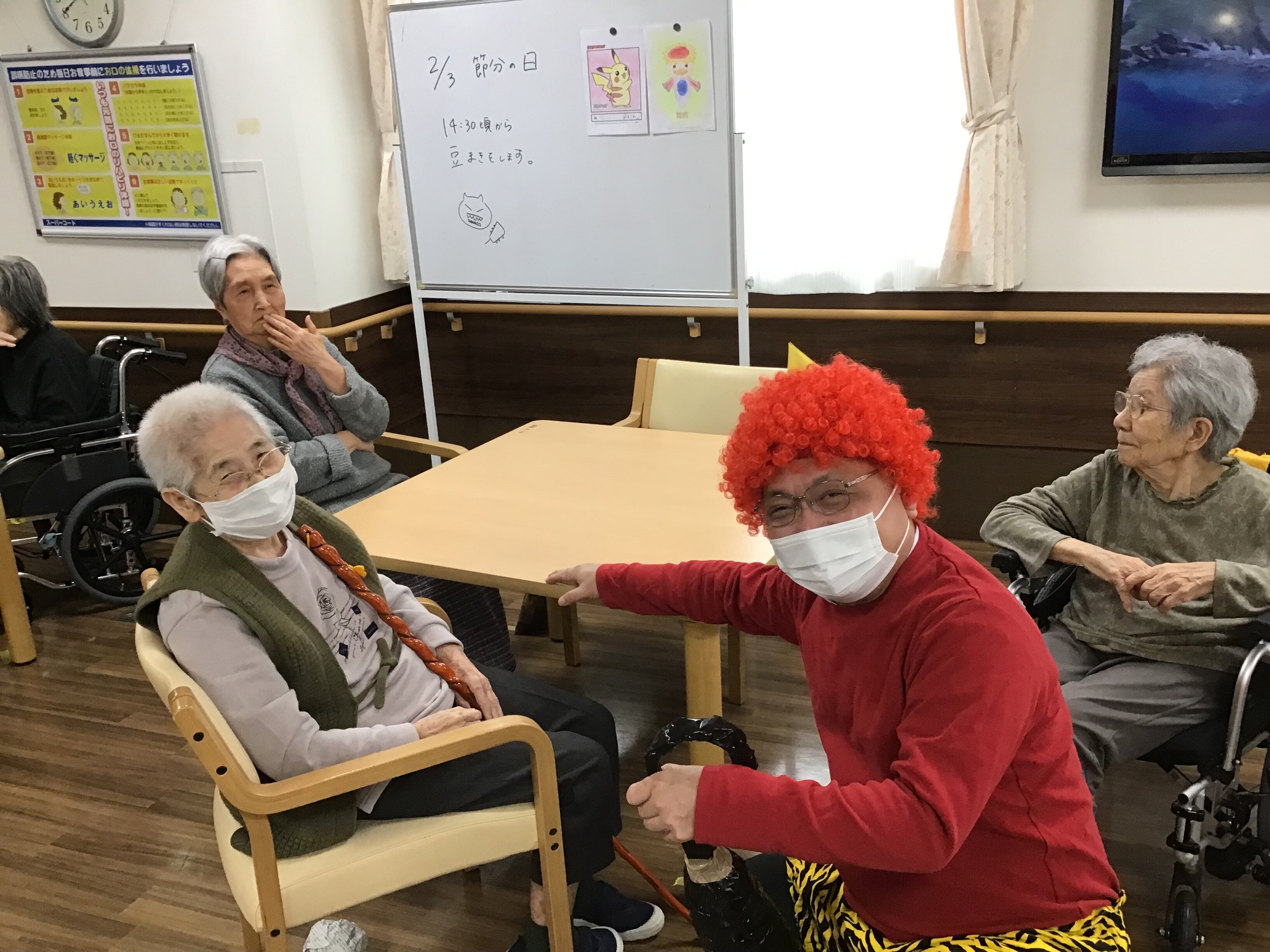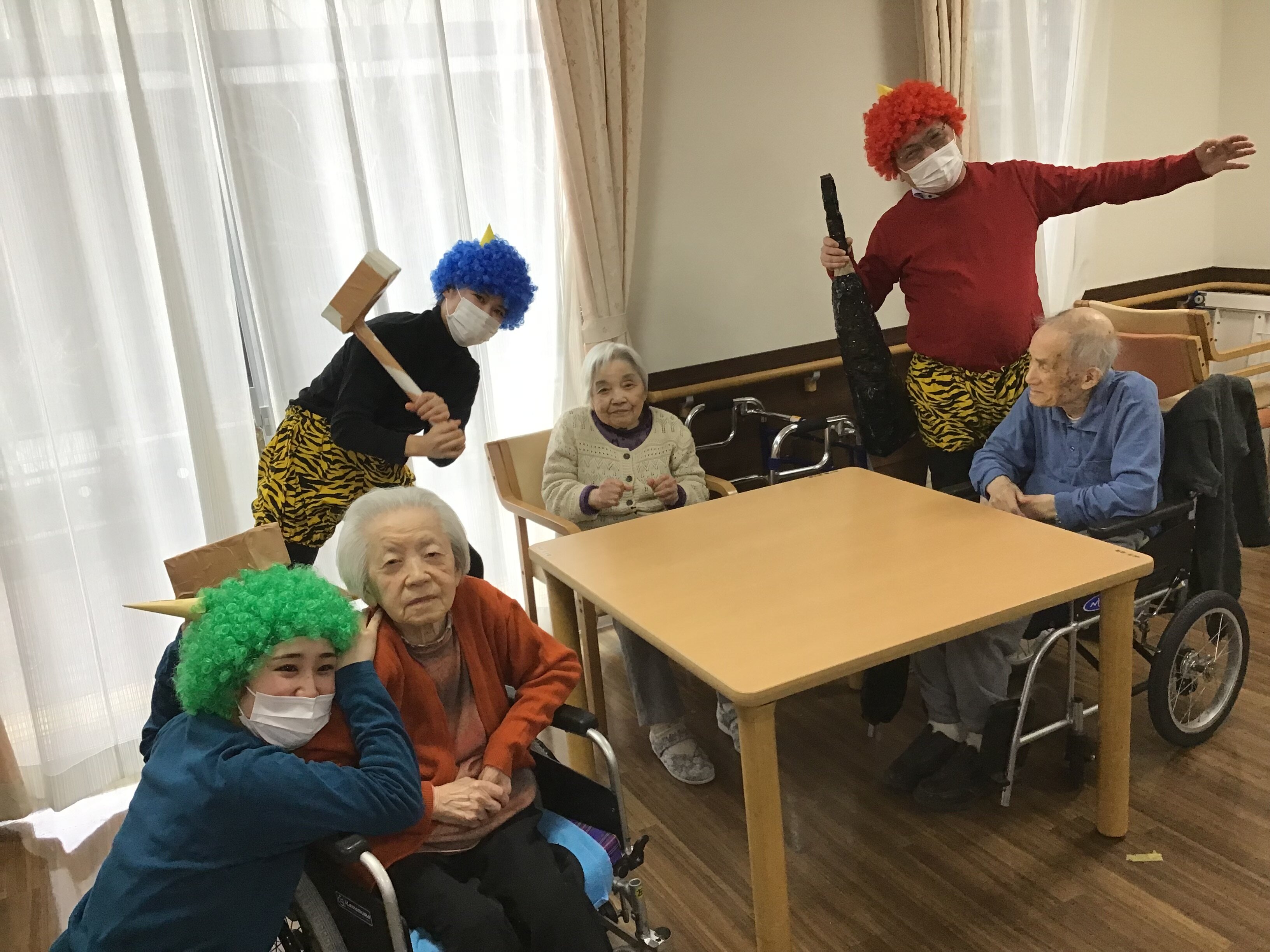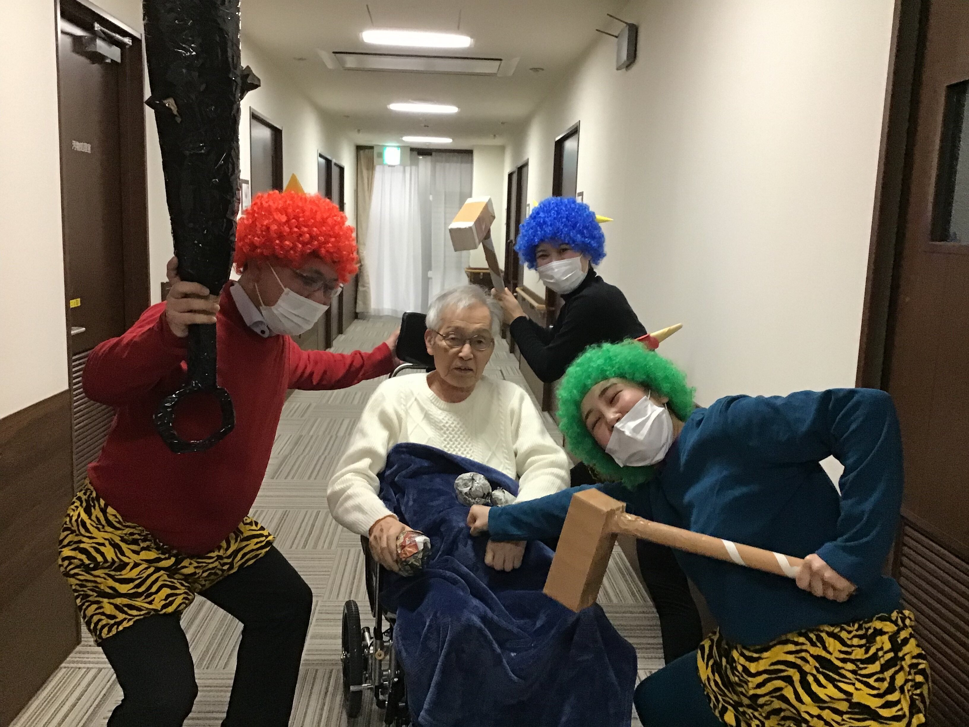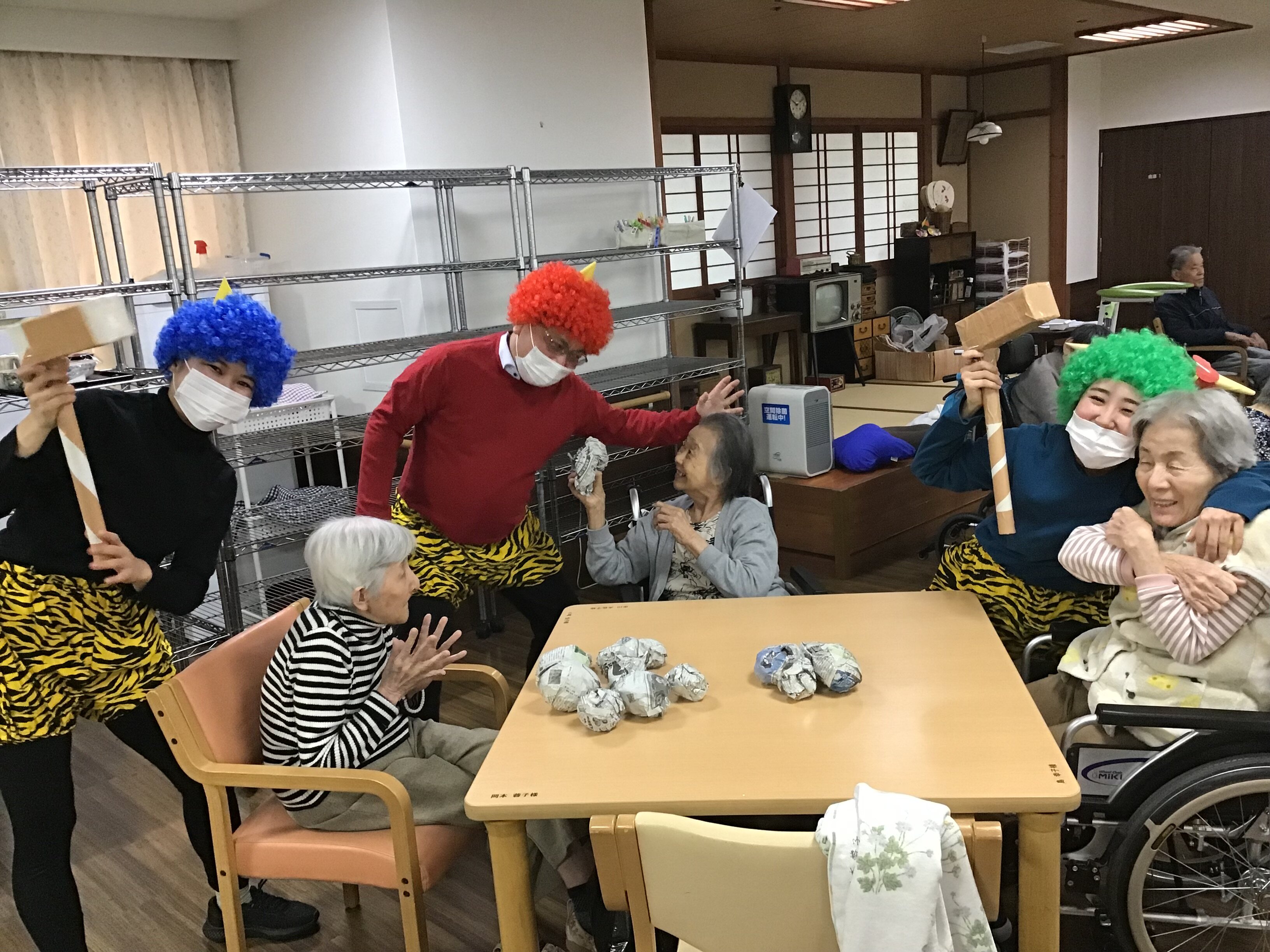 いきなりの鬼の登場に戸惑っておられたご入居者もいましたが、陽気で優しい