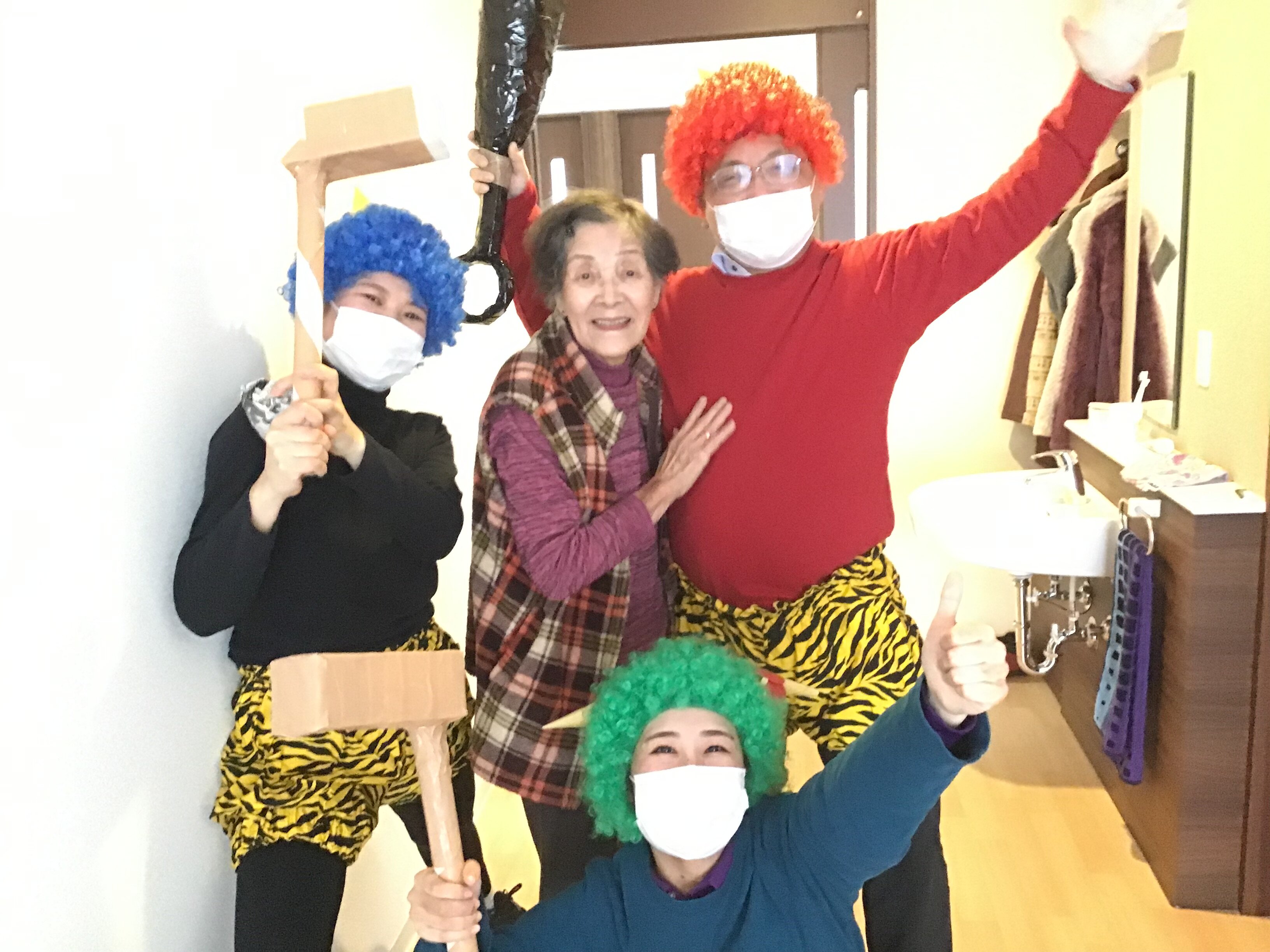 赤鬼、青鬼、緑鬼のおかげで戸惑いも去り楽しい節分をお過ごし頂けました。