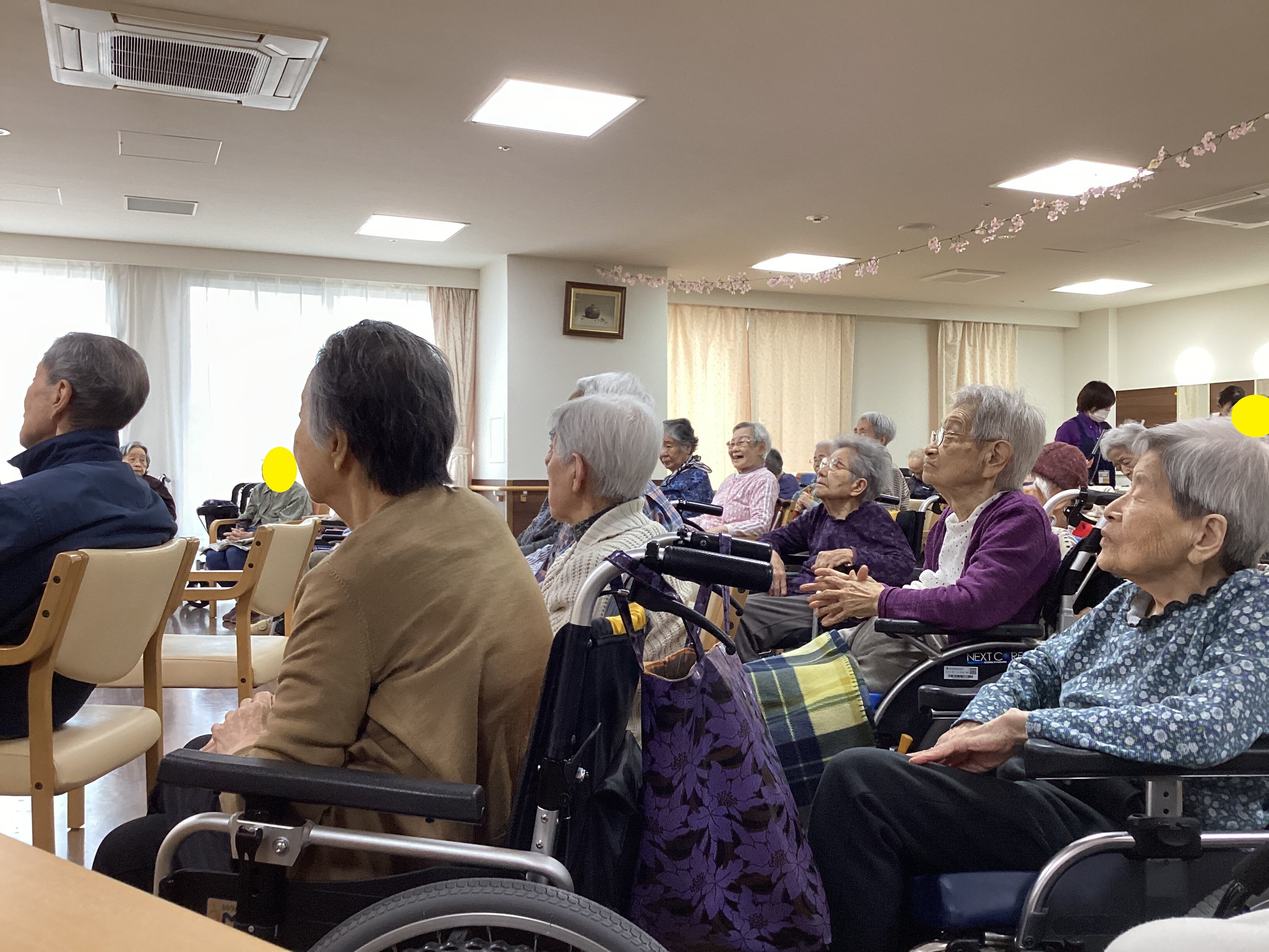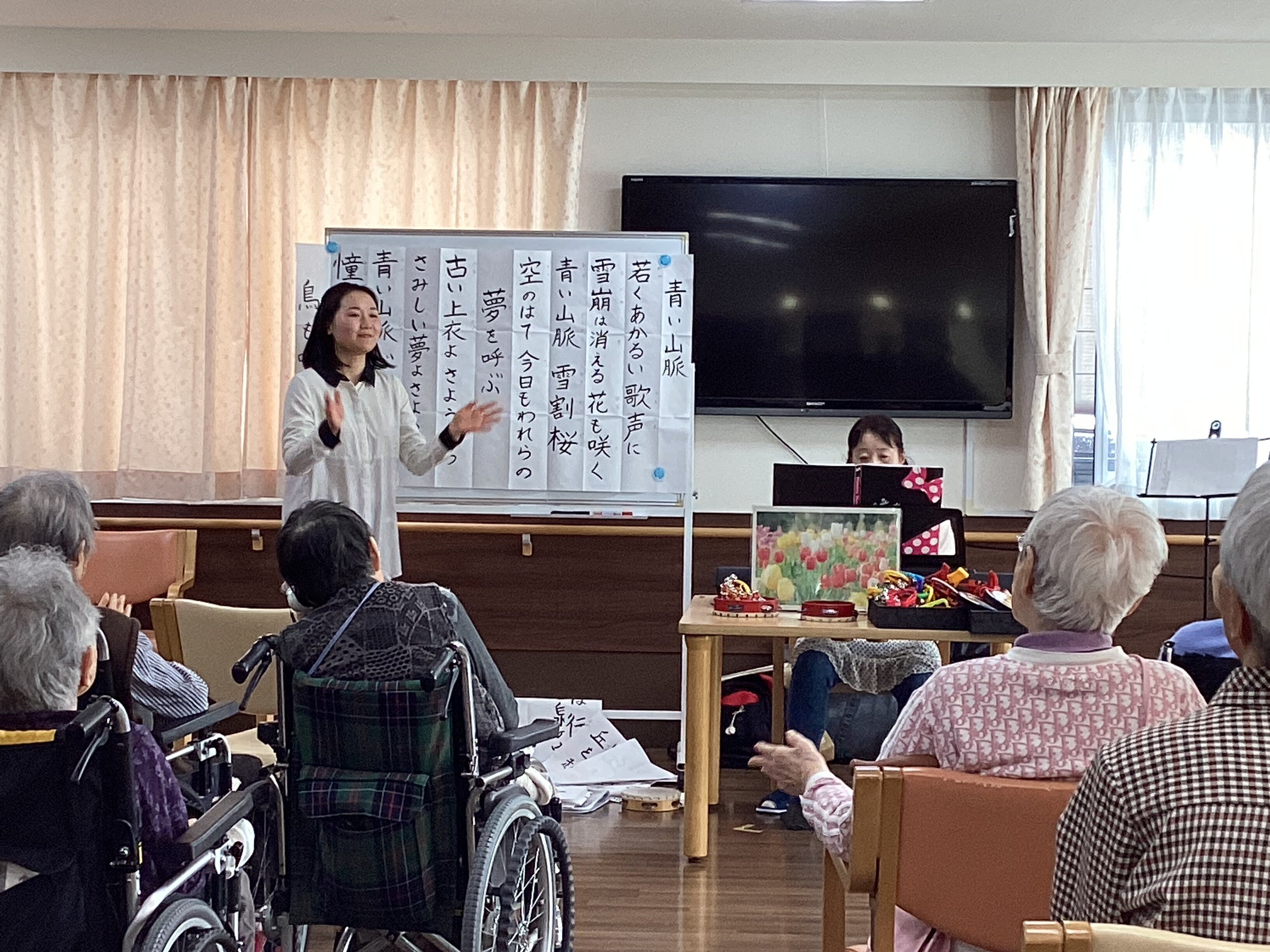 今月は音楽レクで音楽の先生が来てくださり、歌を披露して頂いたり、
