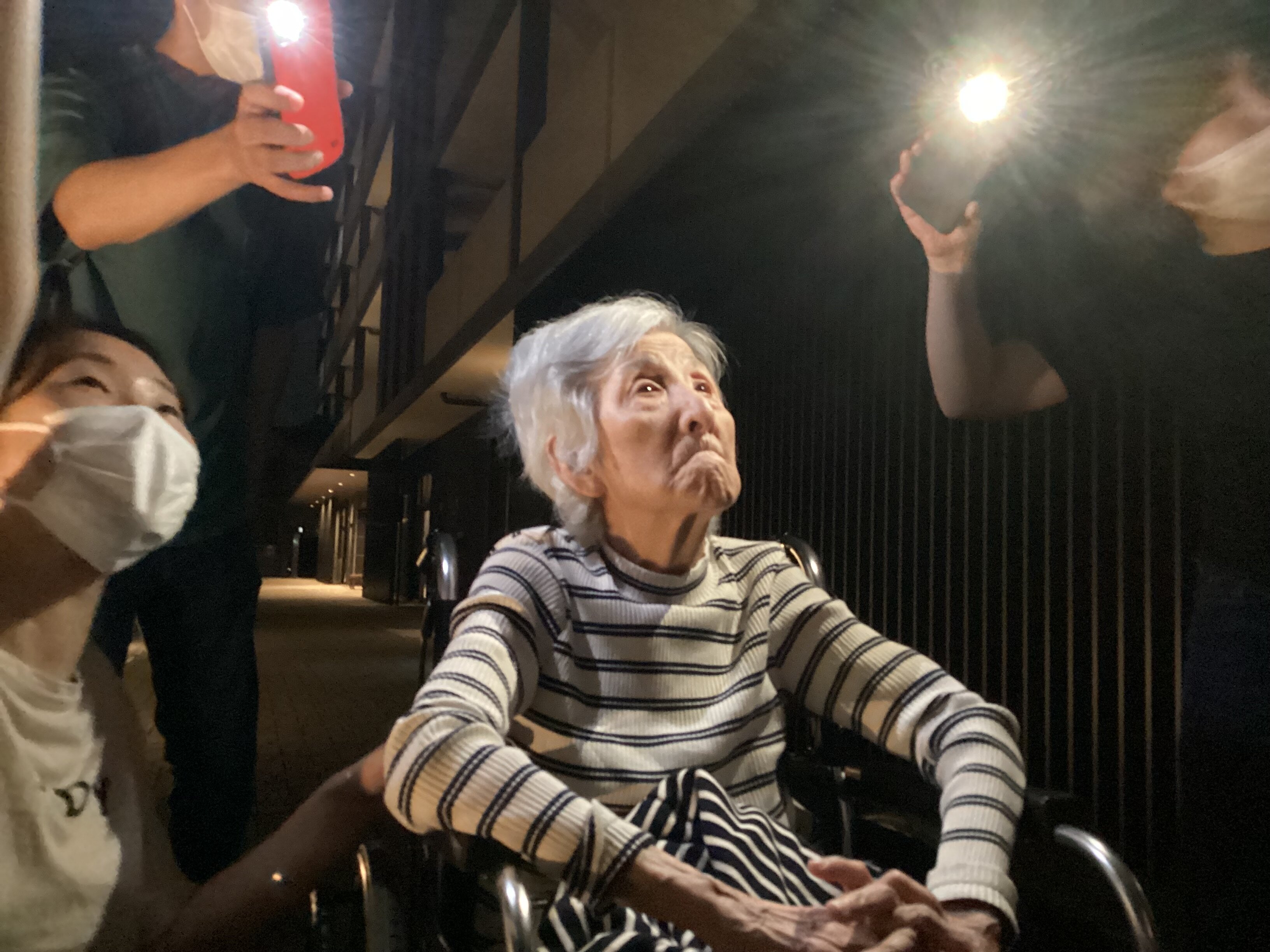 もういてもたってもいられず、ご入居者の方をお連れして花火、みてきちゃいました♡